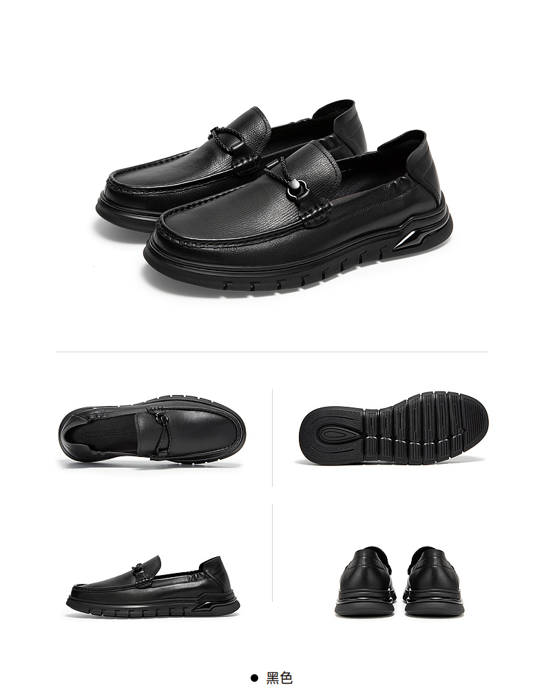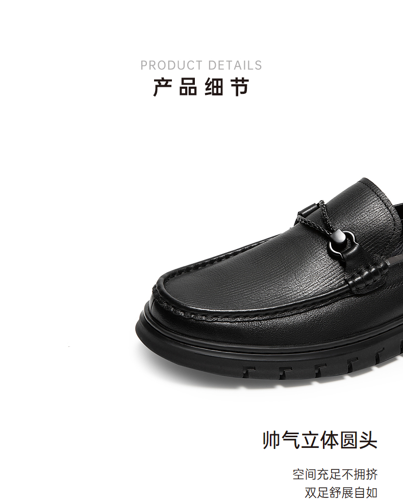 千百度男鞋秋季男士商务休闲皮鞋高级感豆豆鞋牛皮英伦风A24410887
