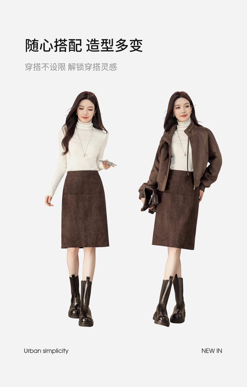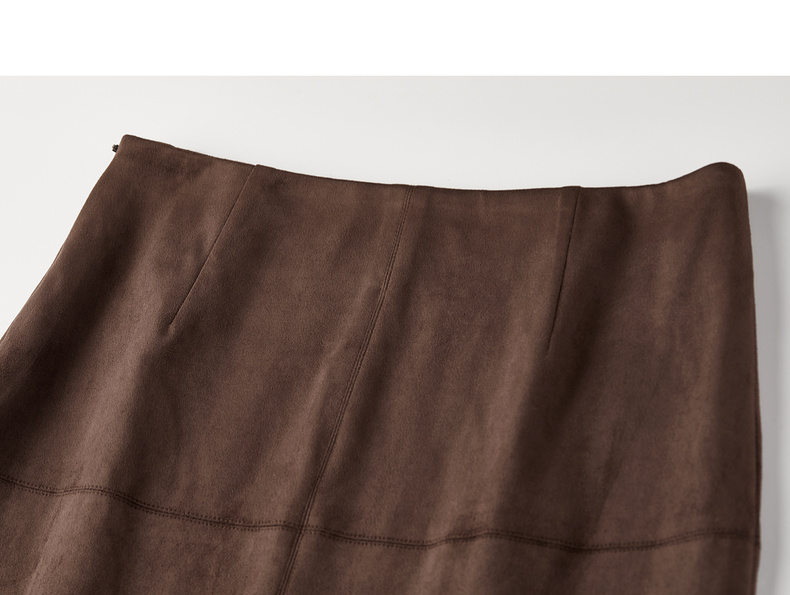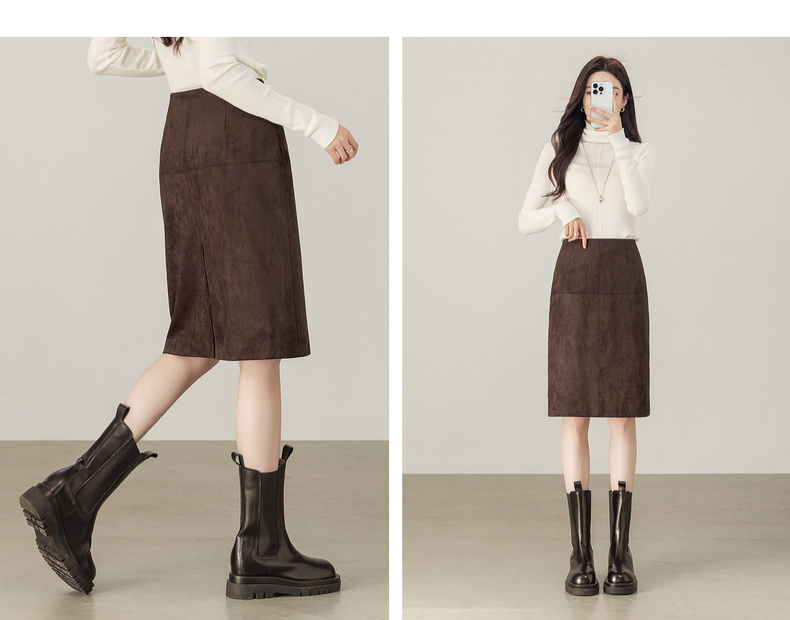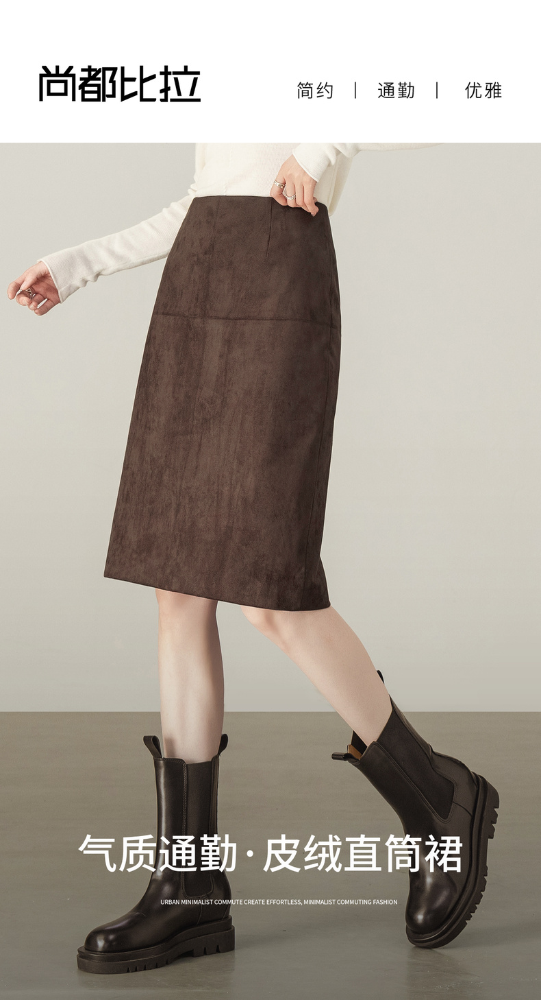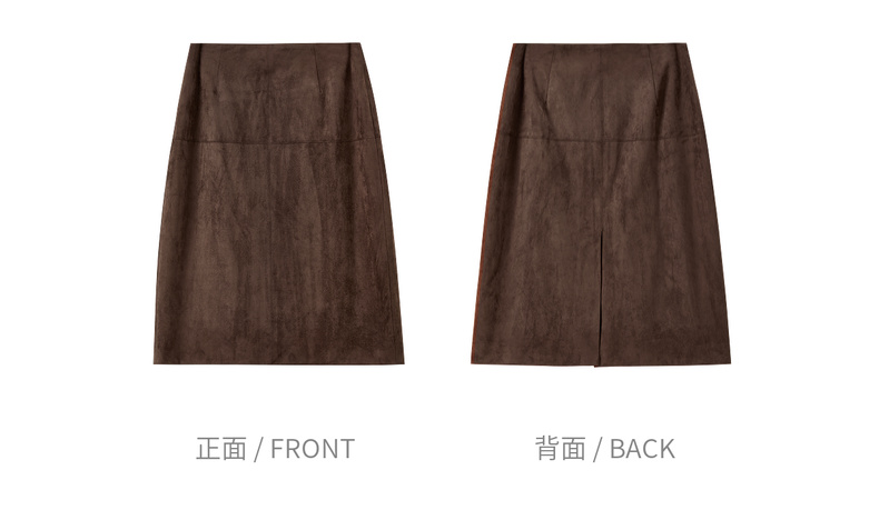 【内购】【不挑身高】都市通勤分割设计裙摆开叉显腿直皮绒直筒裙-153QF3059