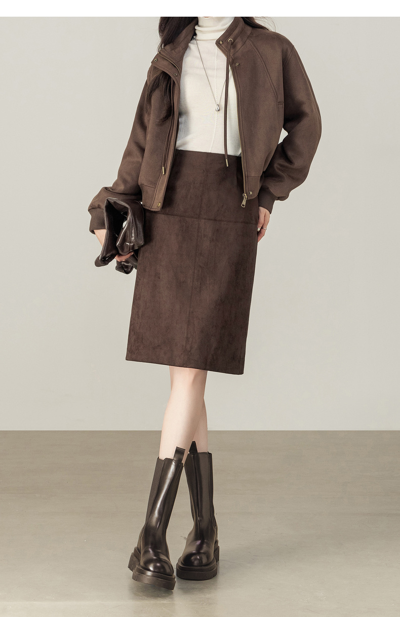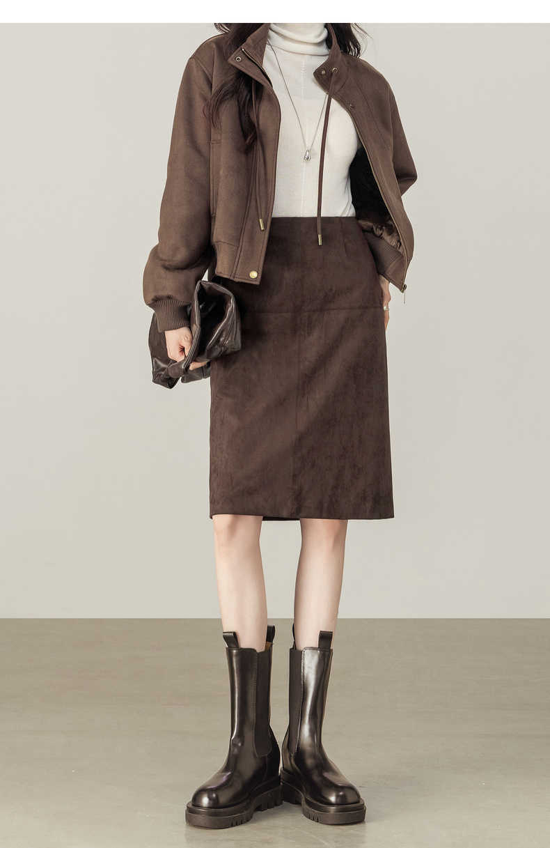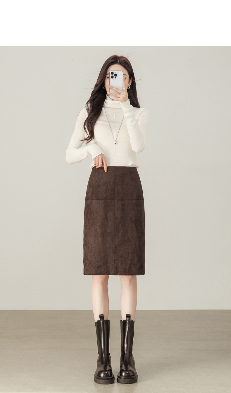 【内购】【不挑身高】都市通勤分割设计裙摆开叉显腿直皮绒直筒裙-153QF3059