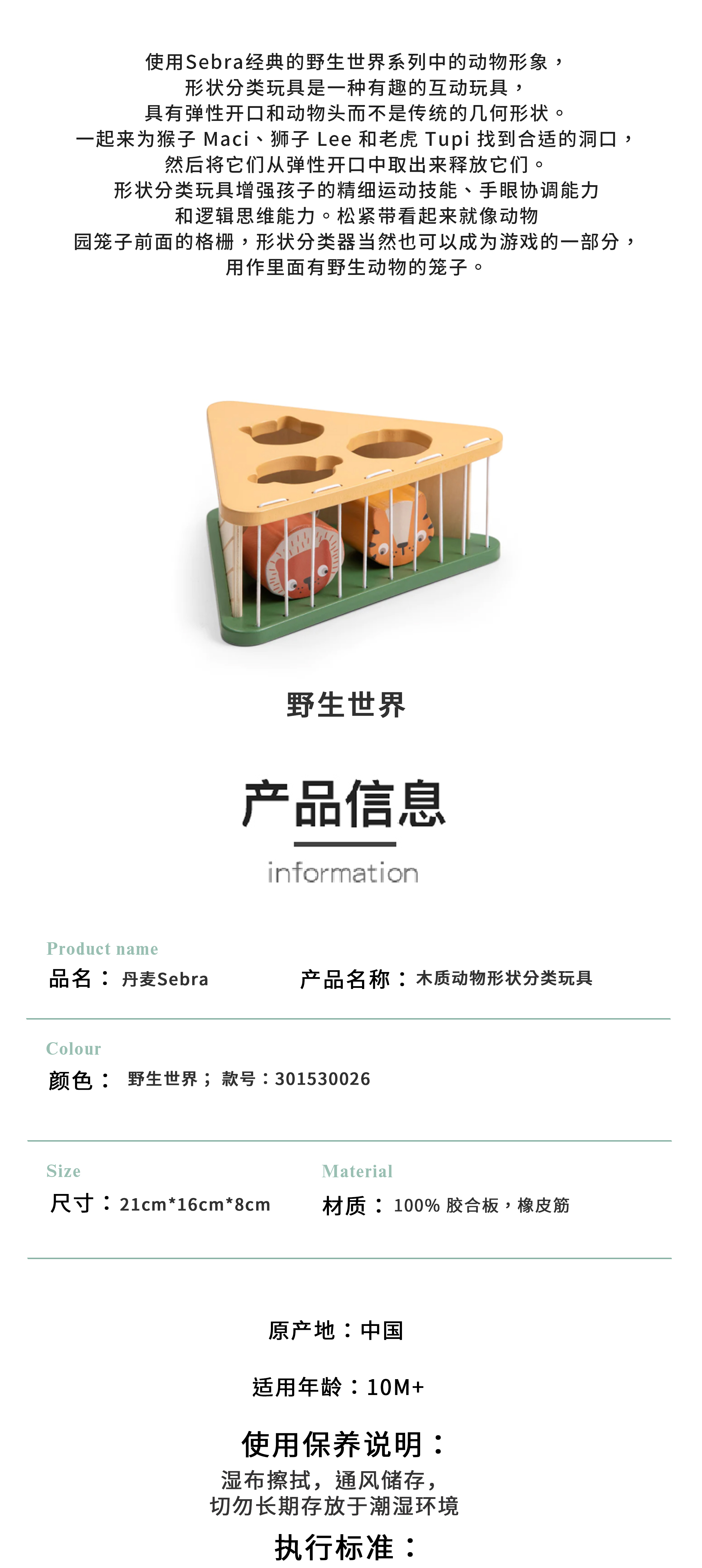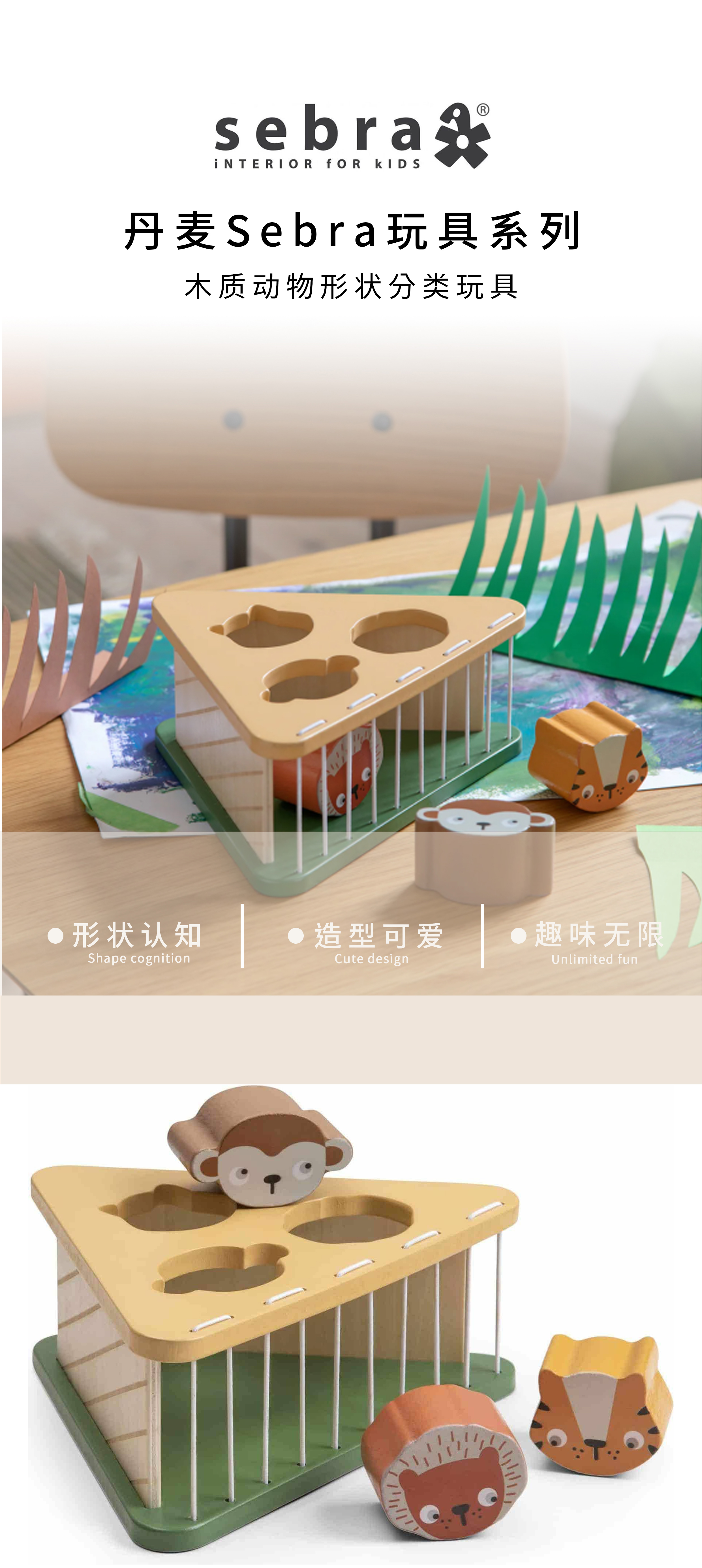 丹麦Sebra 木质动物形状分类玩具- 野生动物宝宝抓握训练形状认知益智玩具 10月+