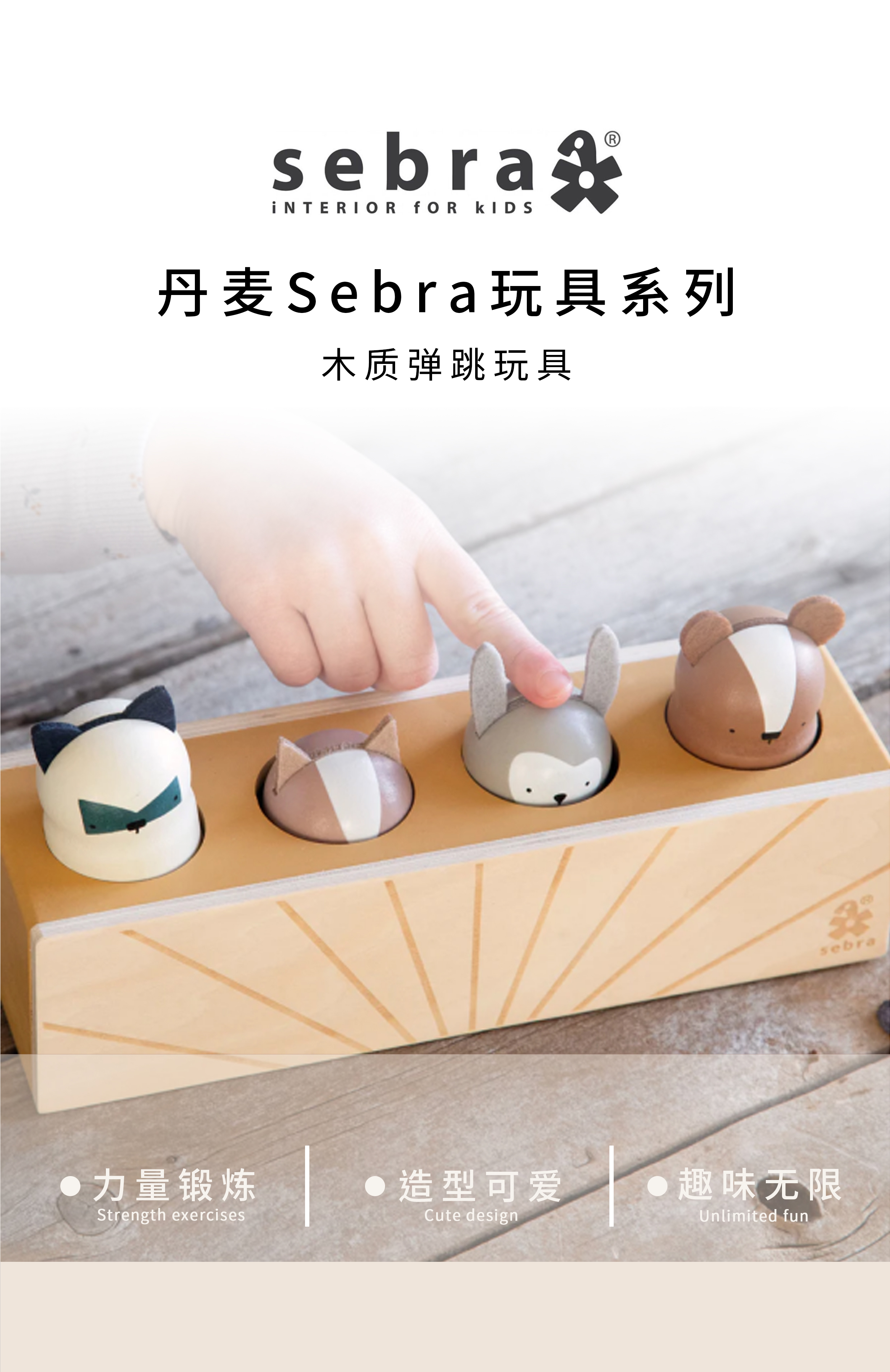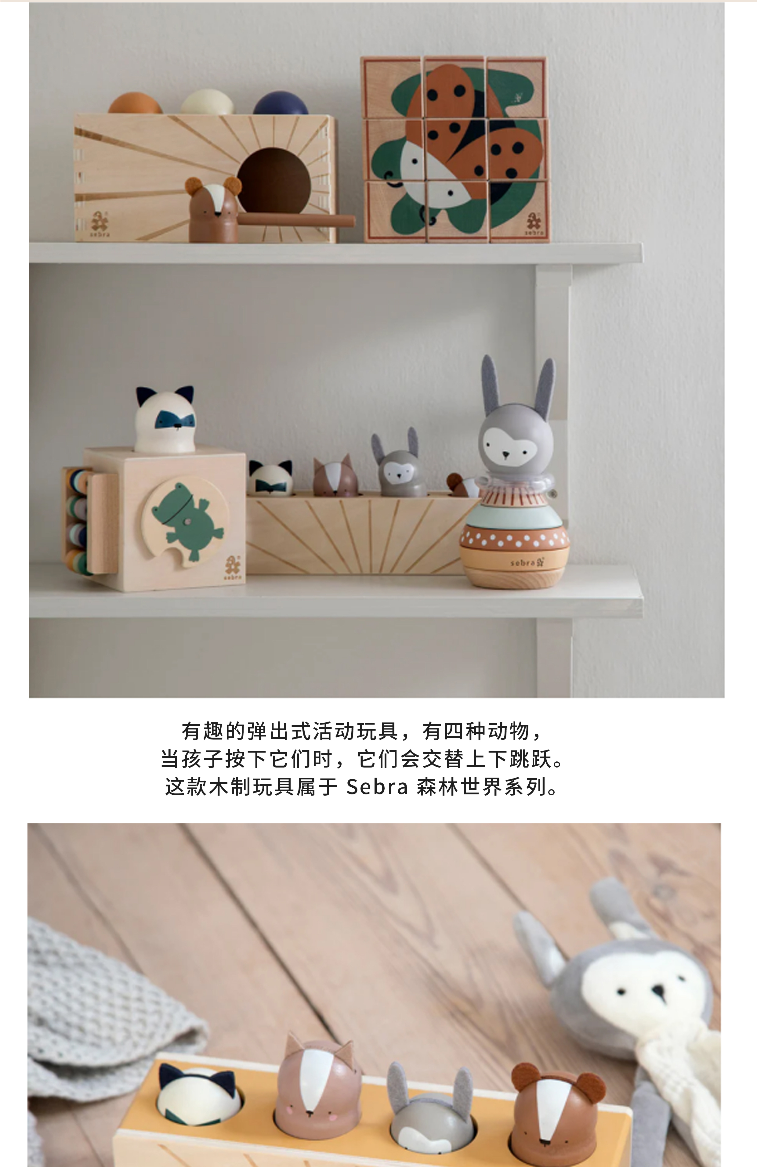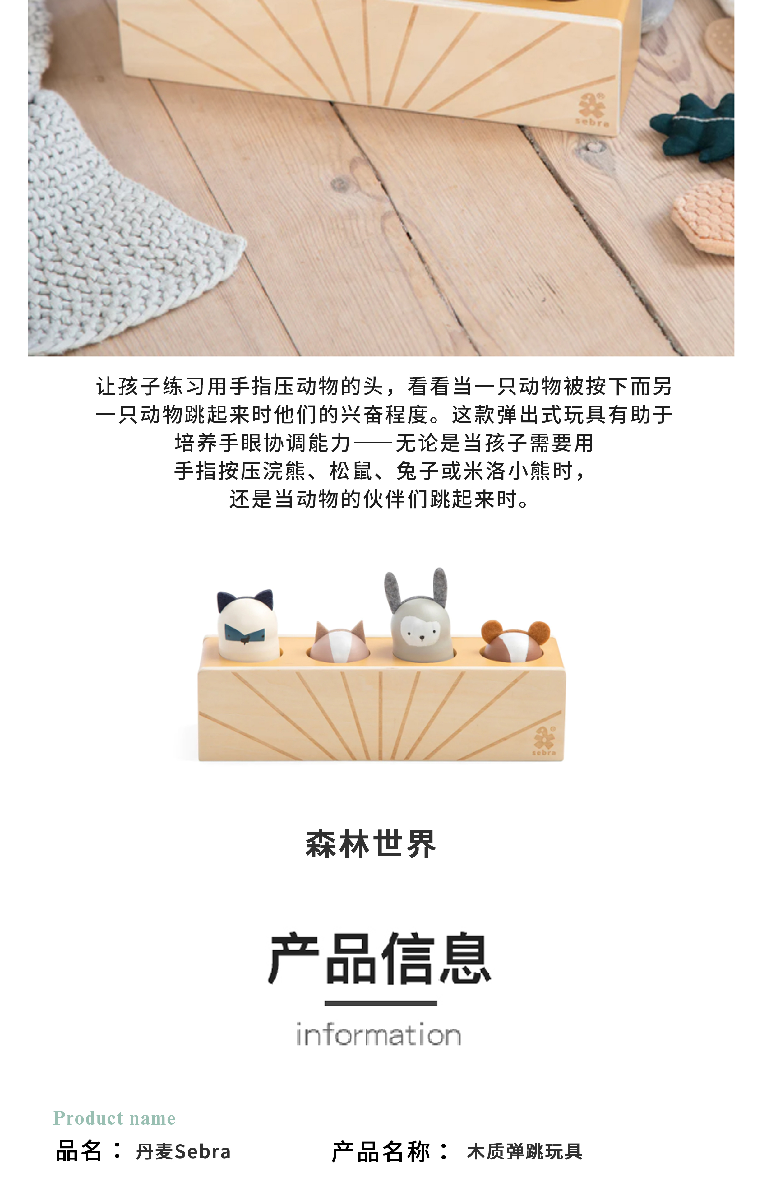丹麦Sebra木质动物弹跳玩具-打地鼠按压益智玩具22cm*7cm*12cm