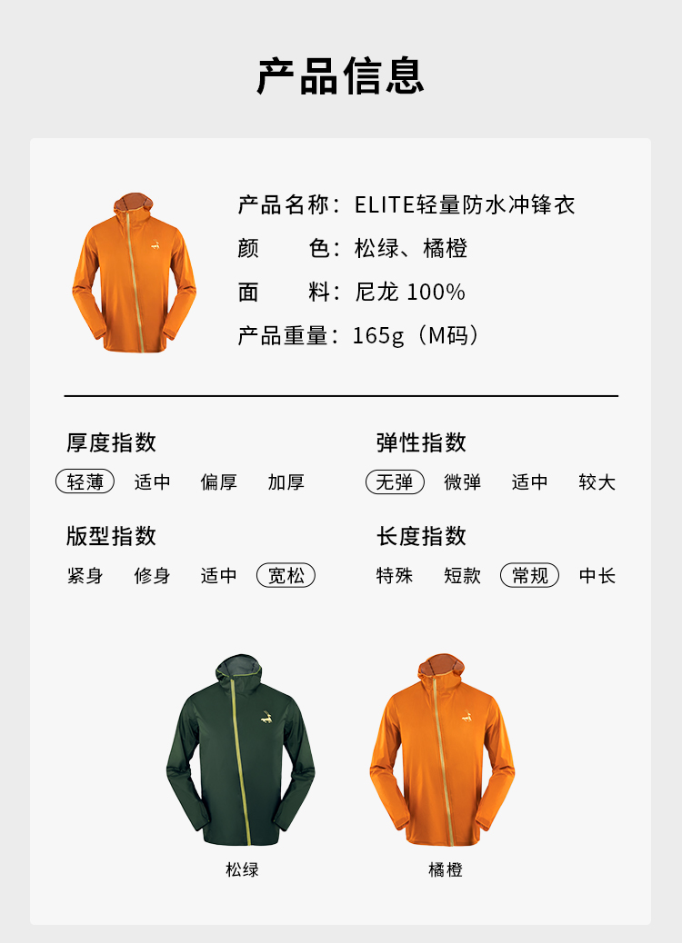 优极UG ELITE男女款斜开拉链轻量冲锋衣