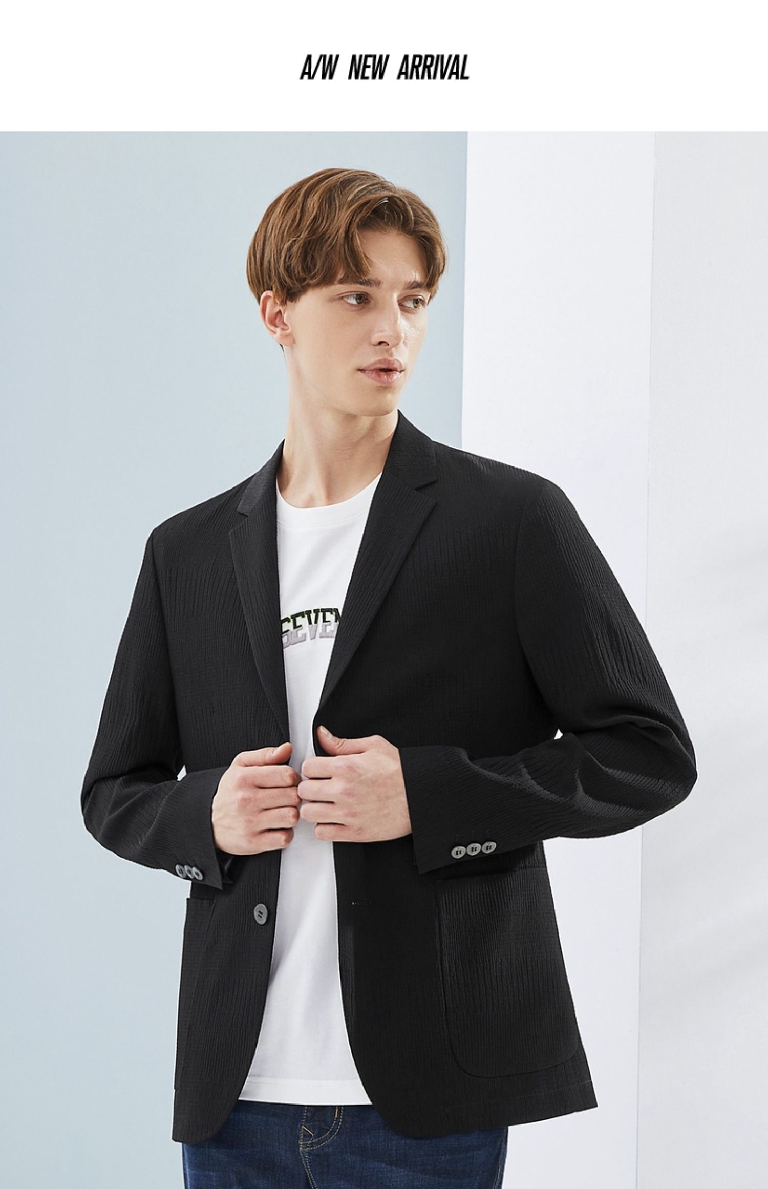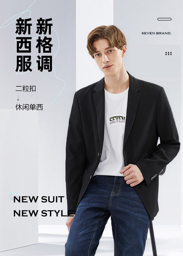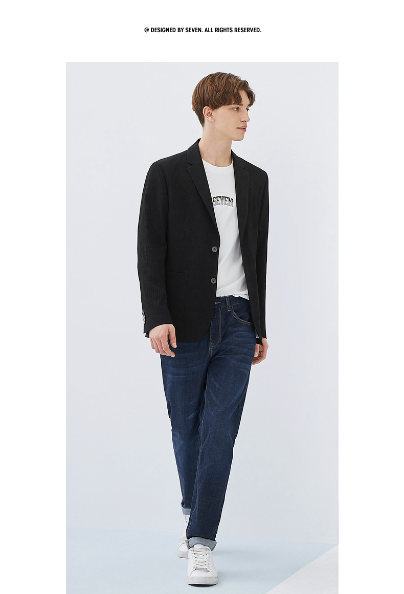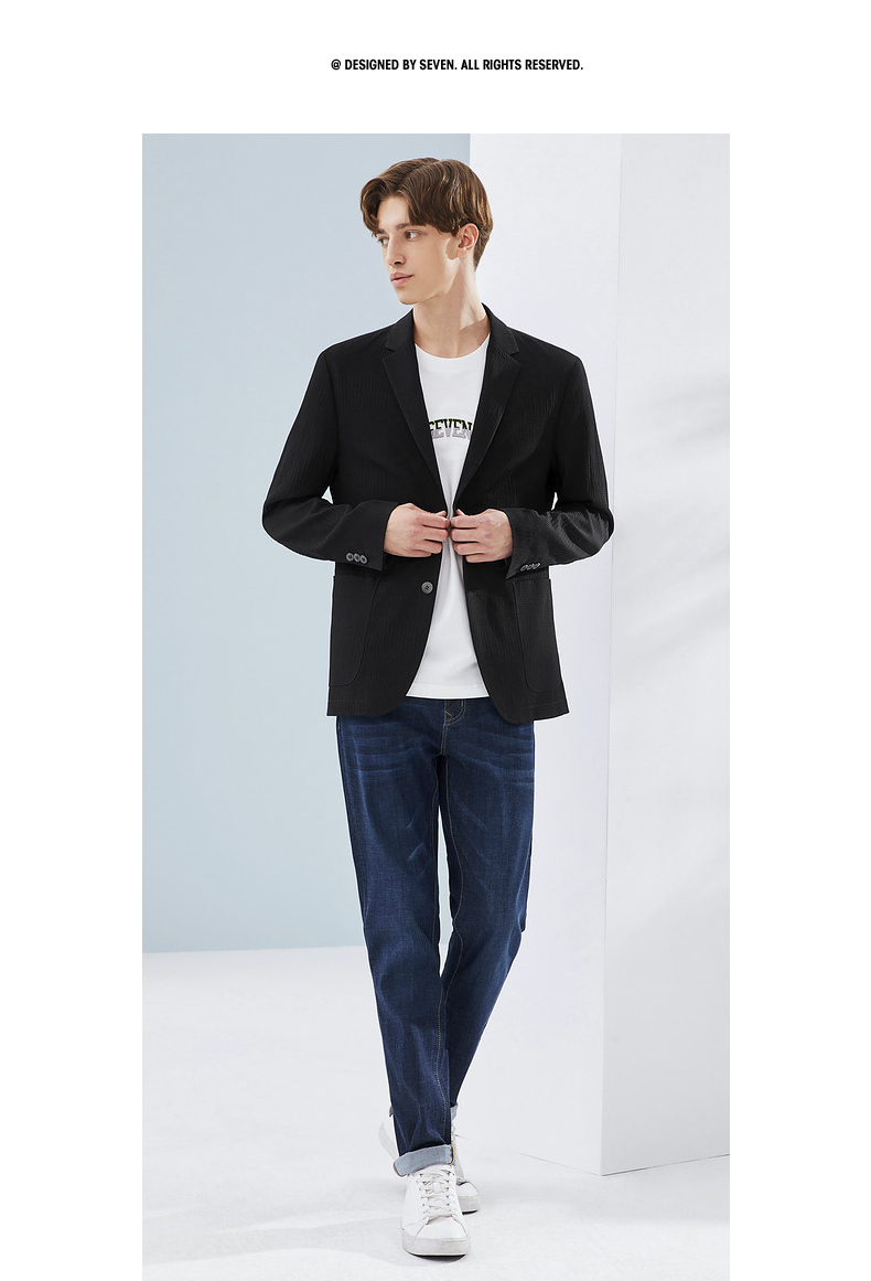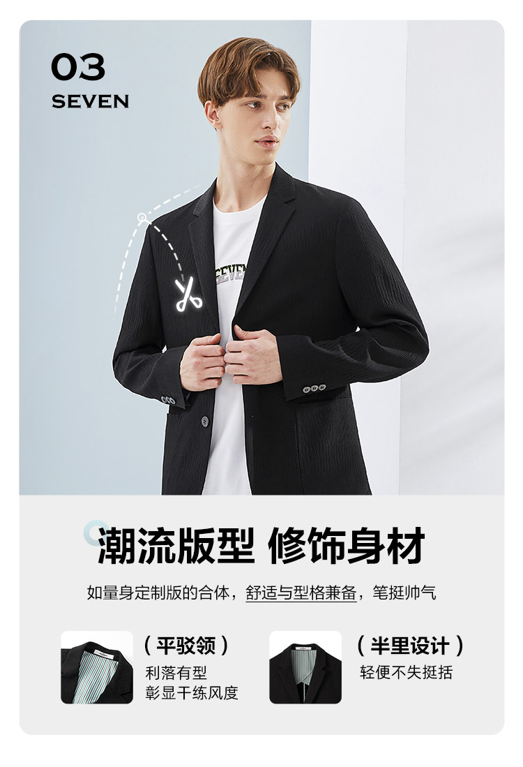 【特价】柒牌单西外套男春季新款商务职场上班男士黑色修身平驳领西装 124C70280