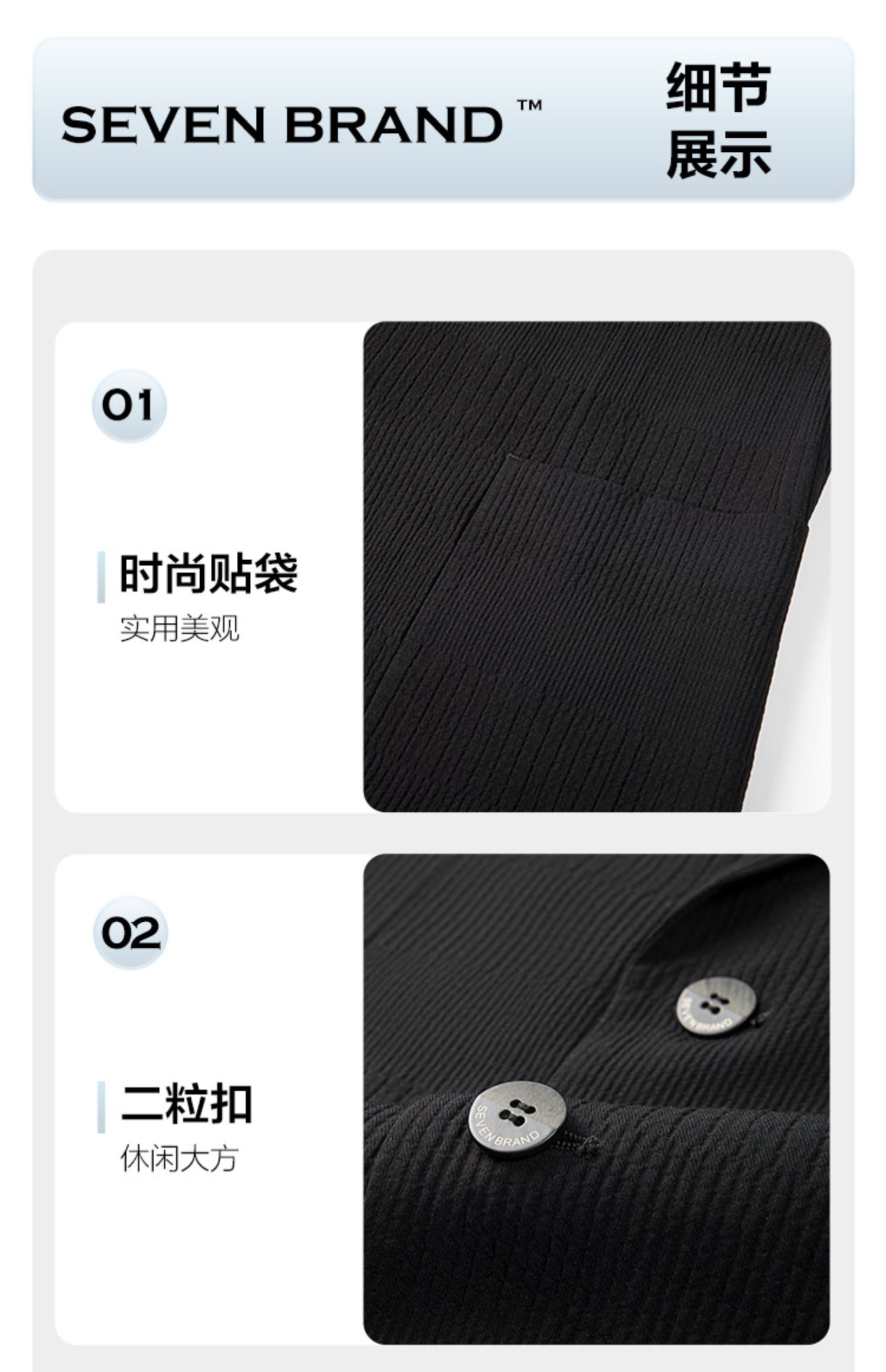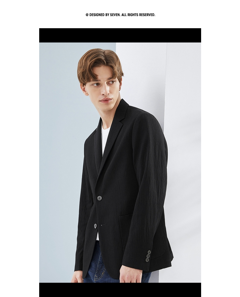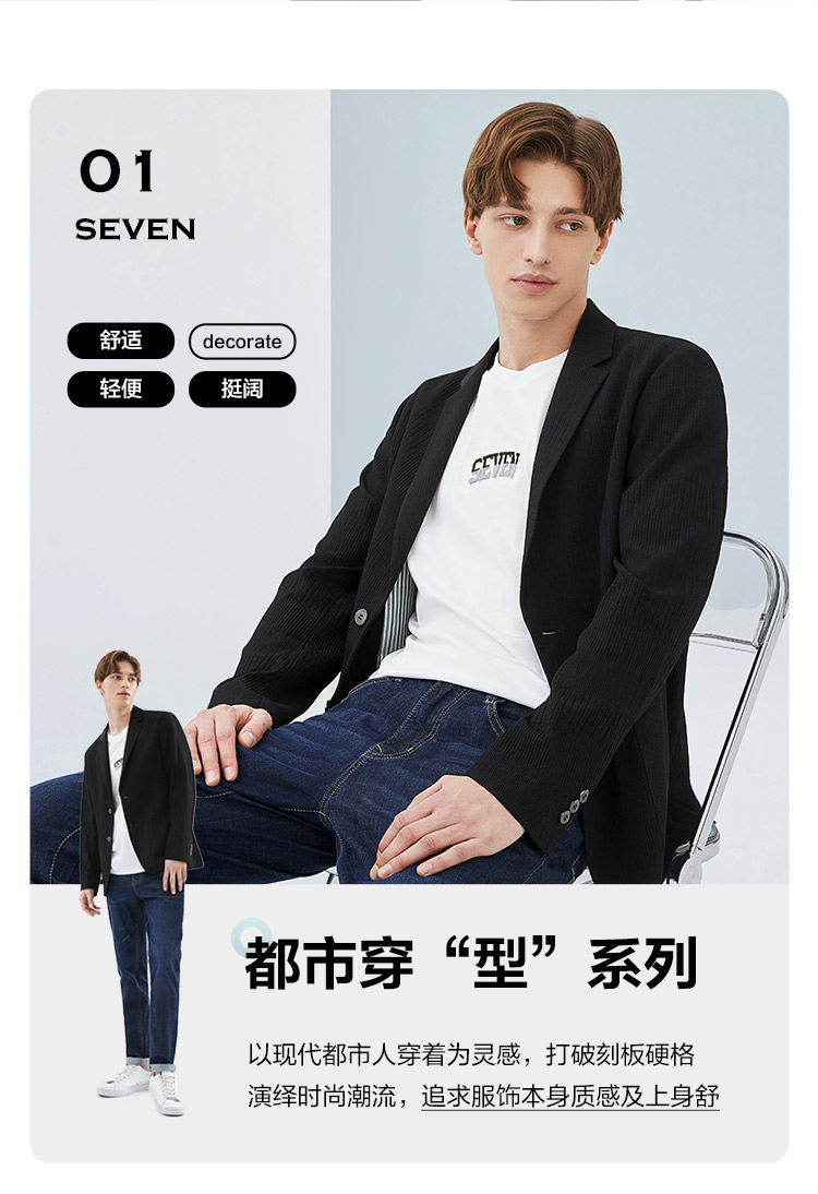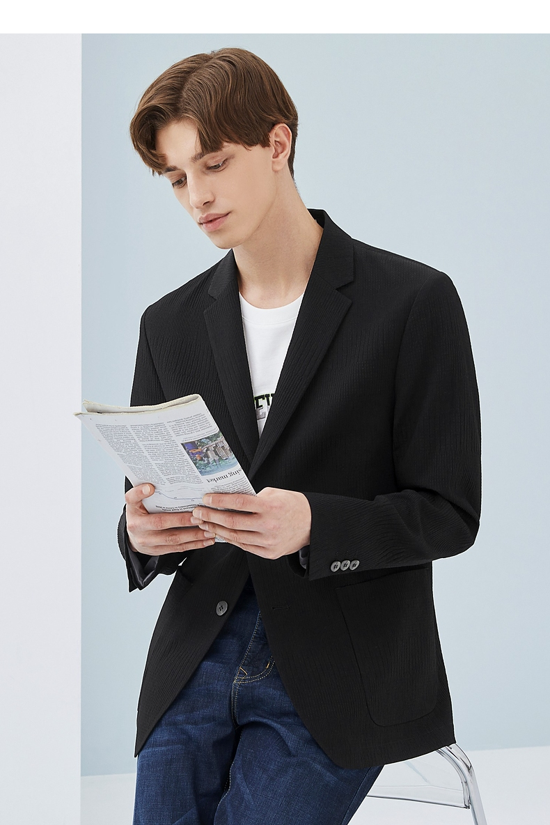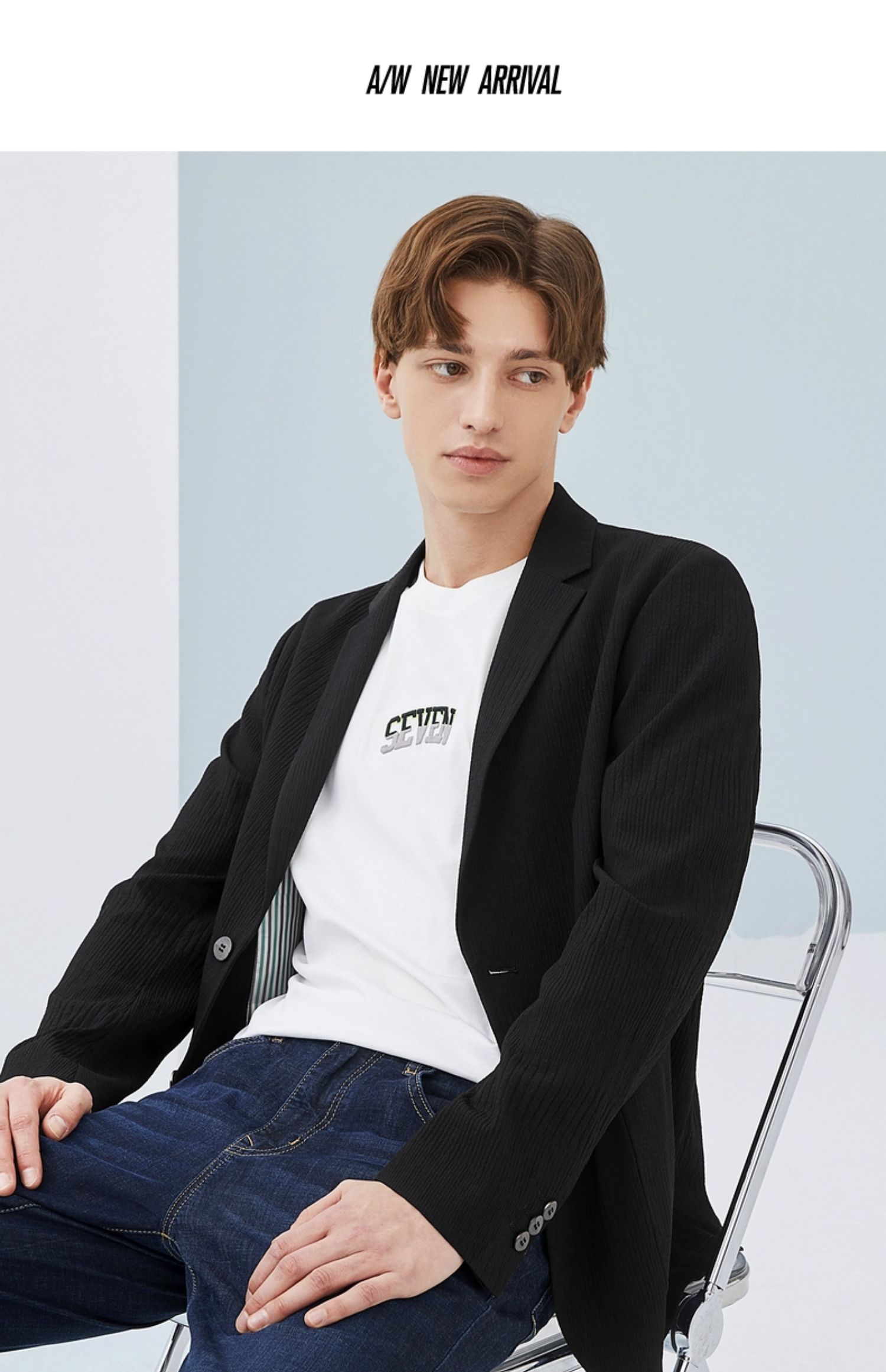 【特价】柒牌单西外套男春季新款商务职场上班男士黑色修身平驳领西装 124C70280