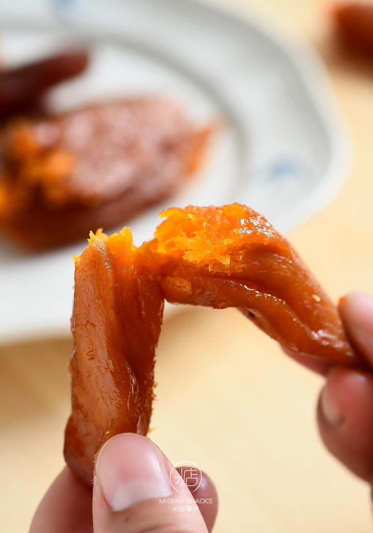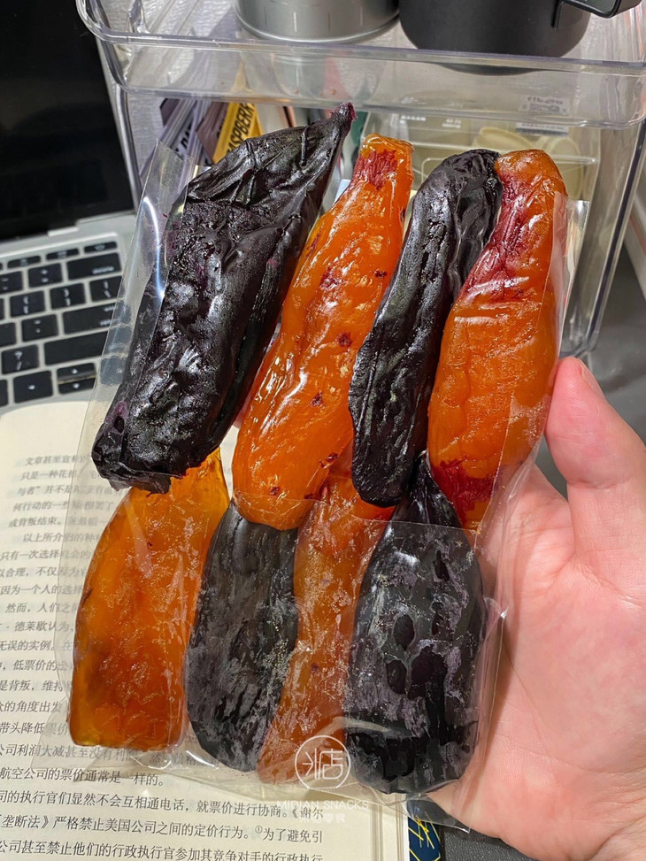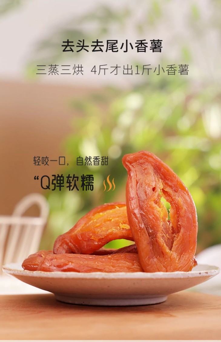 当时样品试了一波又一波, 不是太甜,就是太硬 不然就是太粘牙, 最后才决定的这款香薯干。 就是我们想找的香薯干没跑了, 带皮的薯干香甜软糯刚刚好的甜度和韧度, 一口下去软糯清甜不费牙, 值得一试!🧡