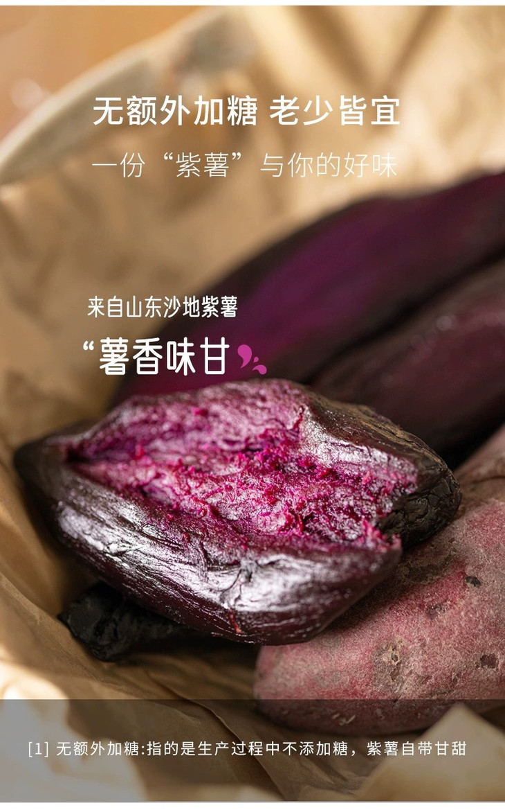市面上很多紫薯干都是用糖增加甜度的, 用防腐剂保持颜色和延长保质期, 而我们的紫薯干配料干净,仅有紫薯干!👍 无添加不额外加糖分