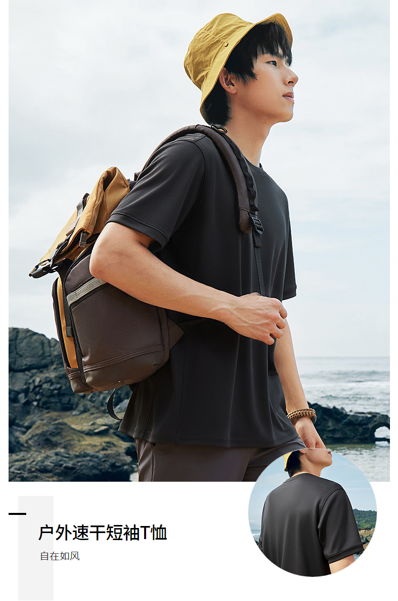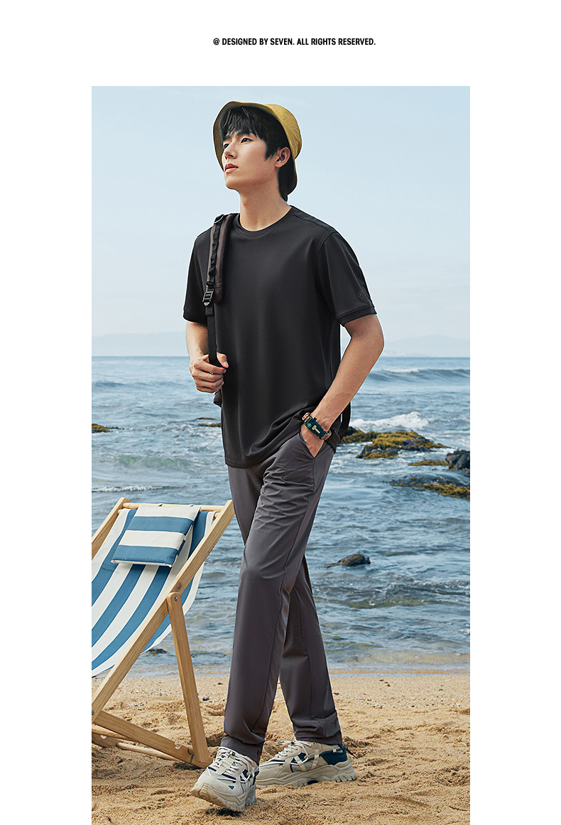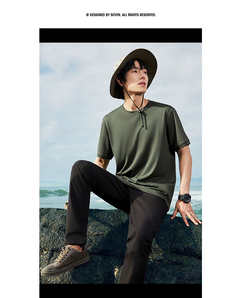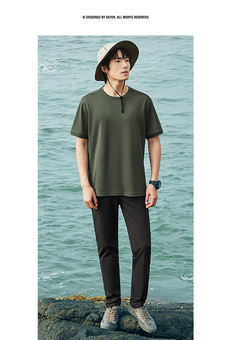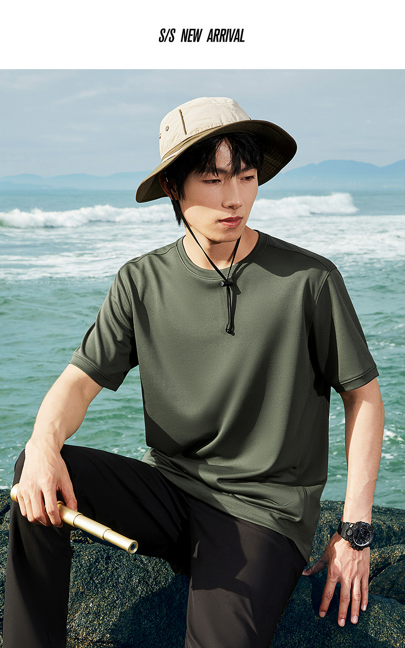【吸湿速干】柒牌短袖T恤男2024夏季新款户外休闲宽松圆领体恤衫 126T72930