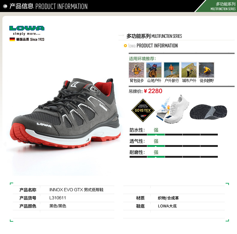 【LOWA】INNOX EVO GTX男士低帮鞋L310611