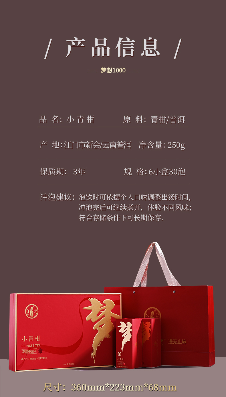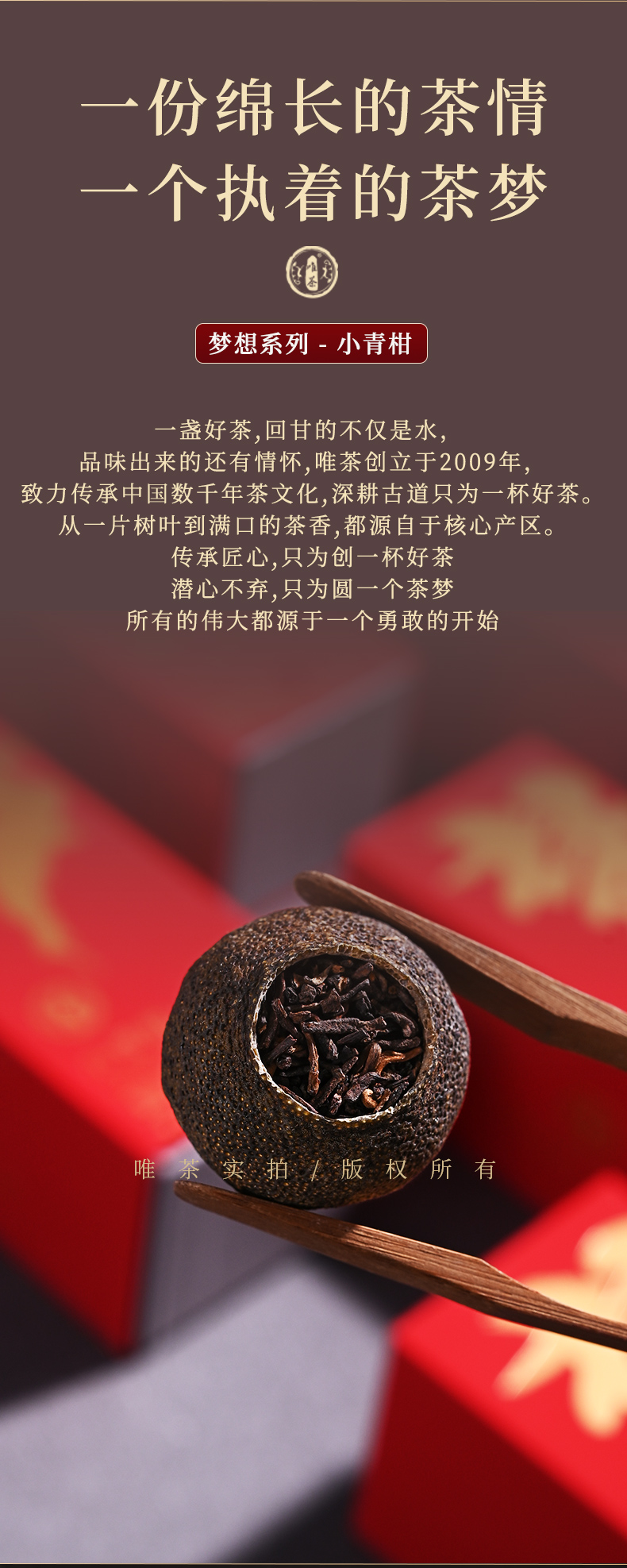 唯茶梦想1000系列 小青柑礼盒装 天马老树柑 8年陈宫廷金芽普洱 黄金配比 天然生晒(6小盒30颗)