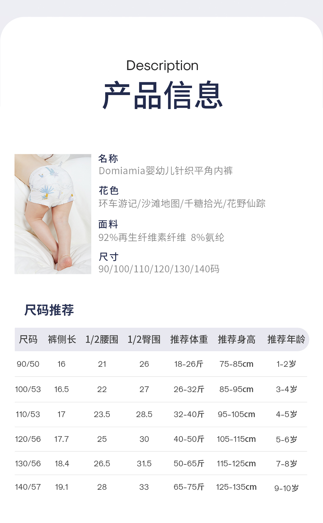 Domiamia哆咪呀儿童竹纤维纳米银抗菌内裤男童女童宝宝面包裤短裤