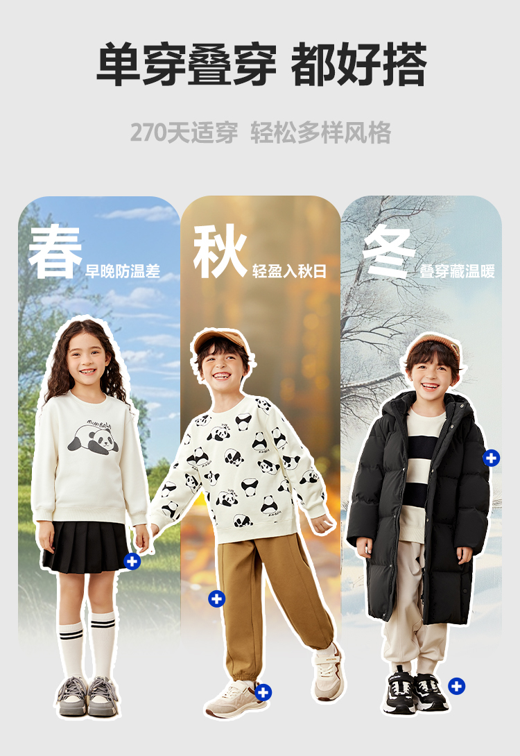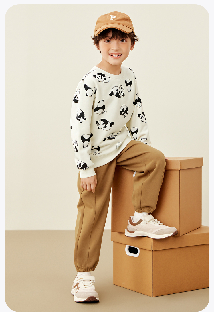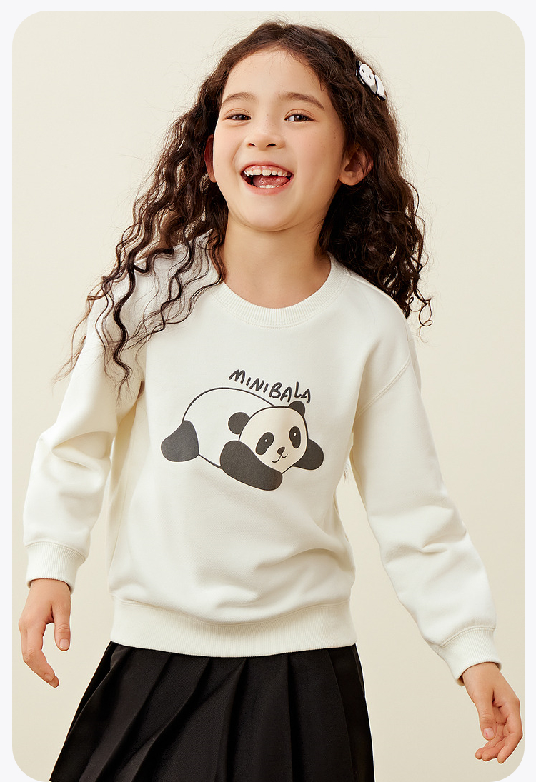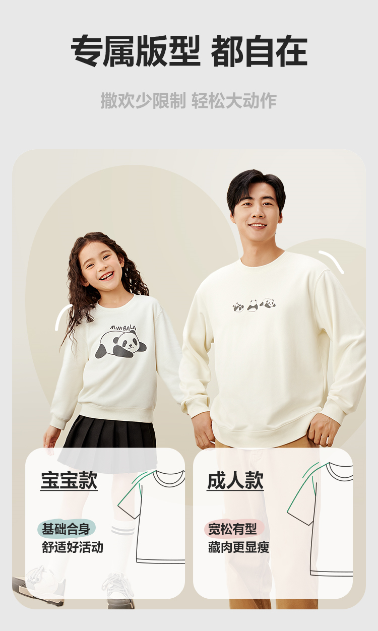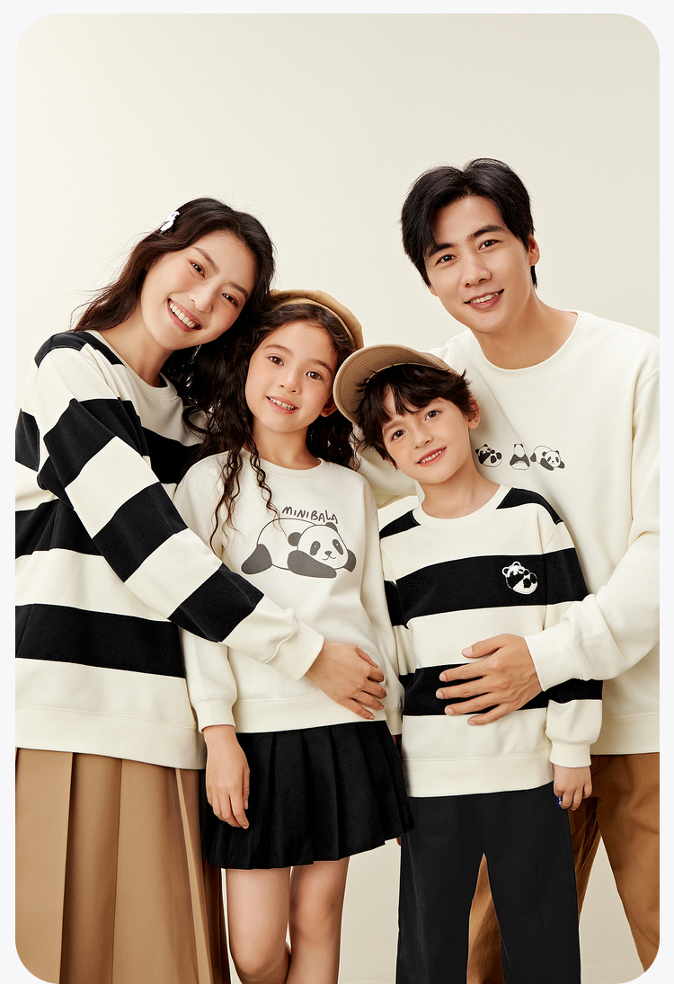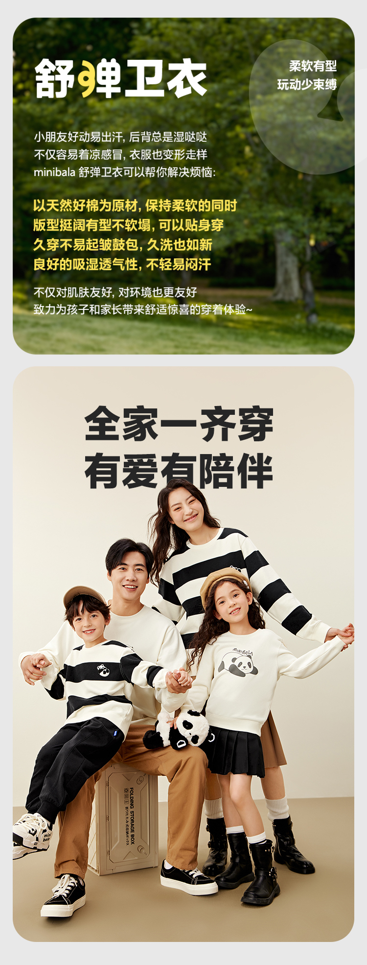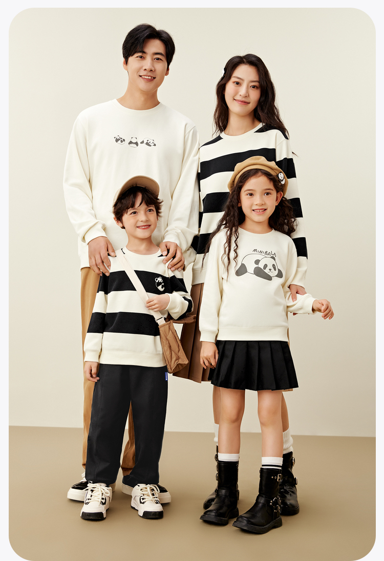 【mini亲子】迷你巴拉男女童新品一家三口软弹熊猫卫衣秋