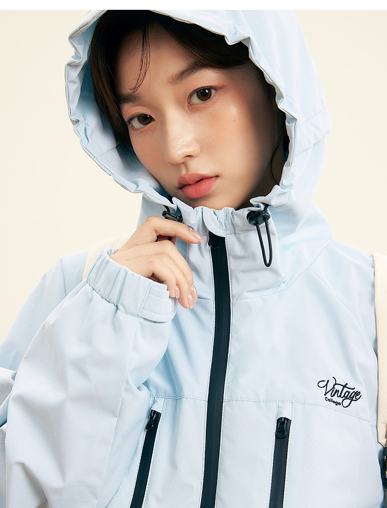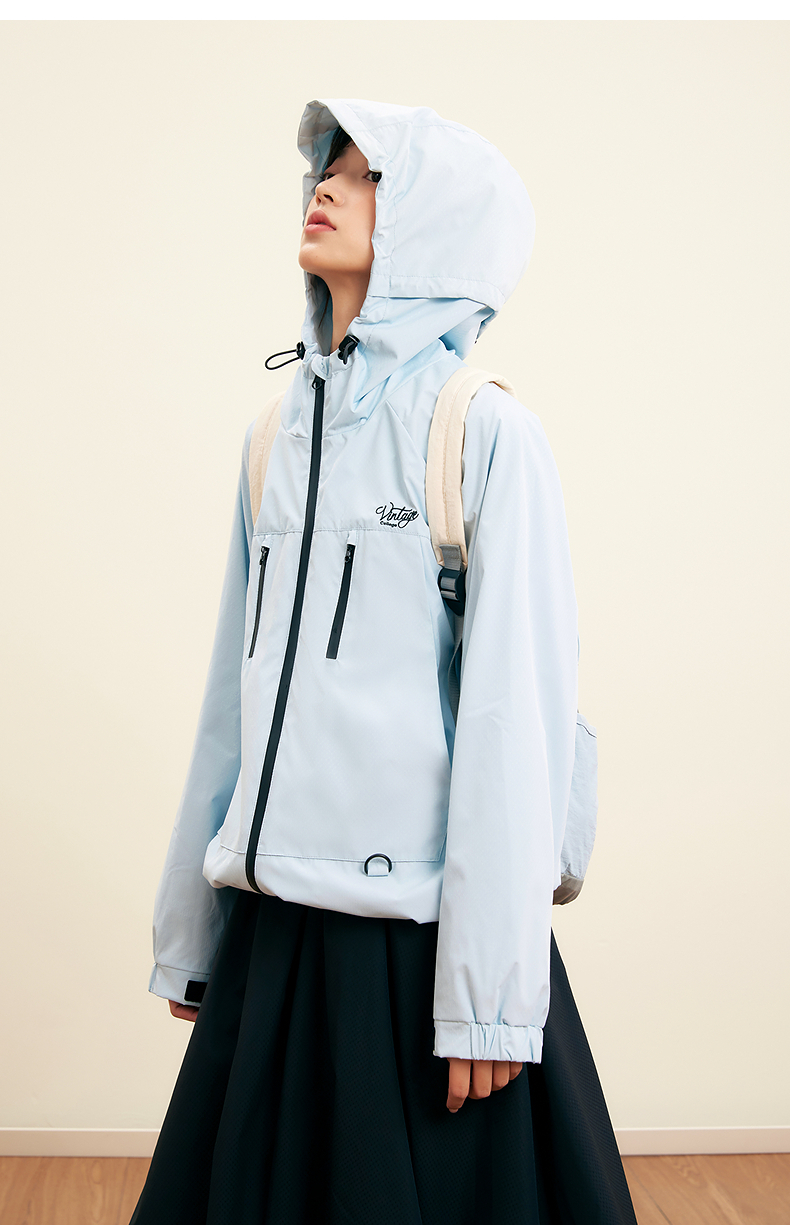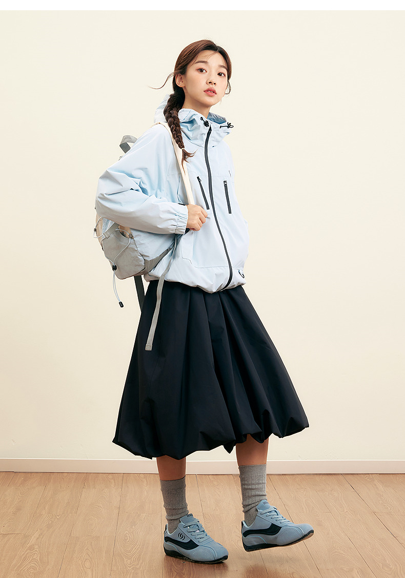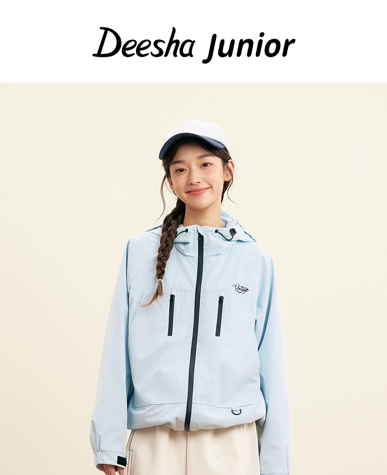 笛莎Deesha青少年女童外套2025秋季女童暗纹提花冲锋衣外套