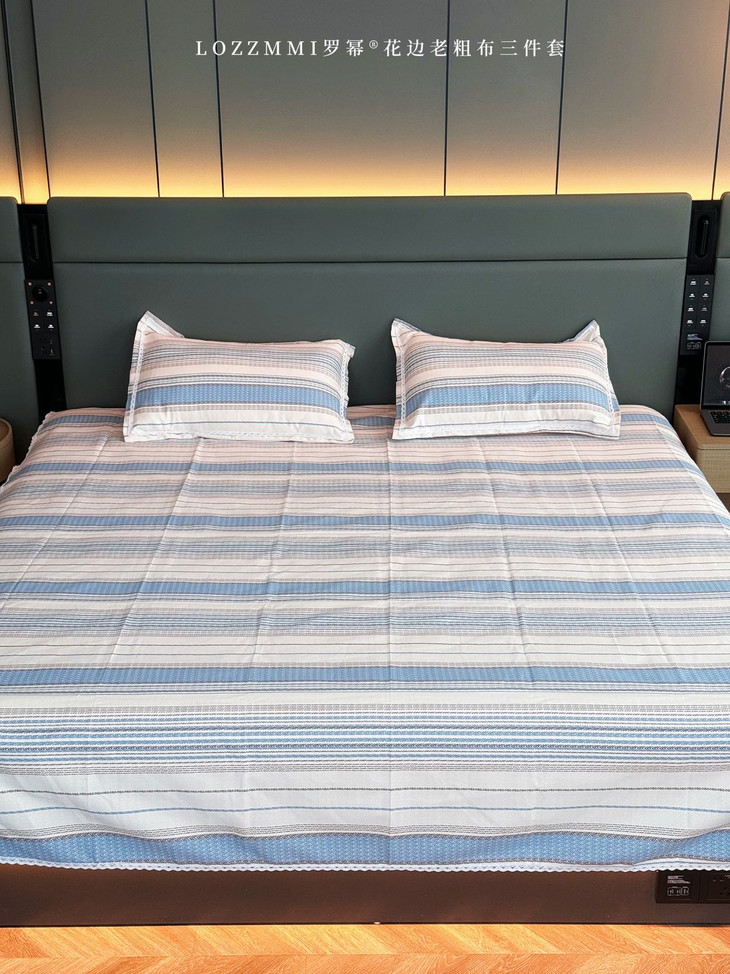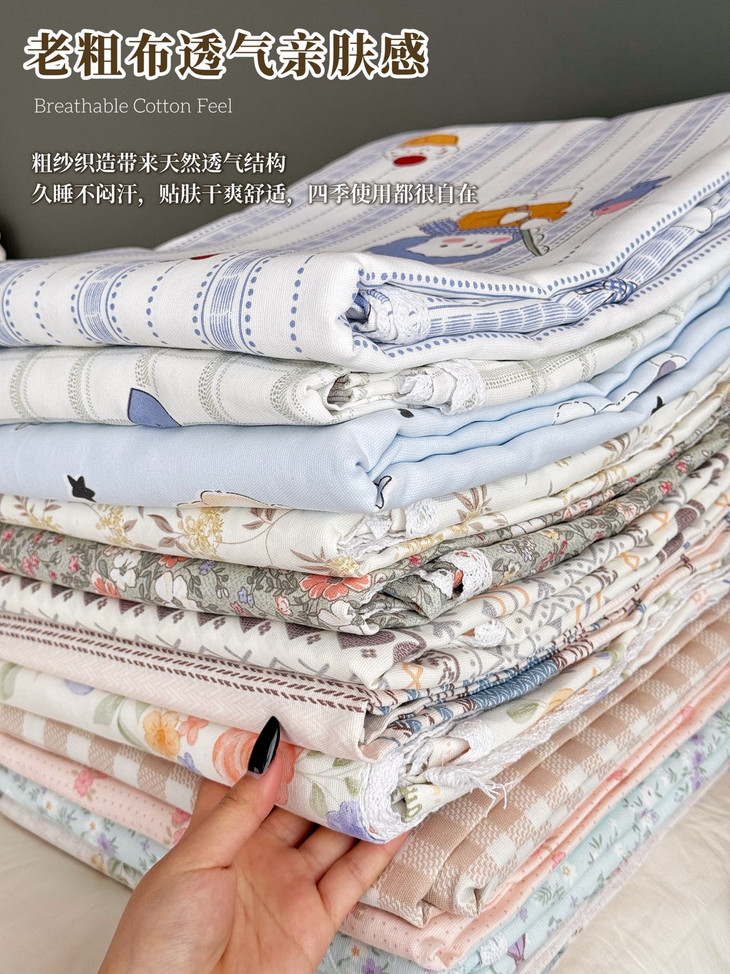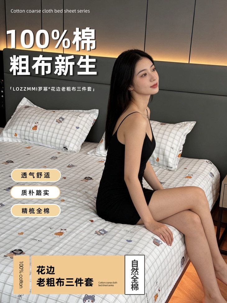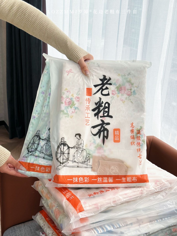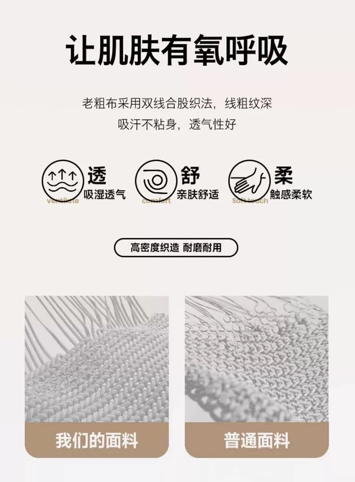 老粗布,不只是复古,是更聪明的选择 区别于常规磨毛或化纤床品 这款采用传统工艺织造的老粗布面料 纱线更粗、更有骨感,织法更紧密 带来一种自然呼吸的触感