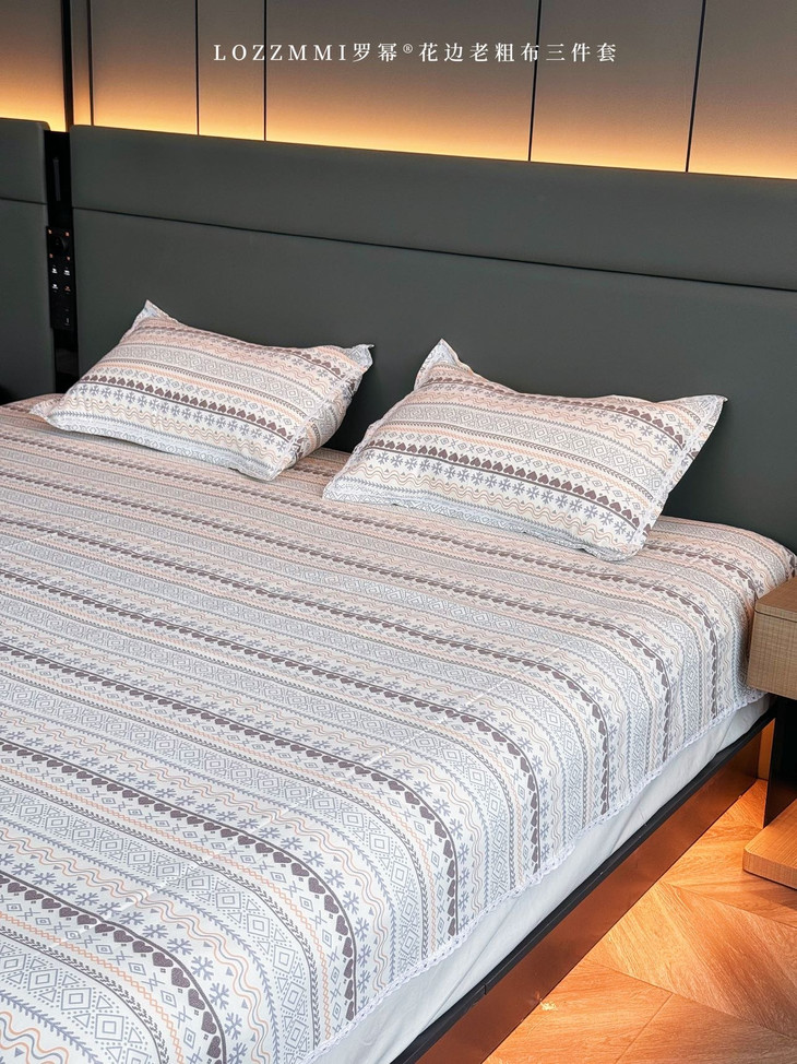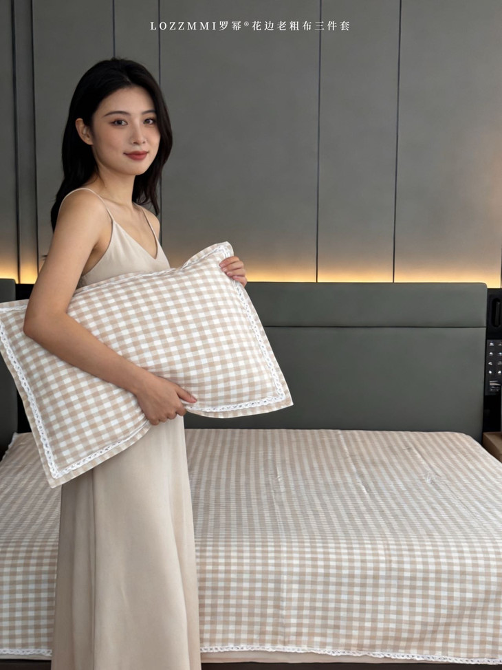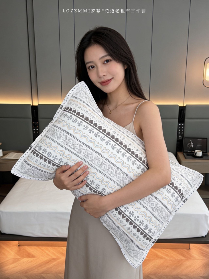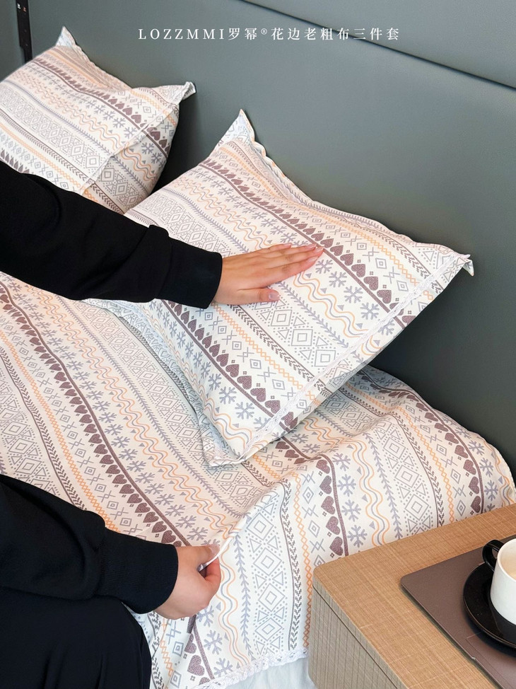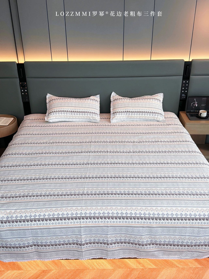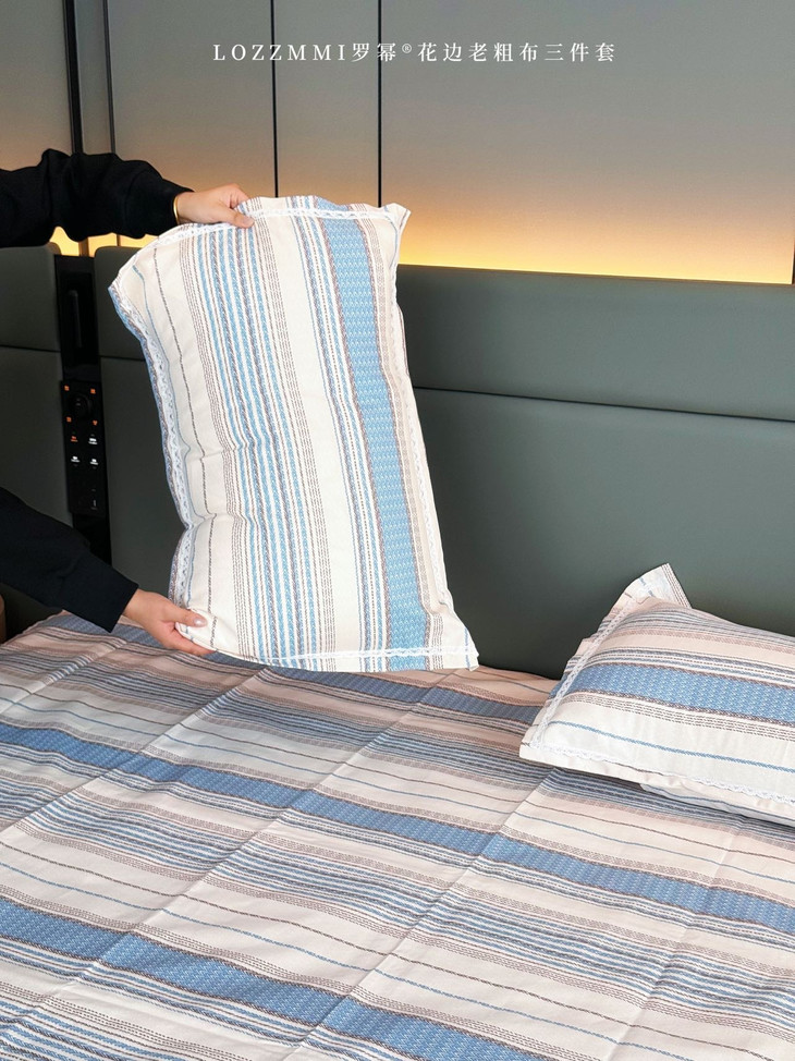 老粗布,不只是复古,是更聪明的选择 区别于常规磨毛或化纤床品 这款采用传统工艺织造的老粗布面料 纱线更粗、更有骨感,织法更紧密 带来一种自然呼吸的触感