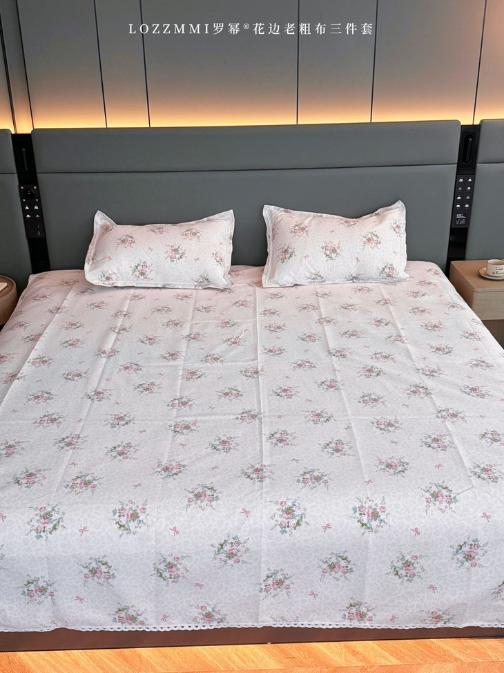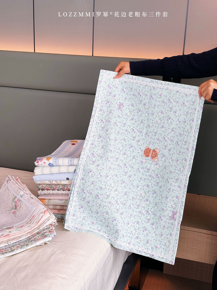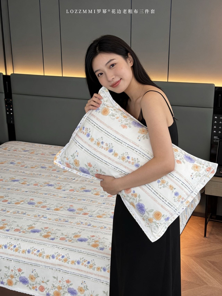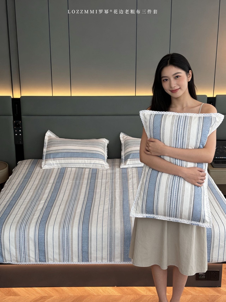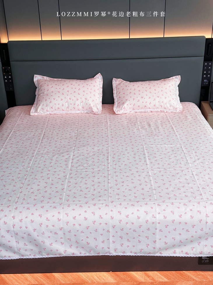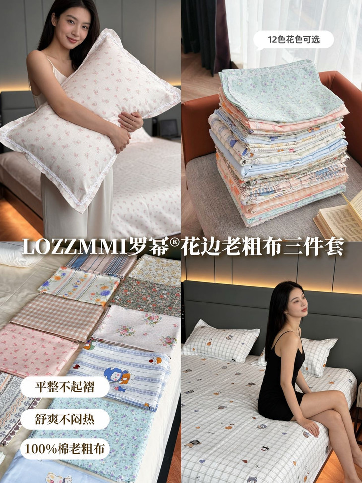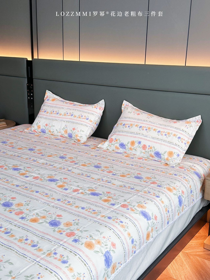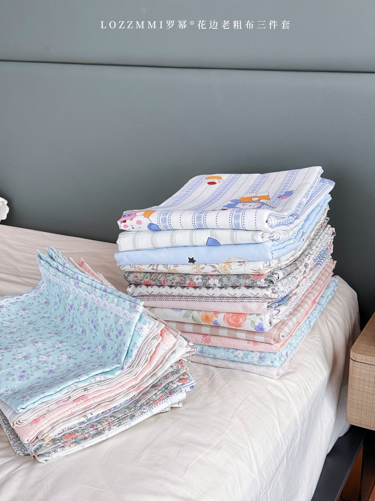 下单详情:LOZZMMI罗幂®花边老粗布三件套 尺寸:凉席:225*245cm 枕套48*74*2 (通用于1.5米/1.8米2.0/米床) 规格:12色可选 萌宠格趣、蓝调条纹、橘语碎花、春日花蔓 粉格温眠、粉樱星点、素雅蕾丝、童趣熊纹 星兔浅蓝、柔粉玫瑰、灰底繁花、米底碎芳