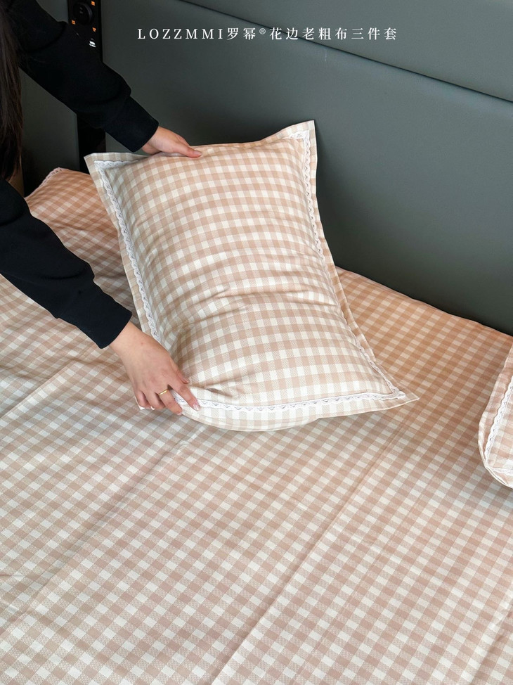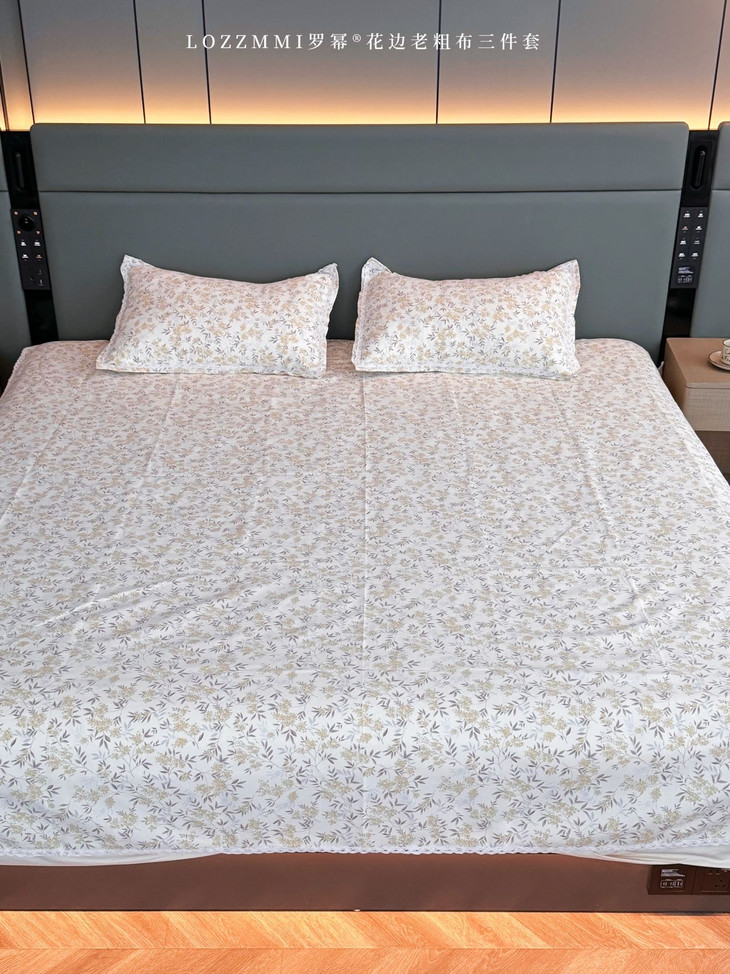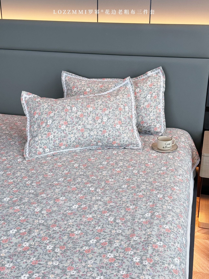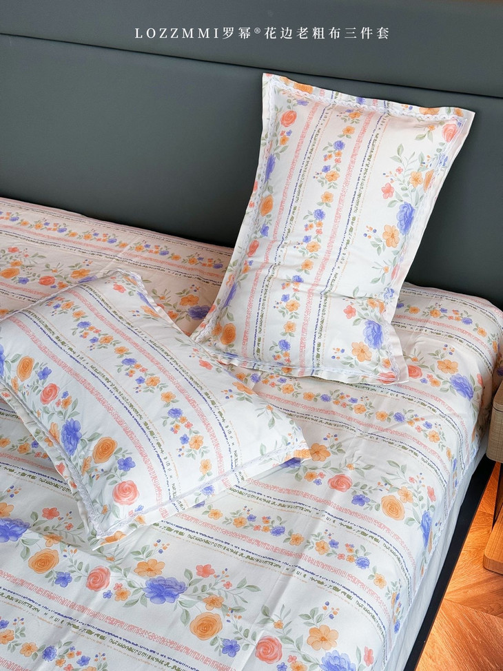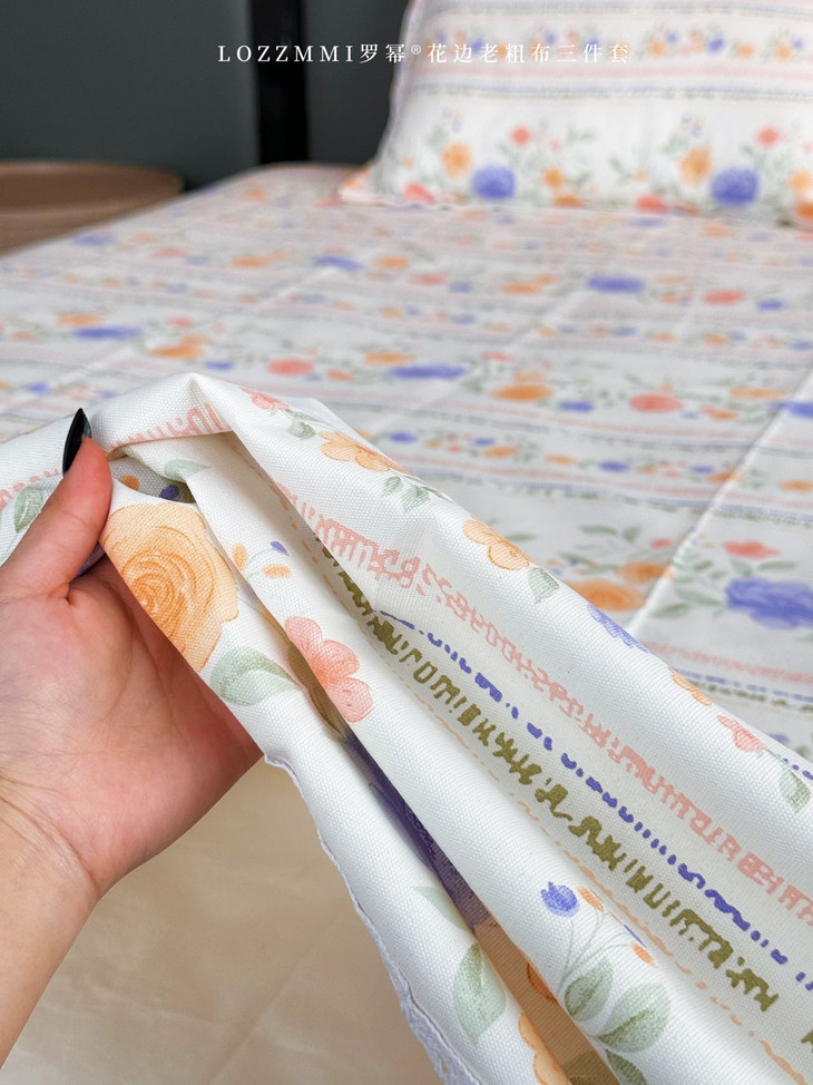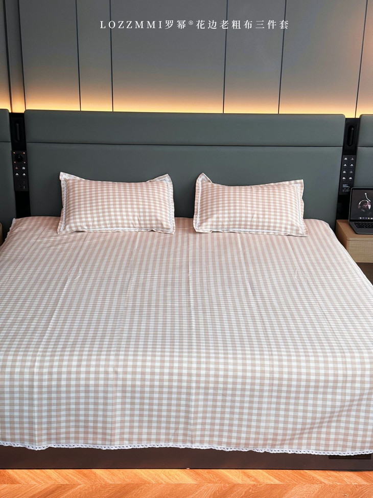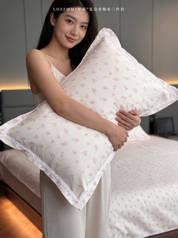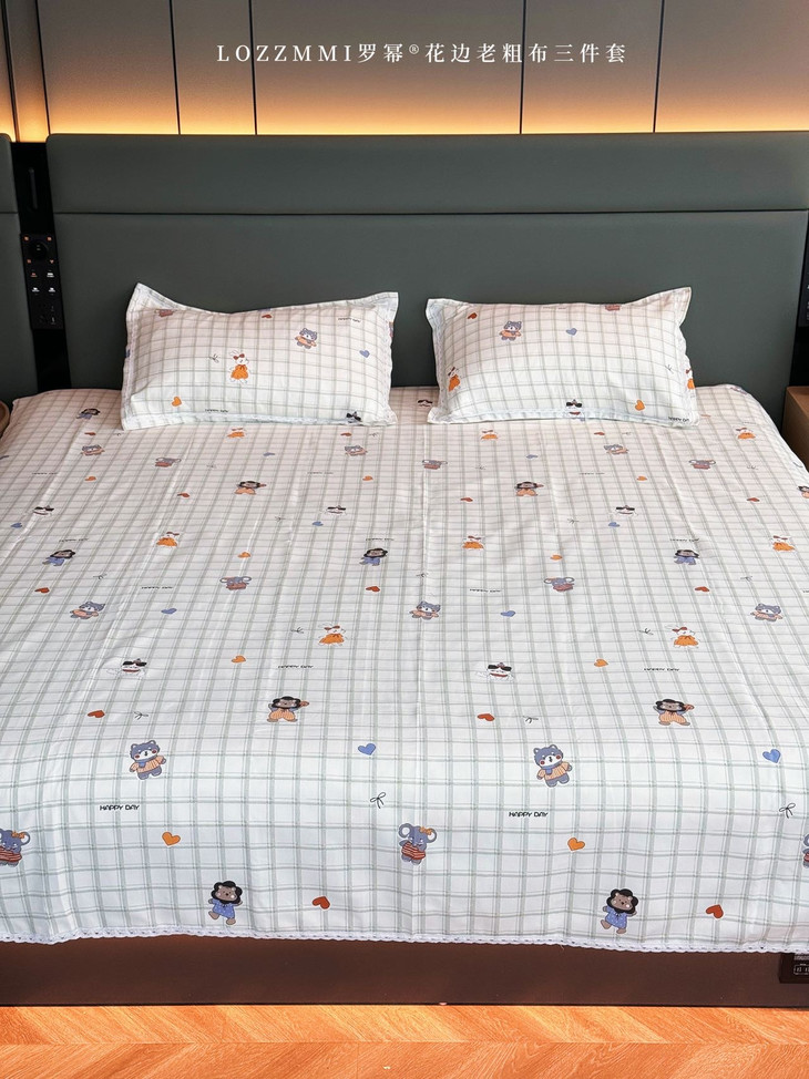 下单详情:LOZZMMI罗幂®花边老粗布三件套 尺寸:凉席:225*245cm 枕套48*74*2 (通用于1.5米/1.8米2.0/米床) 规格:12色可选 萌宠格趣、蓝调条纹、橘语碎花、春日花蔓 粉格温眠、粉樱星点、素雅蕾丝、童趣熊纹 星兔浅蓝、柔粉玫瑰、灰底繁花、米底碎芳