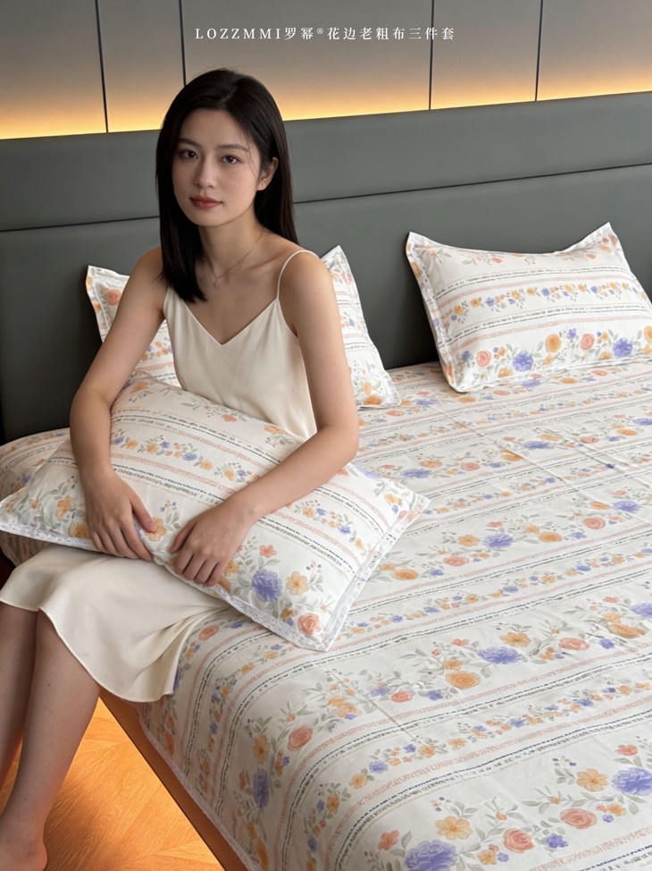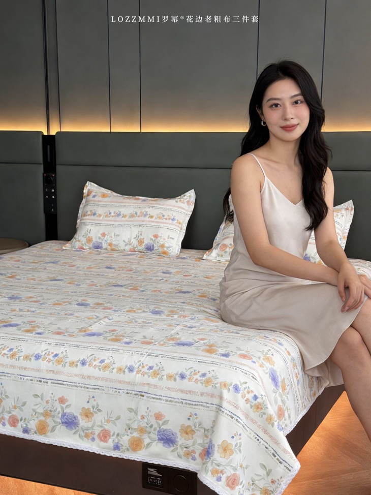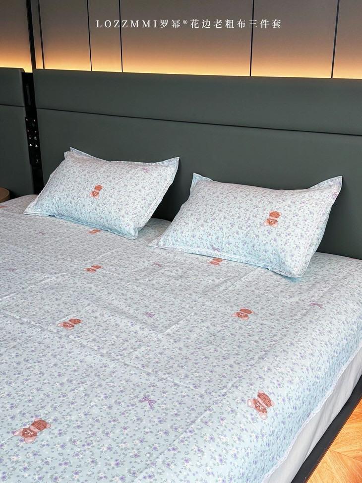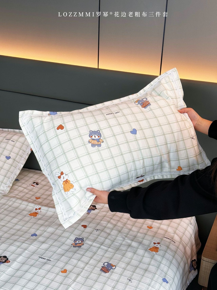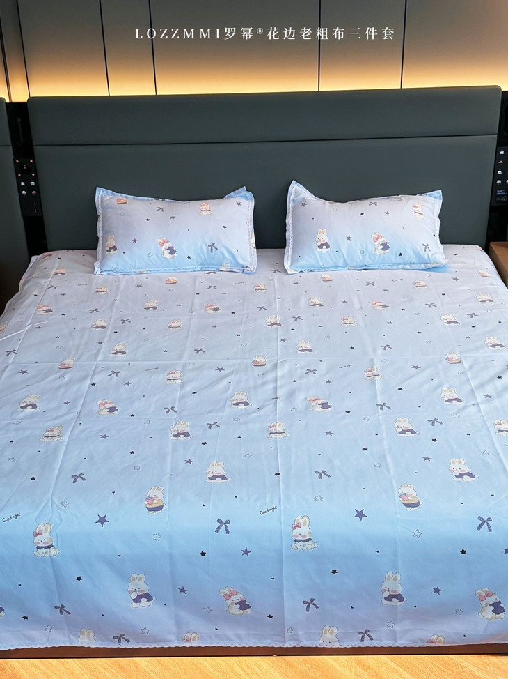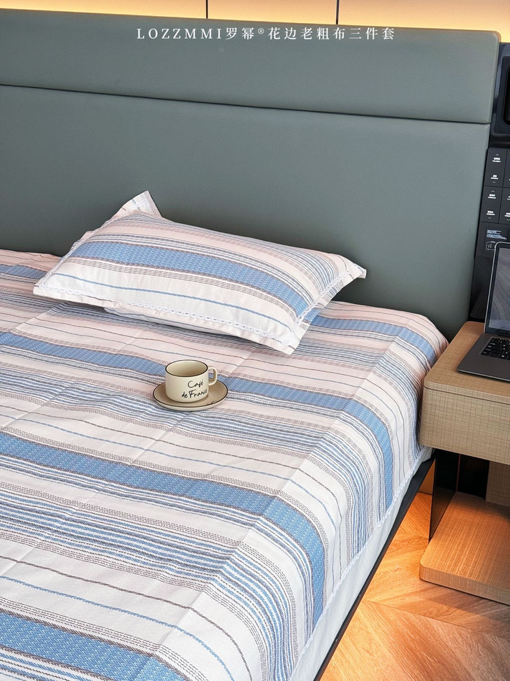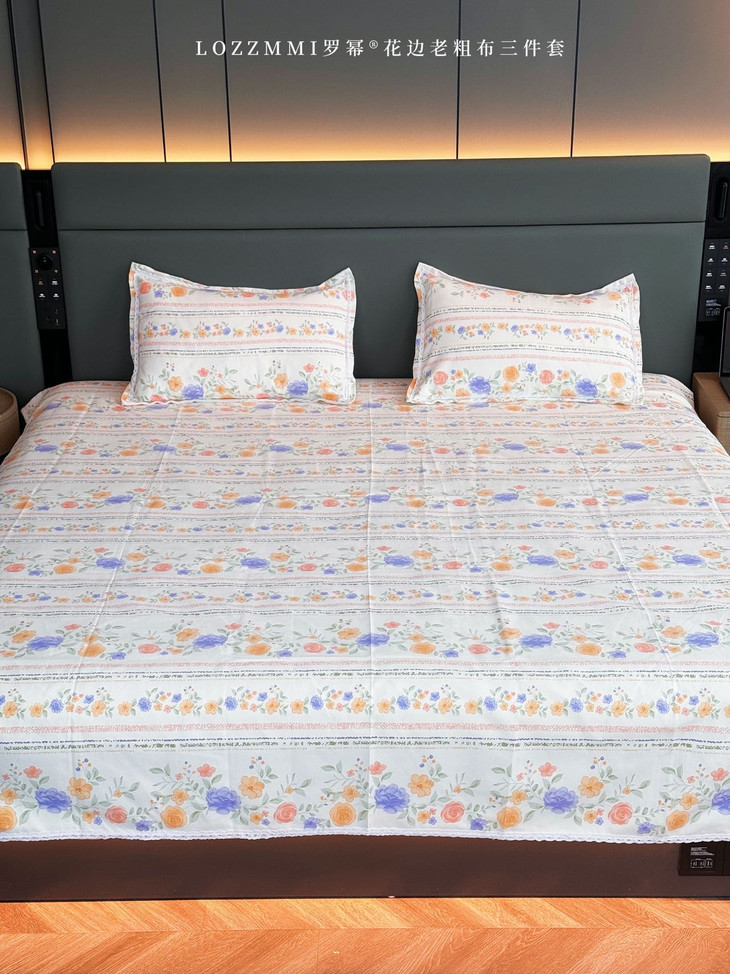 下单详情:LOZZMMI罗幂®花边老粗布三件套 尺寸:凉席:225*245cm 枕套48*74*2 (通用于1.5米/1.8米2.0/米床) 规格:12色可选 萌宠格趣、蓝调条纹、橘语碎花、春日花蔓 粉格温眠、粉樱星点、素雅蕾丝、童趣熊纹 星兔浅蓝、柔粉玫瑰、灰底繁花、米底碎芳
