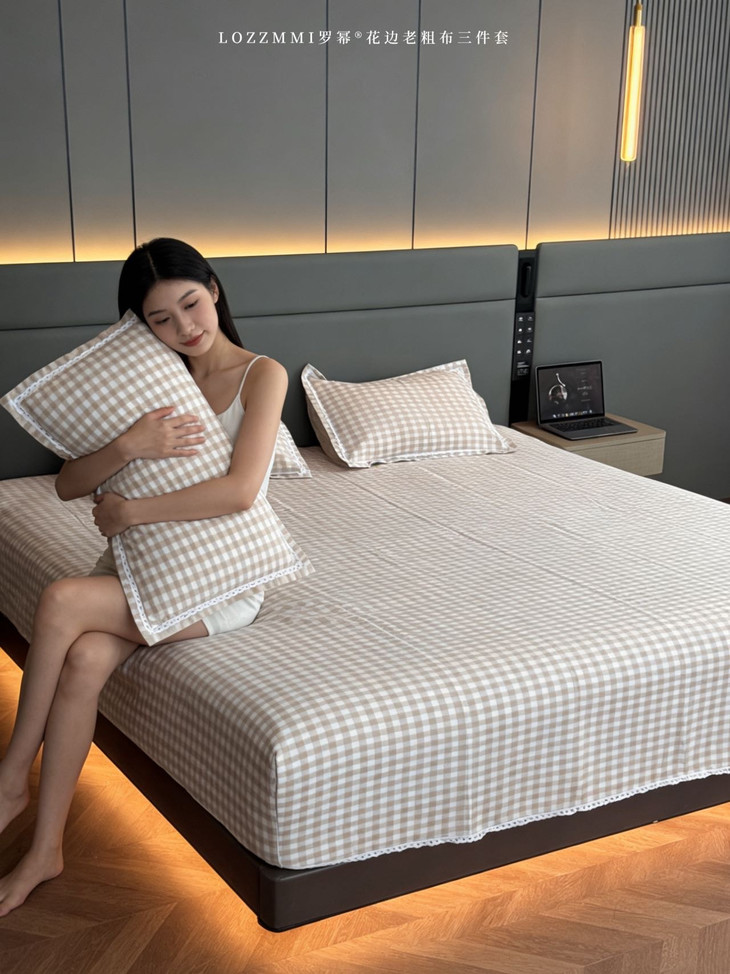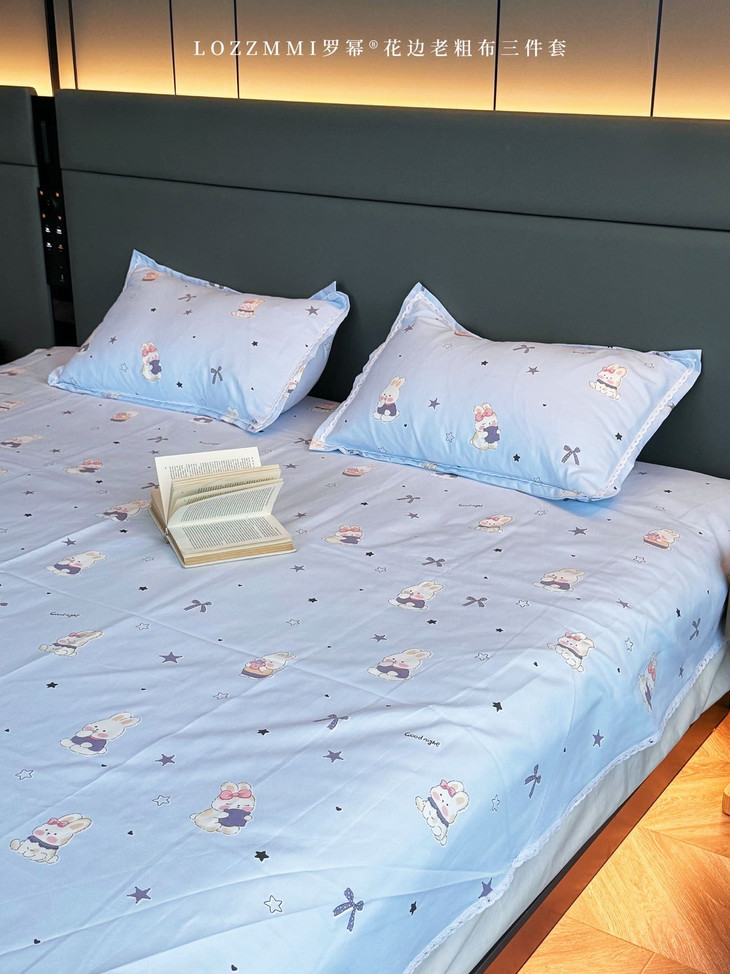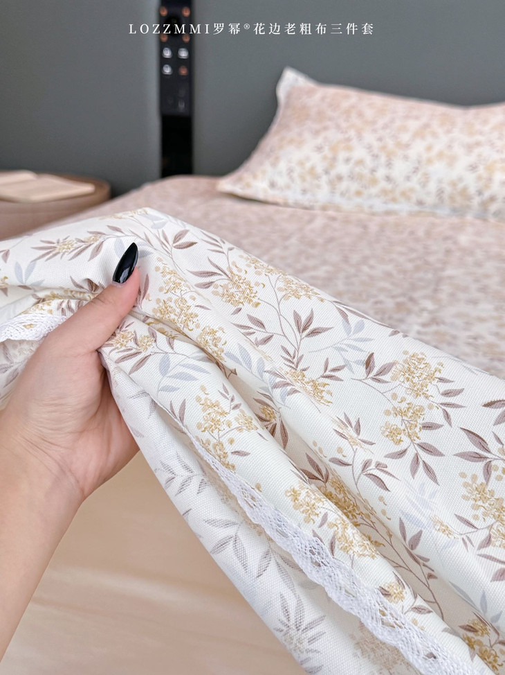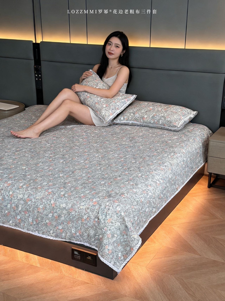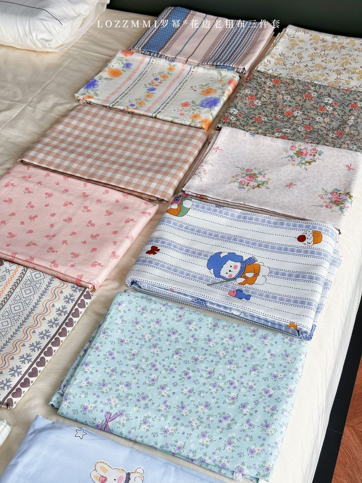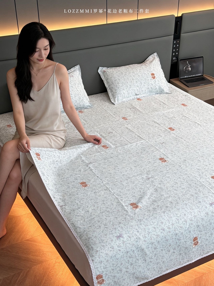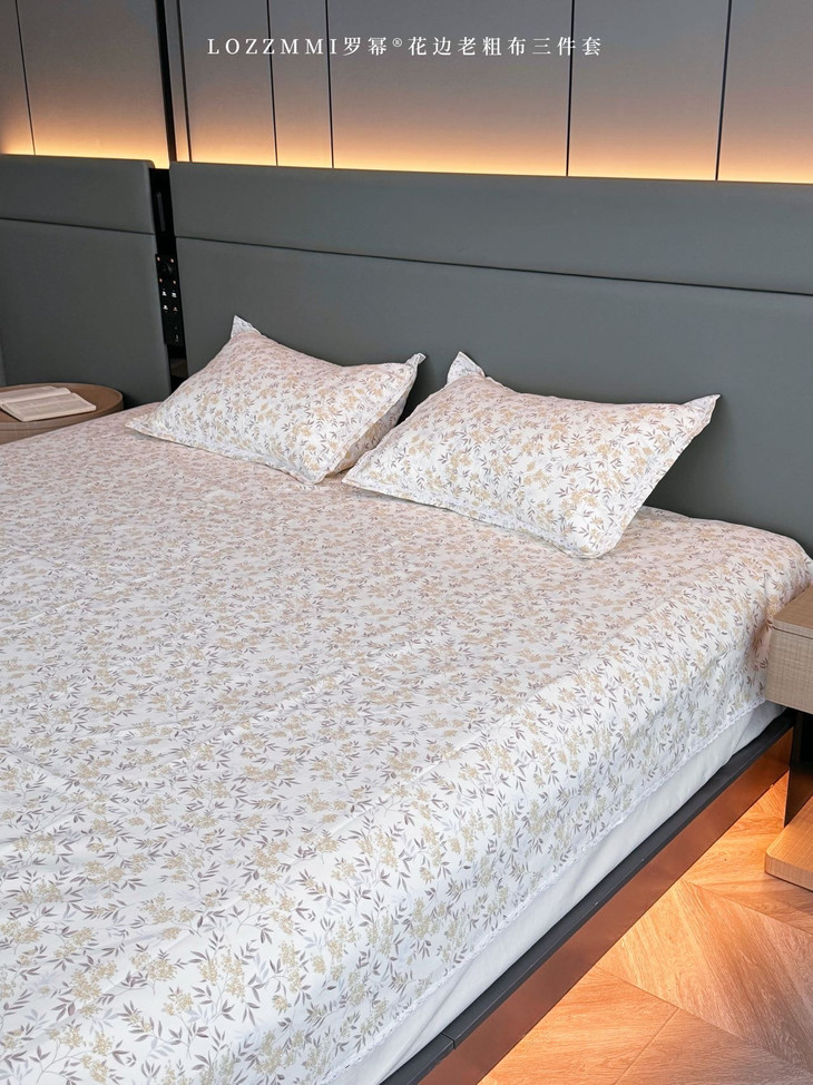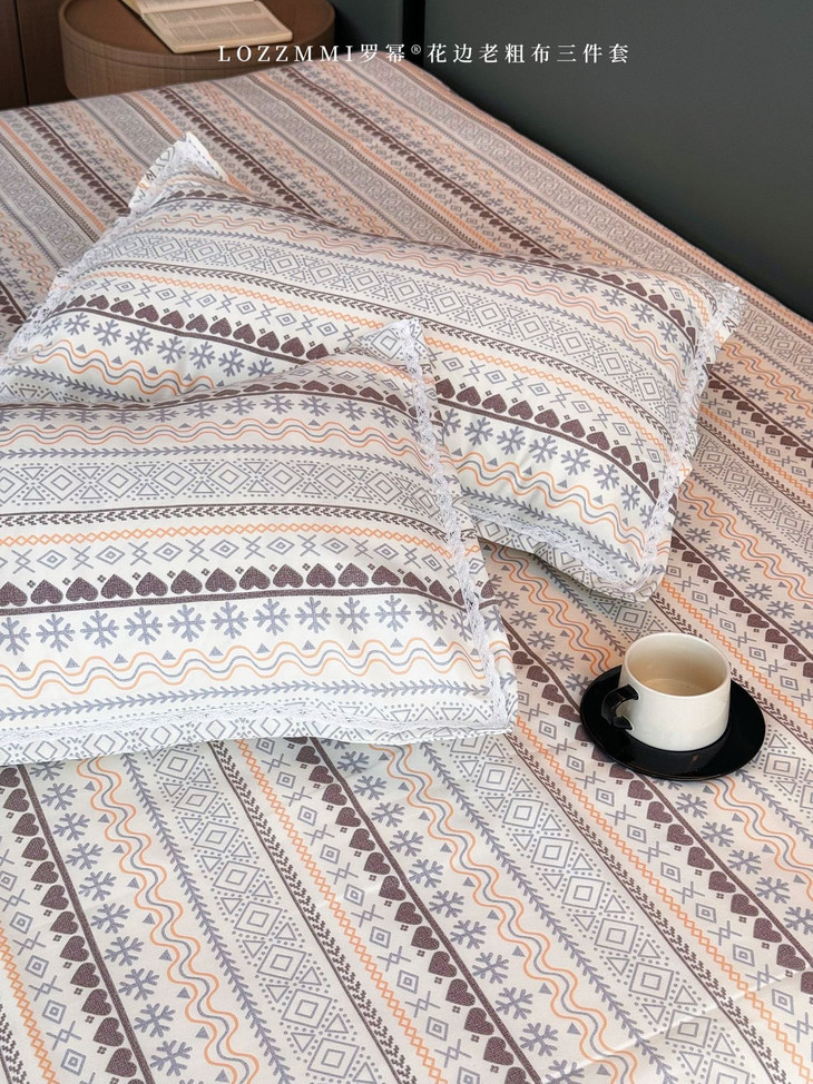 下单详情:LOZZMMI罗幂®花边老粗布三件套 尺寸:凉席:225*245cm 枕套48*74*2 (通用于1.5米/1.8米2.0/米床) 规格:12色可选 萌宠格趣、蓝调条纹、橘语碎花、春日花蔓 粉格温眠、粉樱星点、素雅蕾丝、童趣熊纹 星兔浅蓝、柔粉玫瑰、灰底繁花、米底碎芳