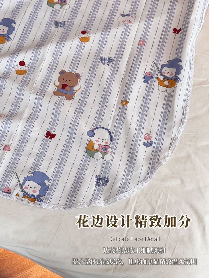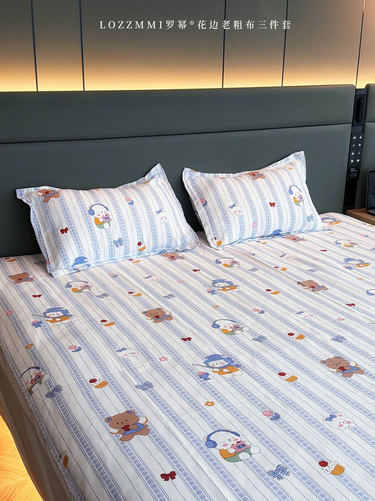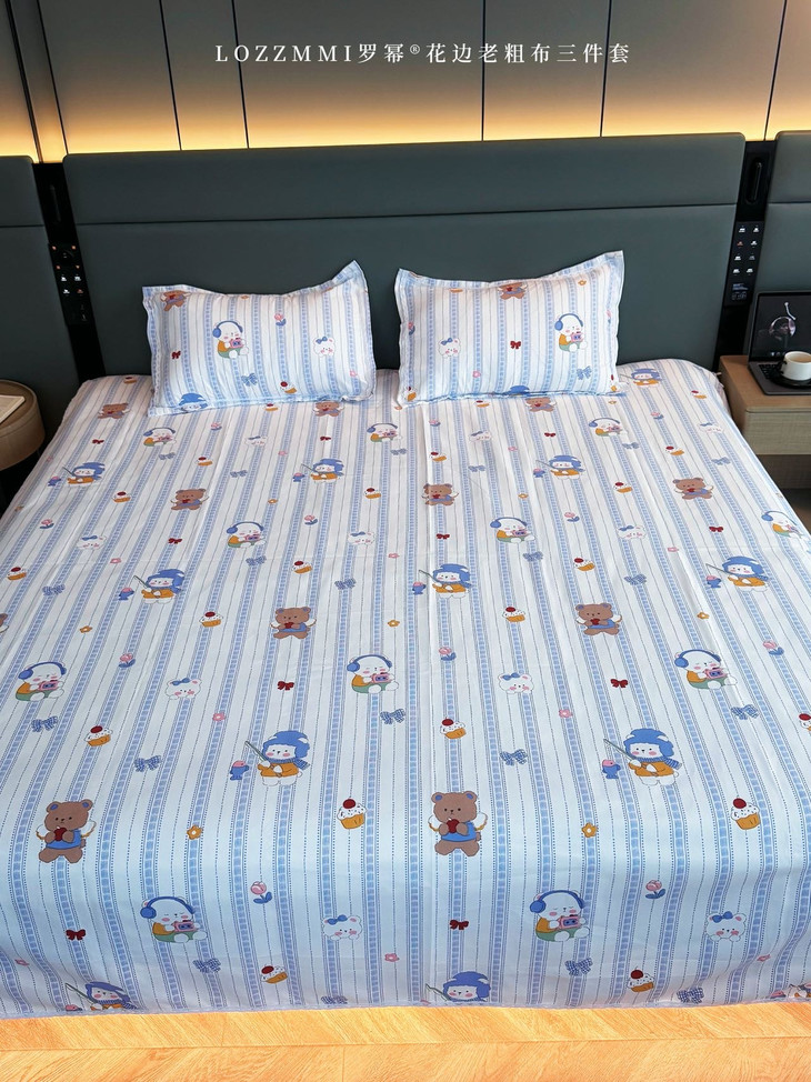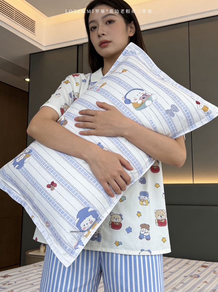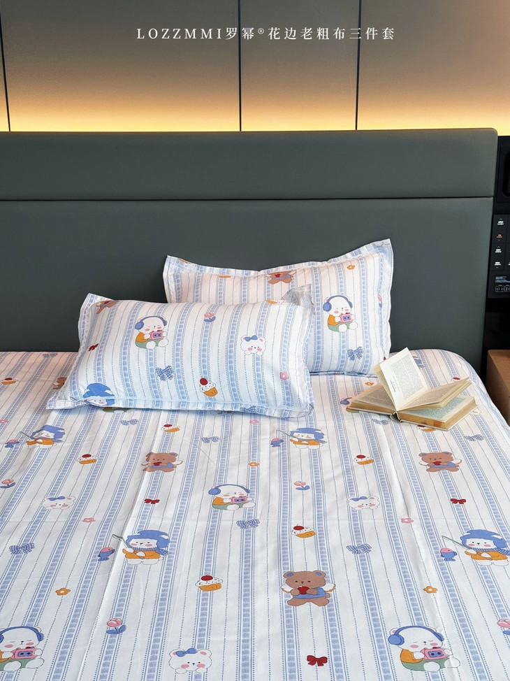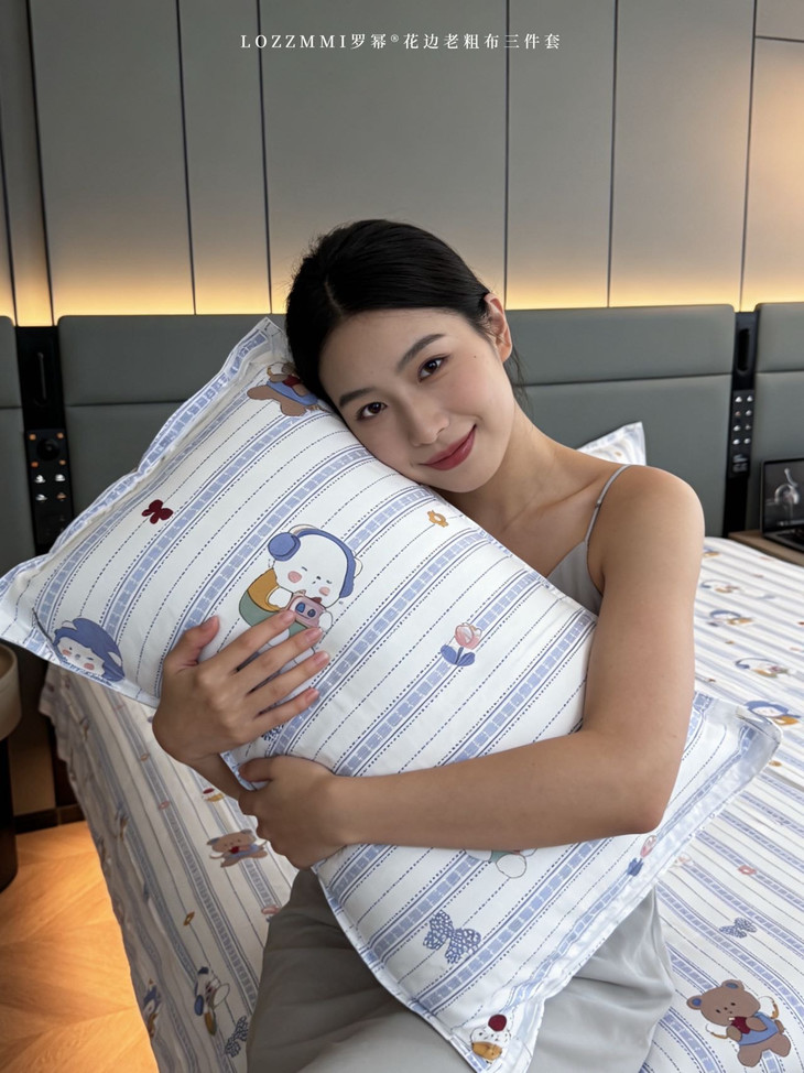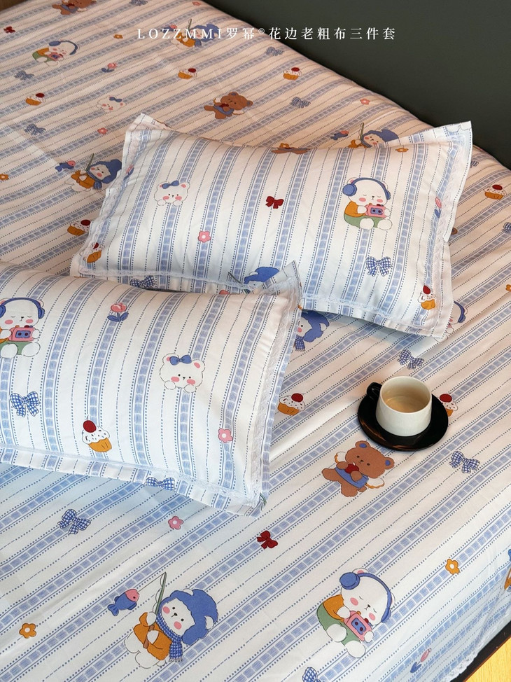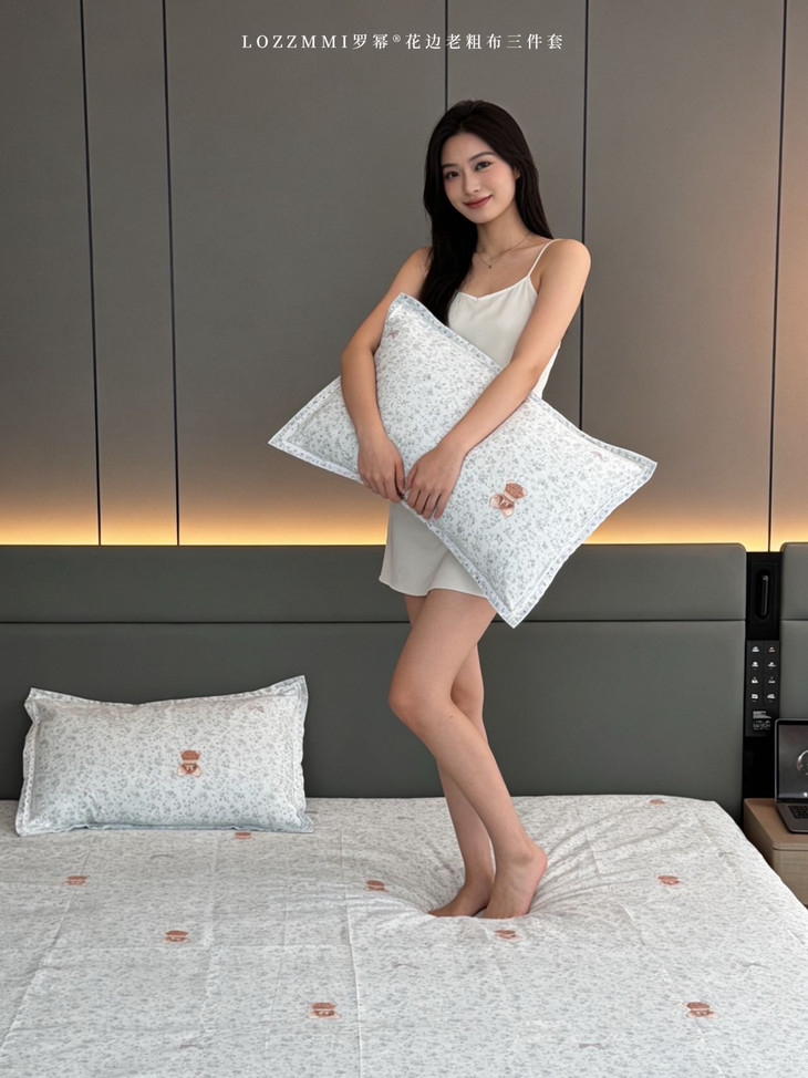 【童趣熊纹】 轻松治愈的生活感 熊纹设计带来轻松氛围,但不过分幼稚 视觉温和自然,适合放松空间使用 老粗布面料透气性强,贴肤不闷 翻身依旧清爽,适合想要轻松睡眠环境的人群