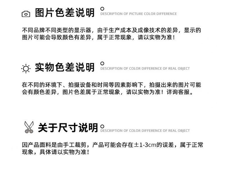 【发货地】浙江 【发货快递】普通快递/随机不指定 【发货时效】下单后2-5天左右发货(爆单顺延3 - 7天) 【加运费区】北京,上海+1 【运费设置】新疆、西藏、港澳台不发,其他地区包邮 【售后标准】 1、吊牌/配件齐全不影响二次销售,包装及主体完整无使用痕迹支持7天无理由退换货; 3、服装针织类务必及时签收验货,切勿水洗,水洗一律不再售后;签收后清仔细检查,质量问题签收起24小时之内产品拍照报售后,超时不予处理望谅解; 4、因显示器,拍摄光线,角度不同存在些许色差,请以收到的实物为准,色差情况属正常情况; 5、服饰类轻微线头,属于正常现象不在售后范围内