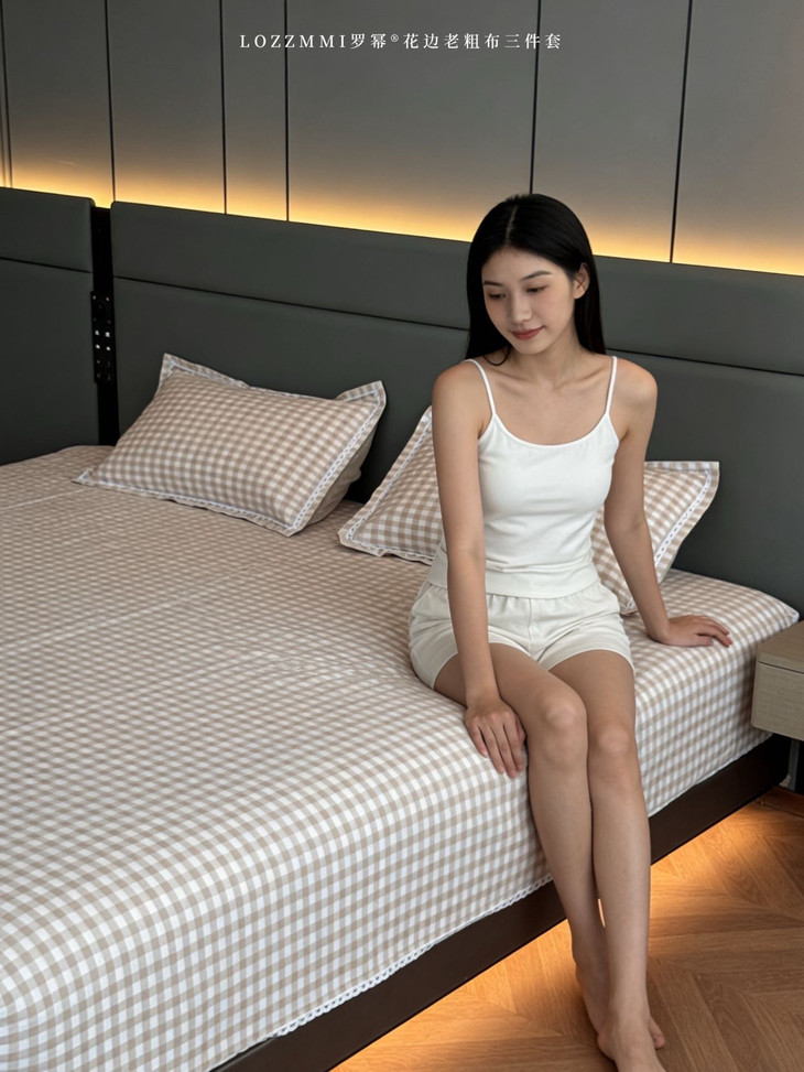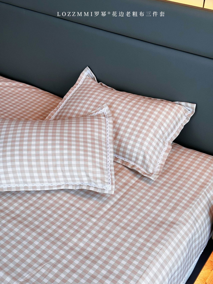 【粉格温眠】 柔软氛围自然释放 粉色格纹细腻均衡,视觉温和不甜腻 老粗布透气结构明显 贴肤干爽不闷,让身体自然放松