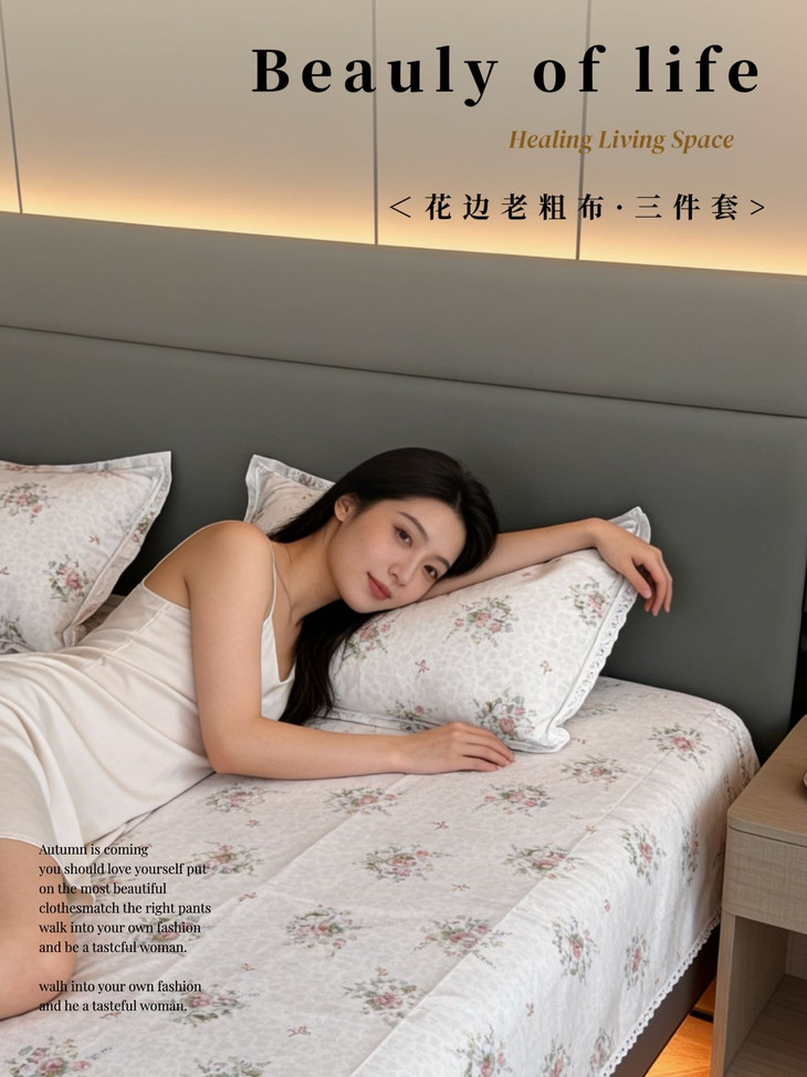 视觉上更精致,铺在床上自带层次感 不会显得廉价,也不会显得刻意少女 是那种轻轻点缀的温柔 配合整体花色设计 形成一种“看起来很干净”的氛围