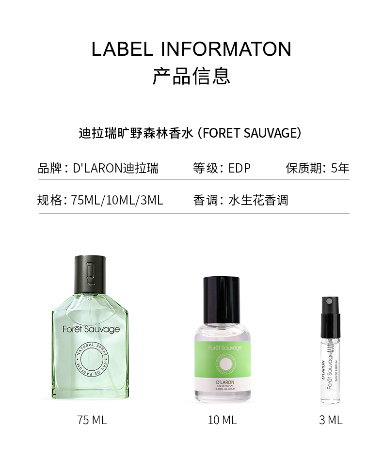 D'LARON迪拉瑞 进口淡香水 持久留香中性香水 旷野森林Foret Sauv