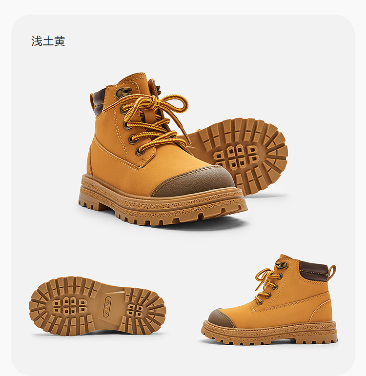巴拉巴拉童鞋儿童马丁靴男童大黄靴秋冬户外防滑拉链靴子撞色潮流