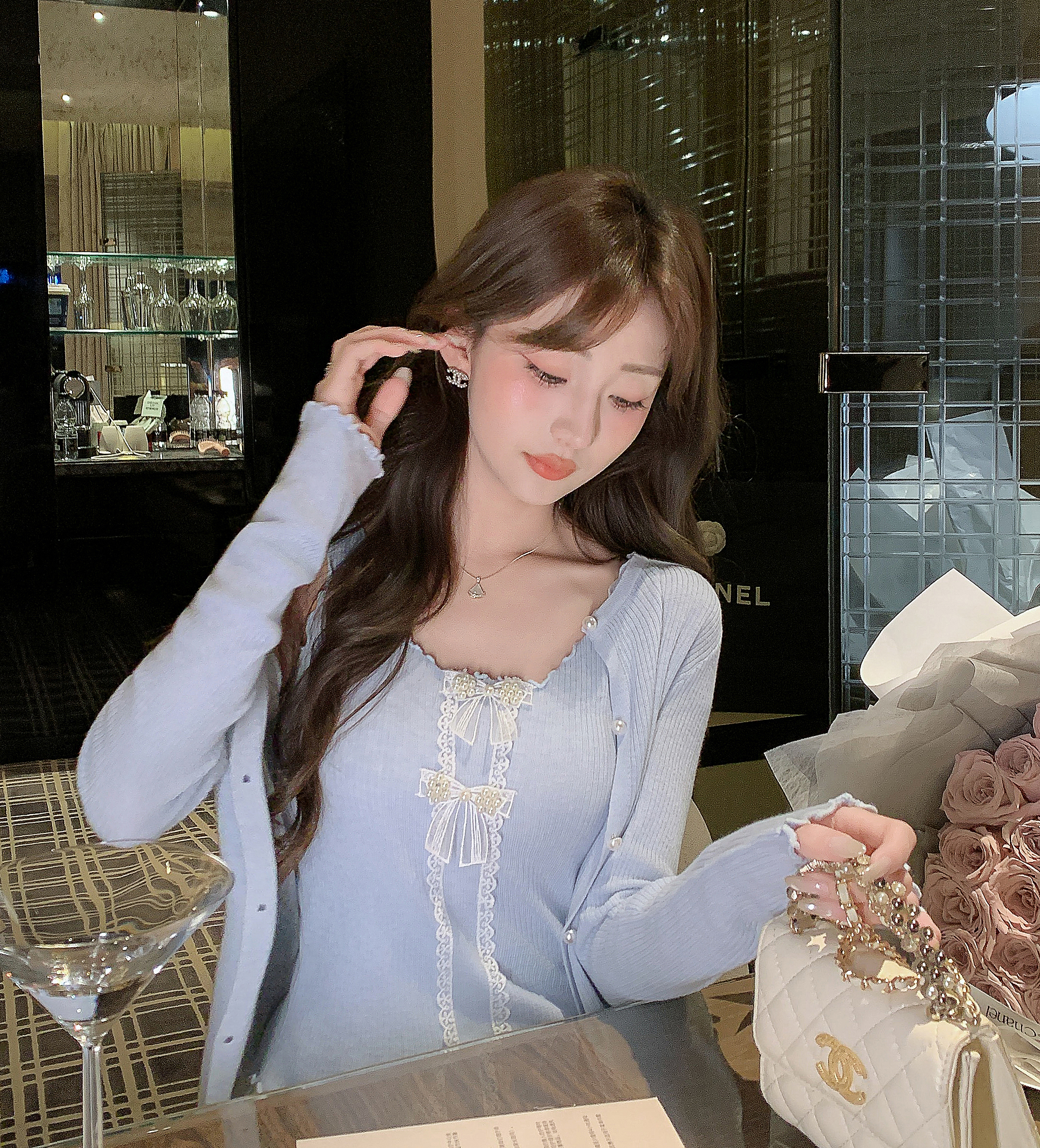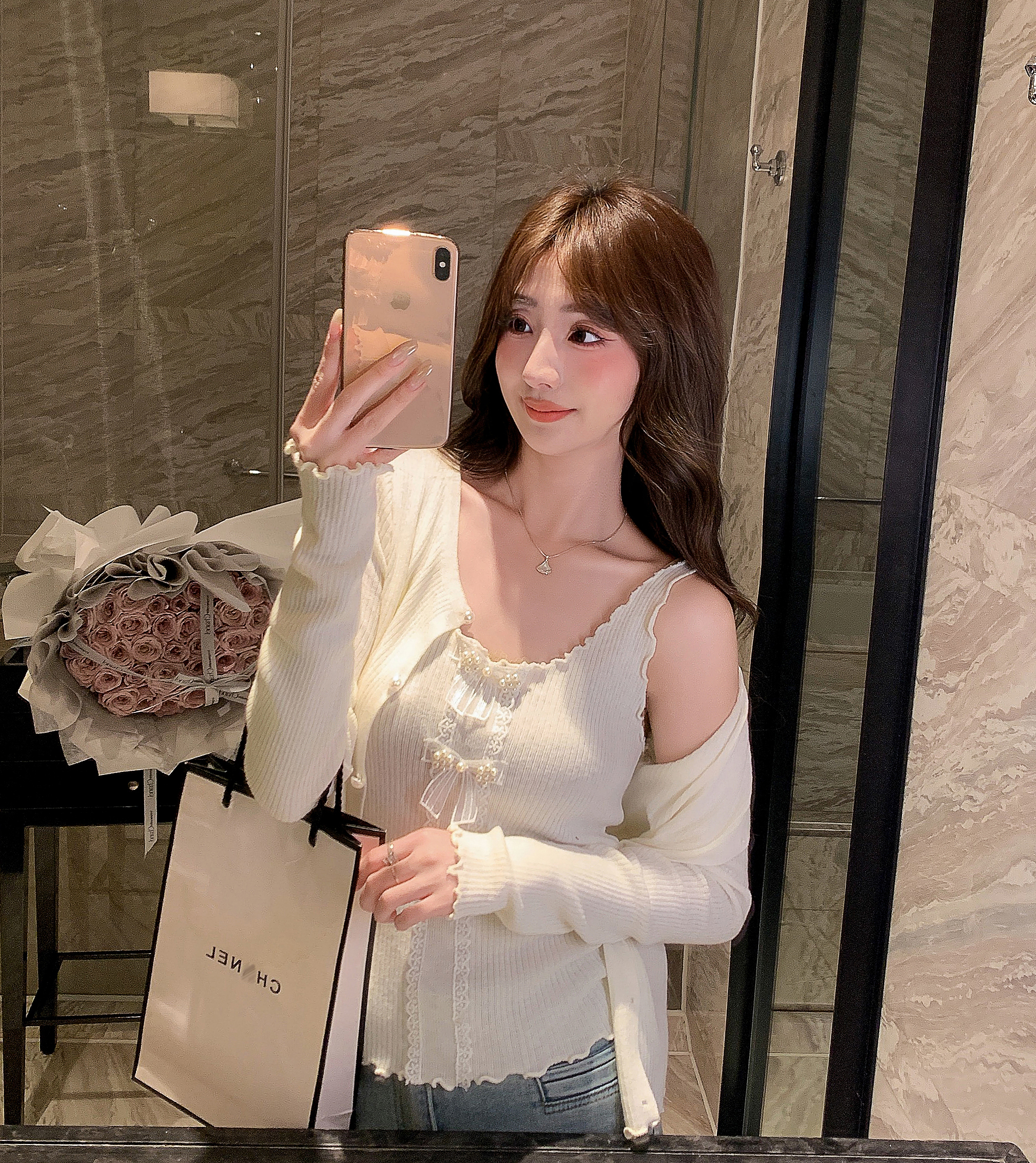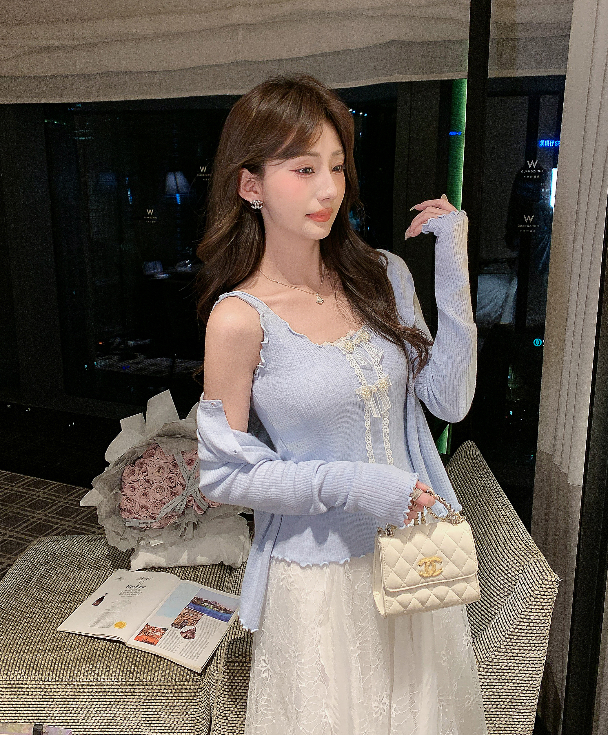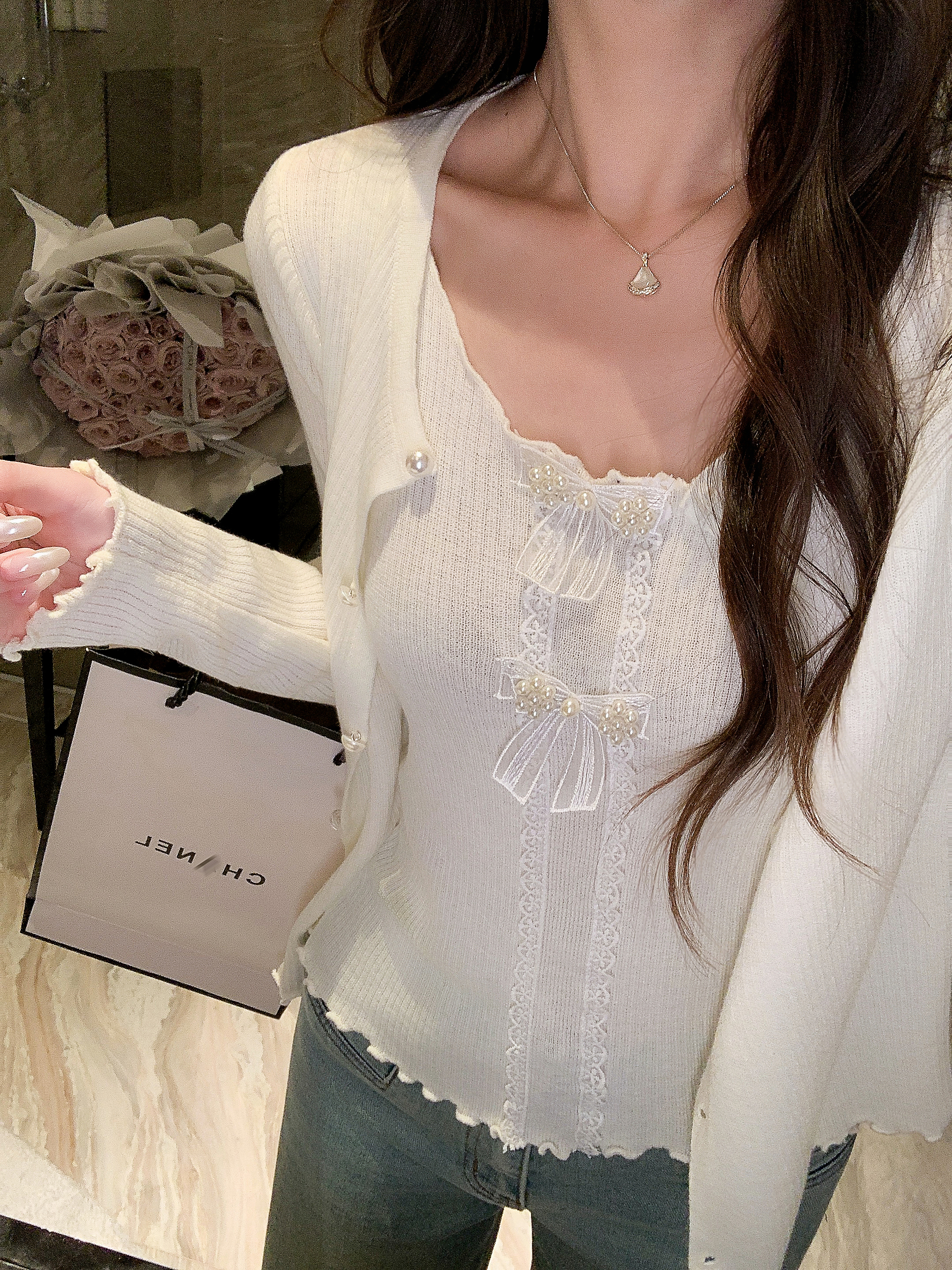 张心子【微甜百利】开衫吊带上衣两件套女春季新款时髦针织套装 U2602073