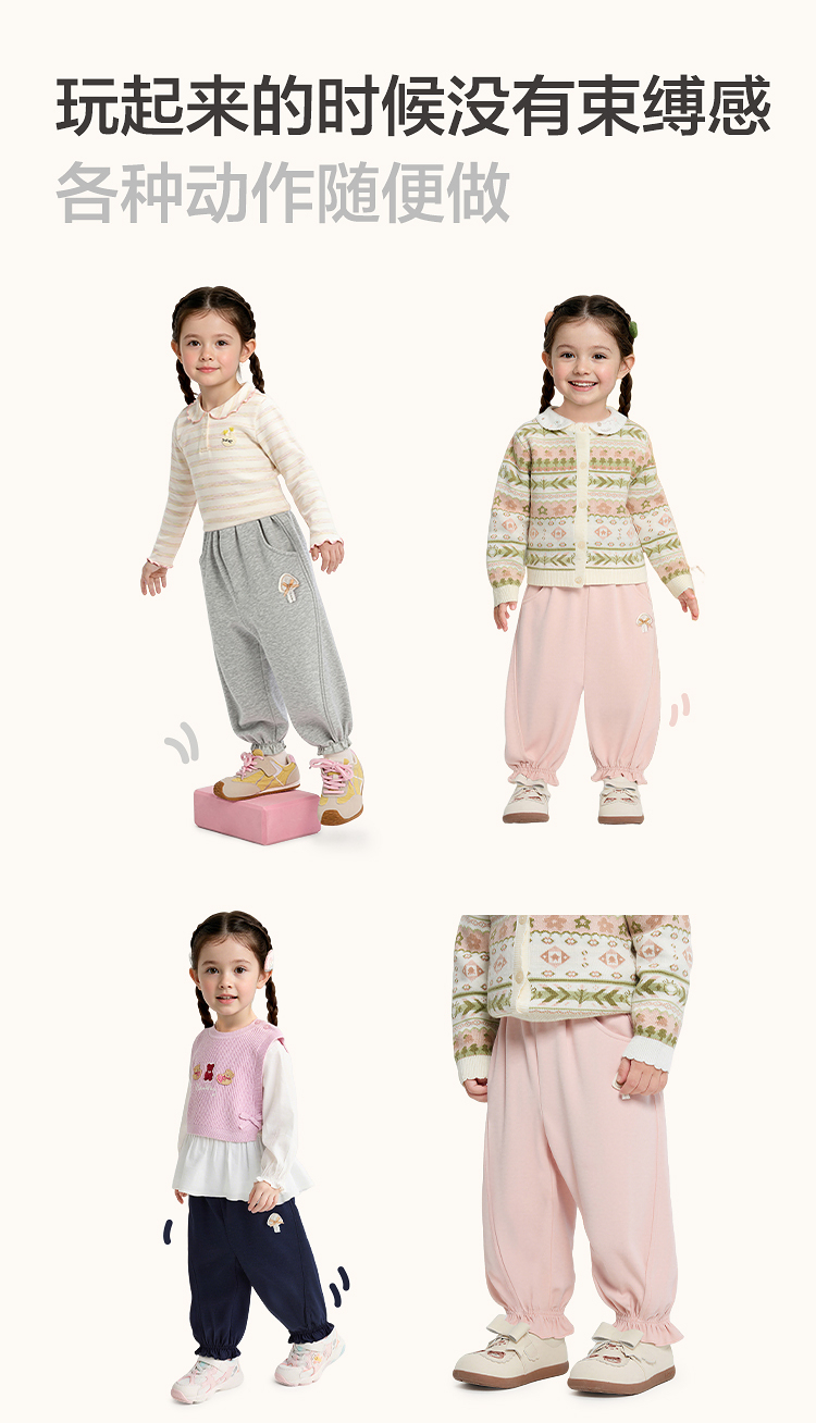 【balaOne】巴拉巴拉童装儿童裤子女童2026新款春秋装运动束脚裤