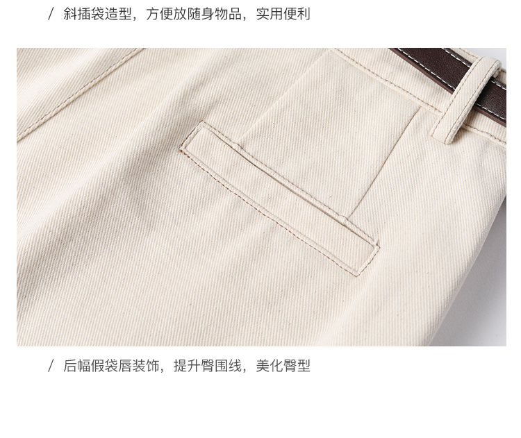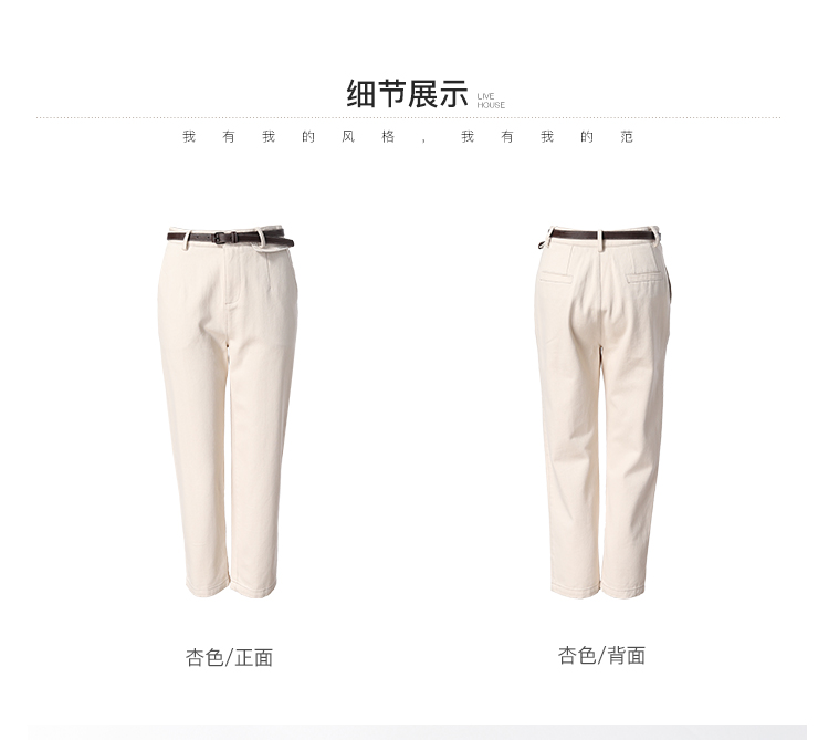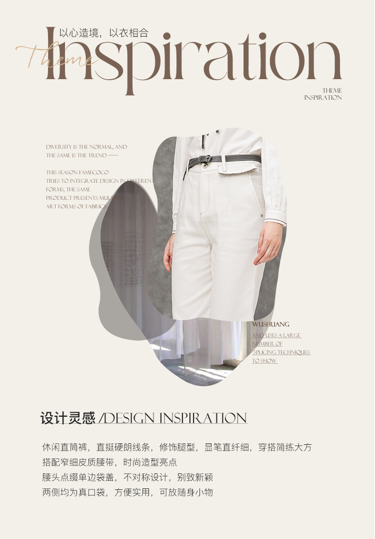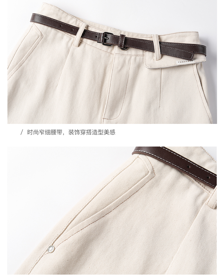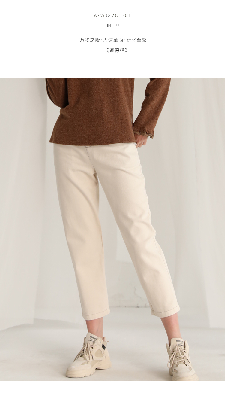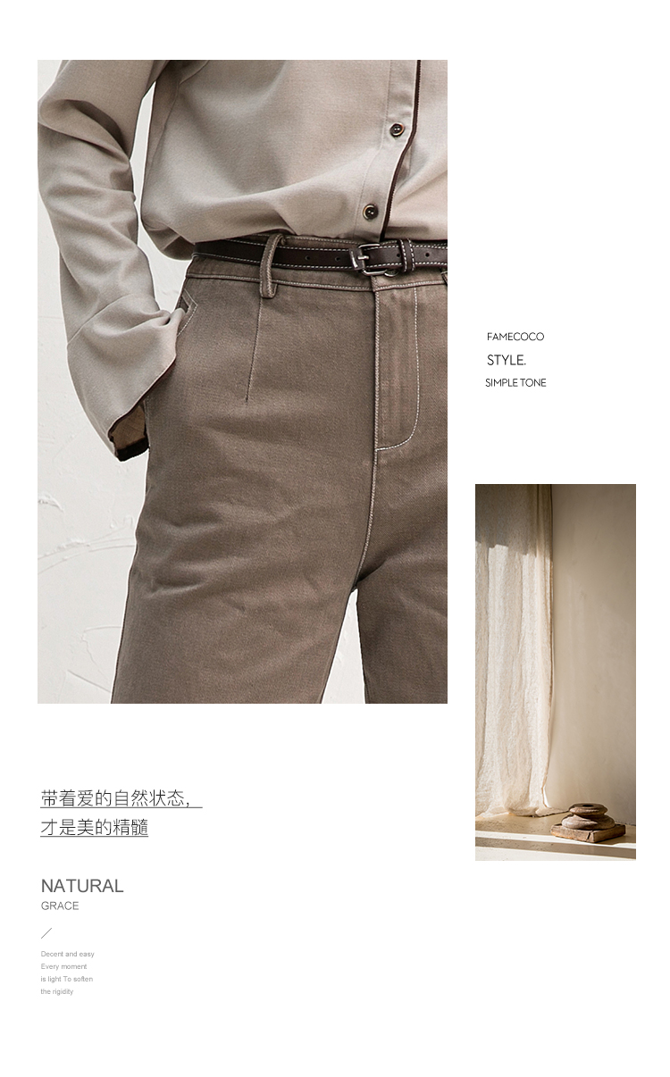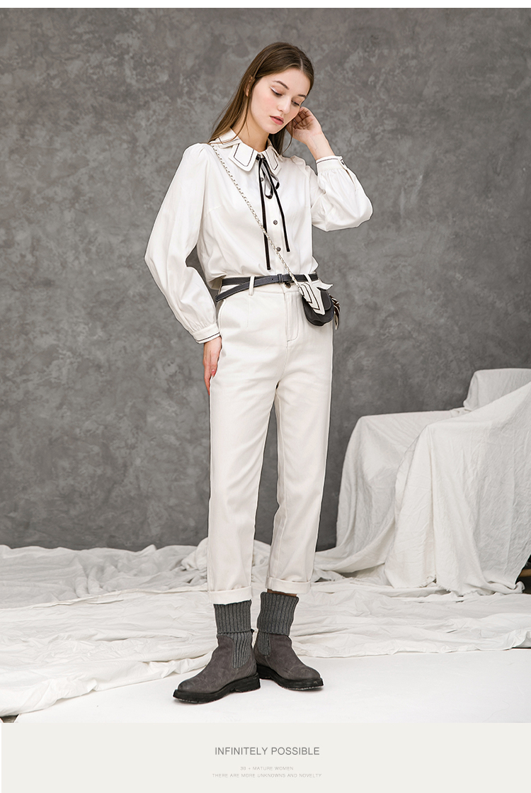Famecoco范可儿休闲裤女秋冬宽松直筒裤子白色纯棉F218GA013
