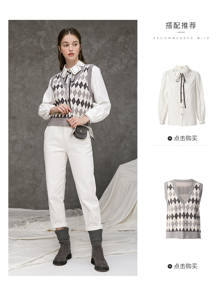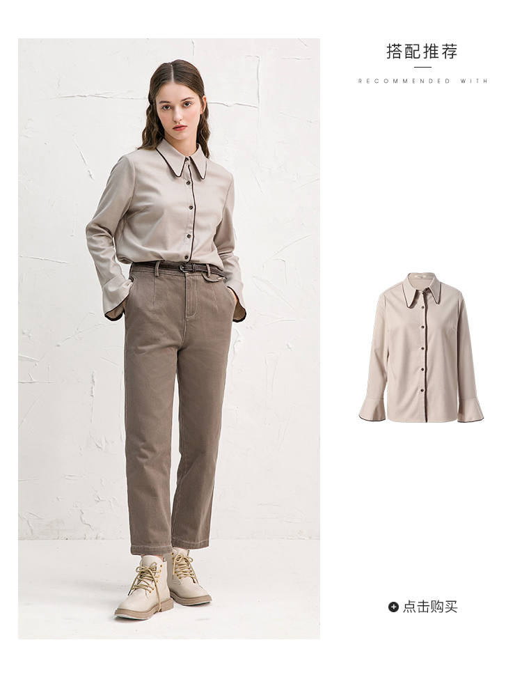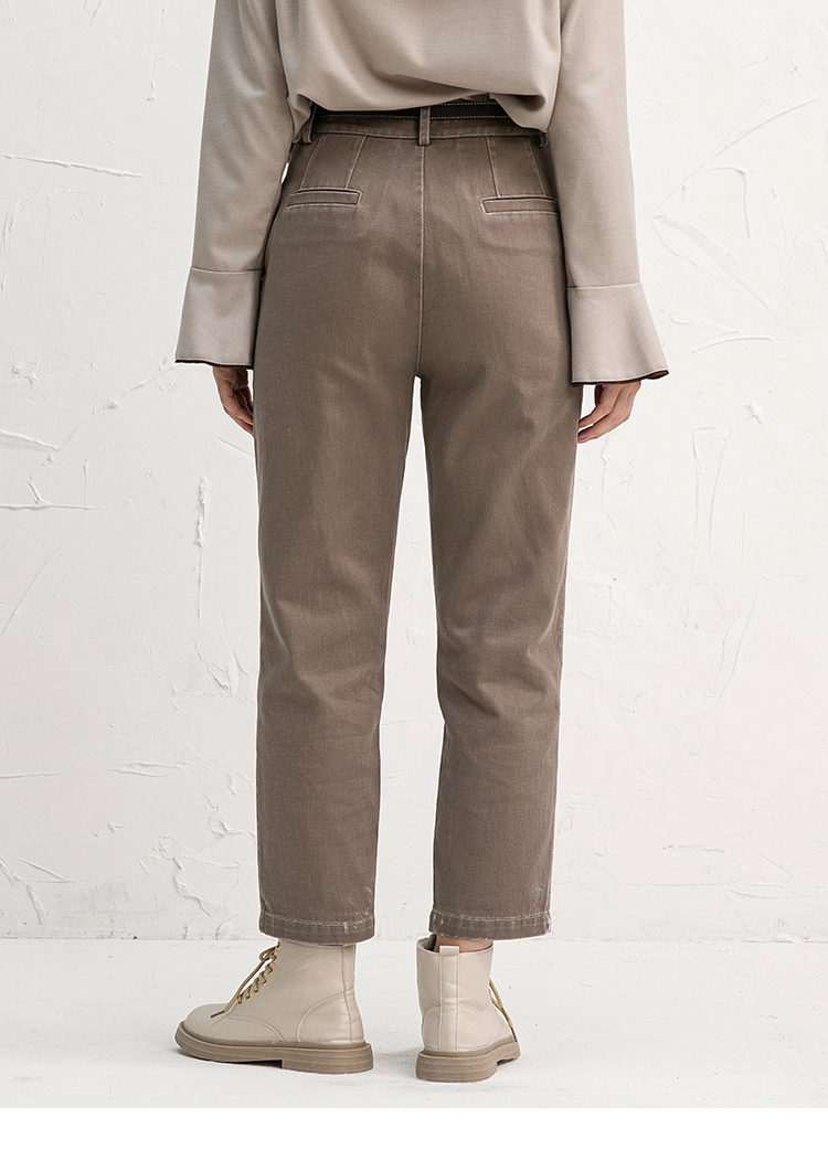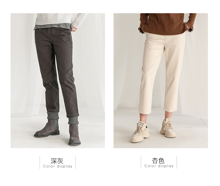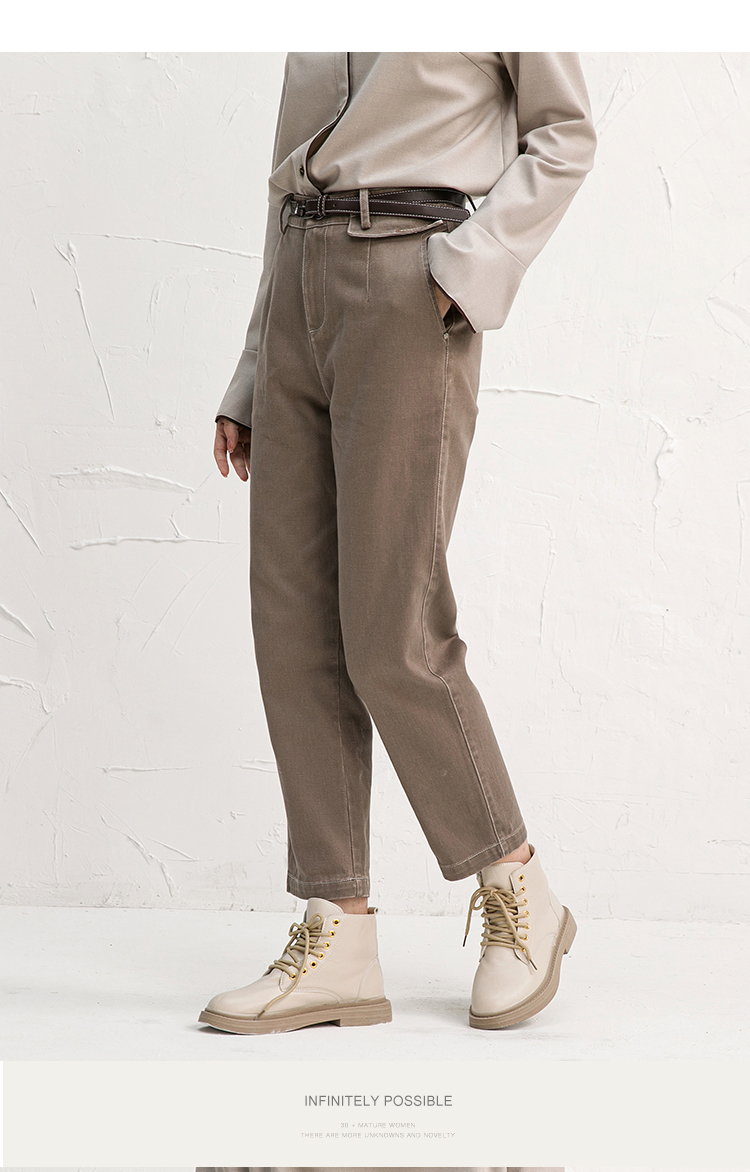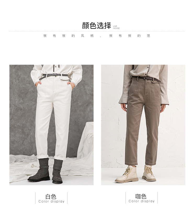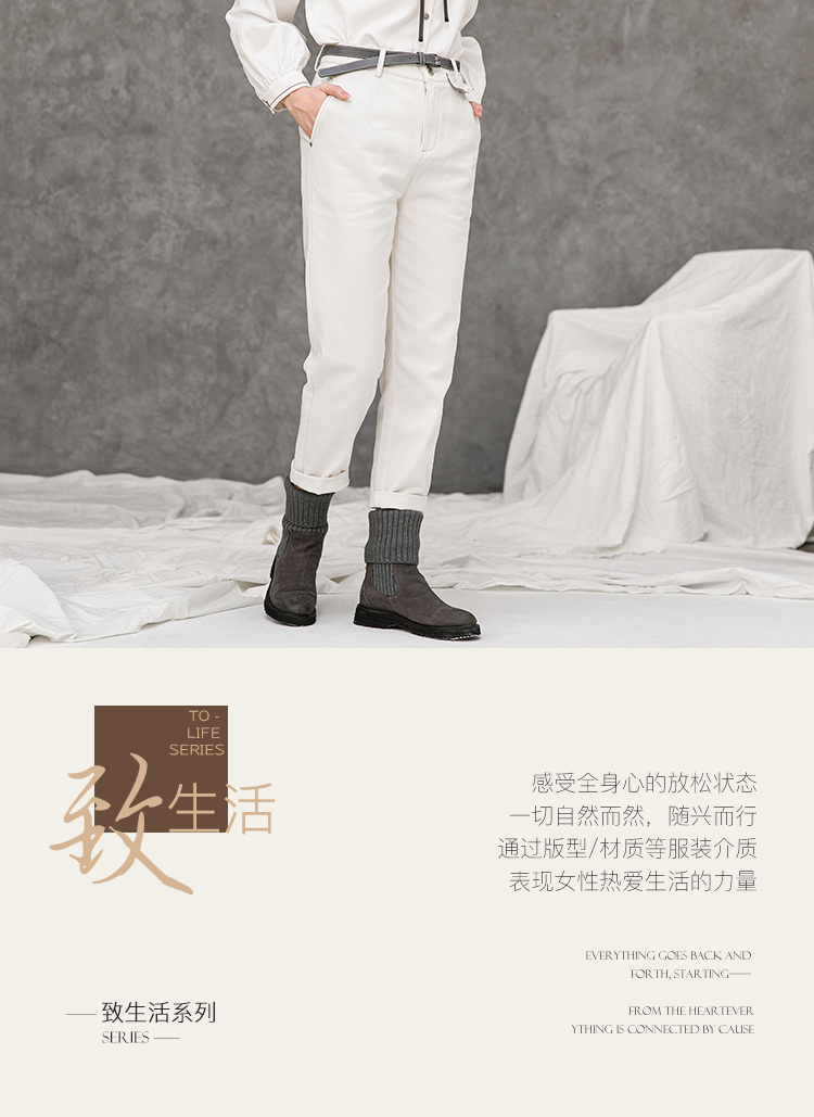 Famecoco范可儿休闲裤女秋冬宽松直筒裤子白色纯棉F218GA013