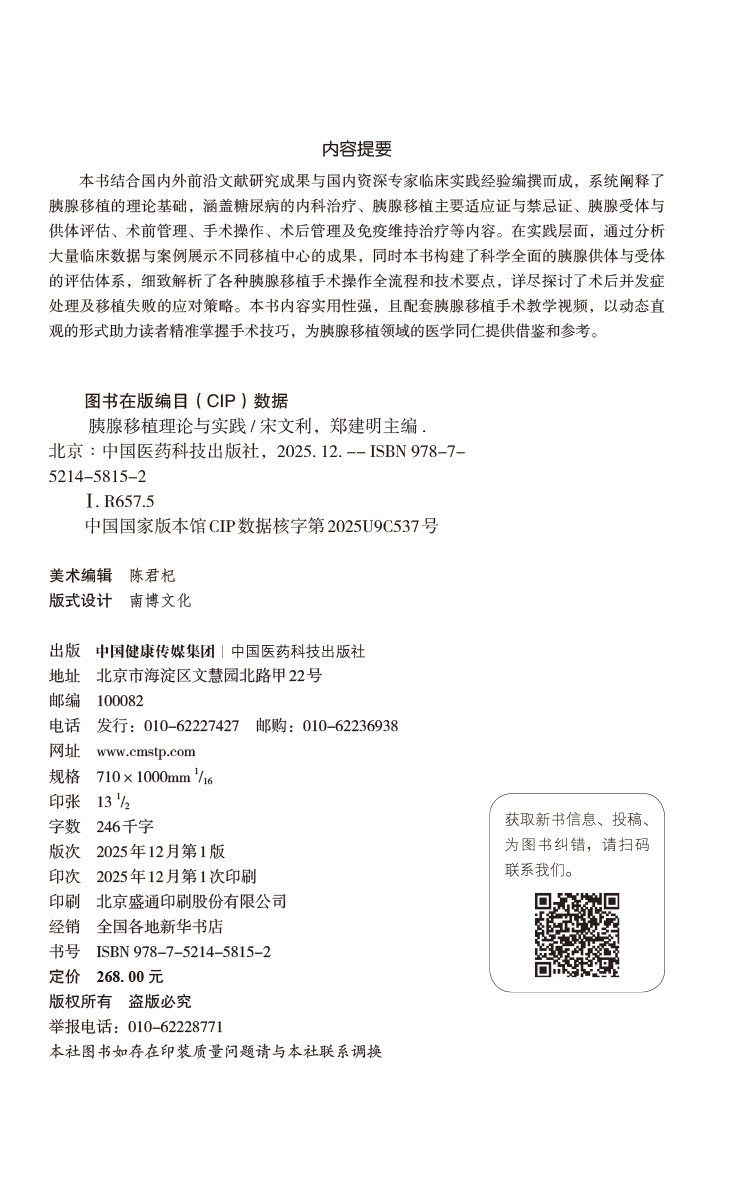书名:胰腺移植理论与实践精装2026版