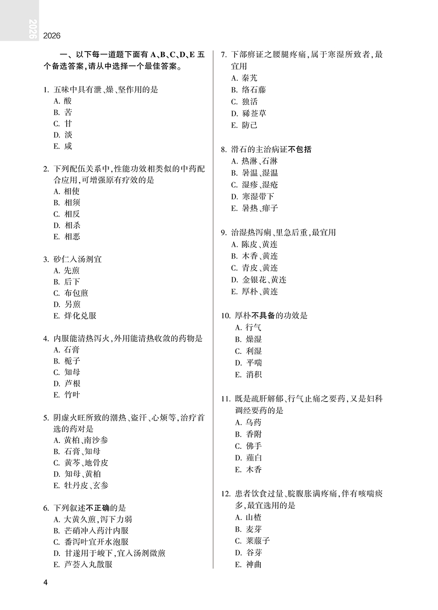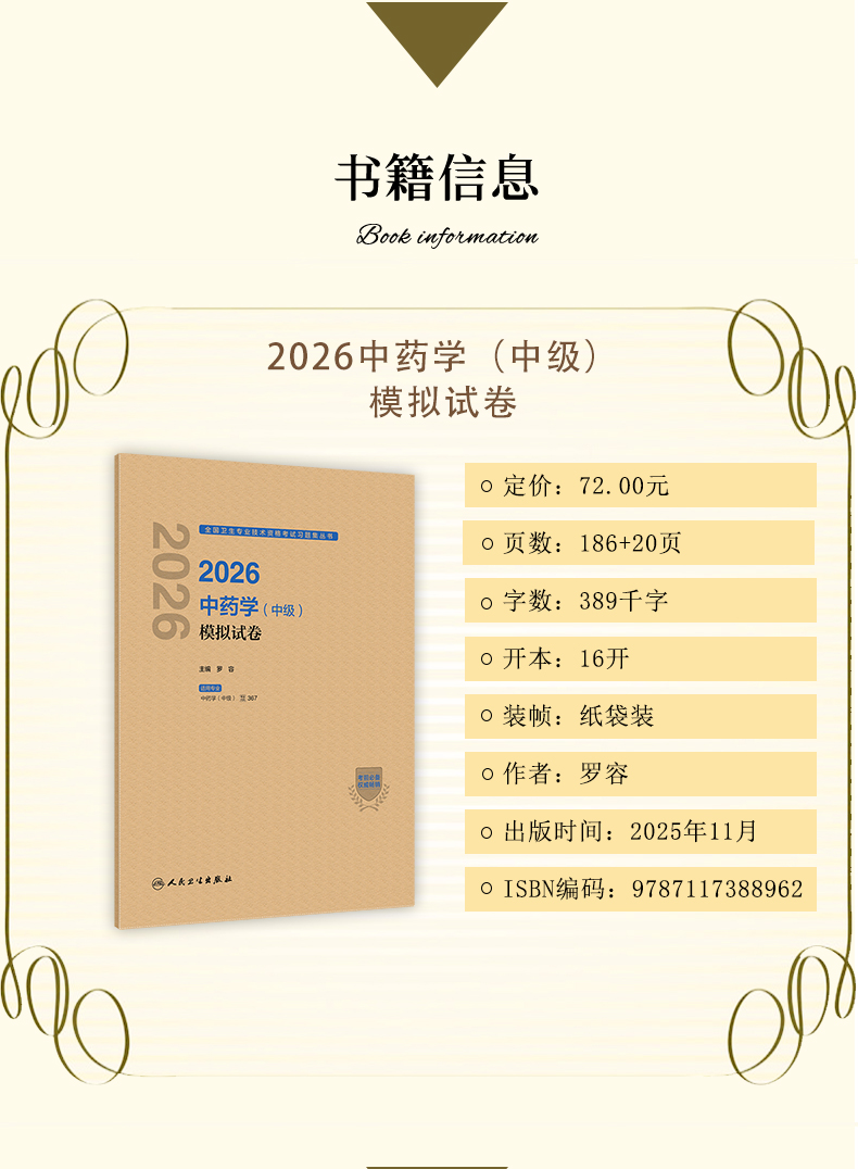 书名:2026中药学(中级)模拟试卷
