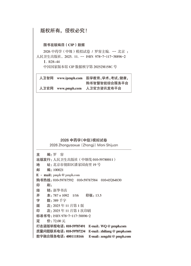 2026中药学(中级)模拟试卷 全国卫生专业技术资格考试习题集丛书 罗容 主编 适用专业中药学(中级)9787117388962人民卫生出版社