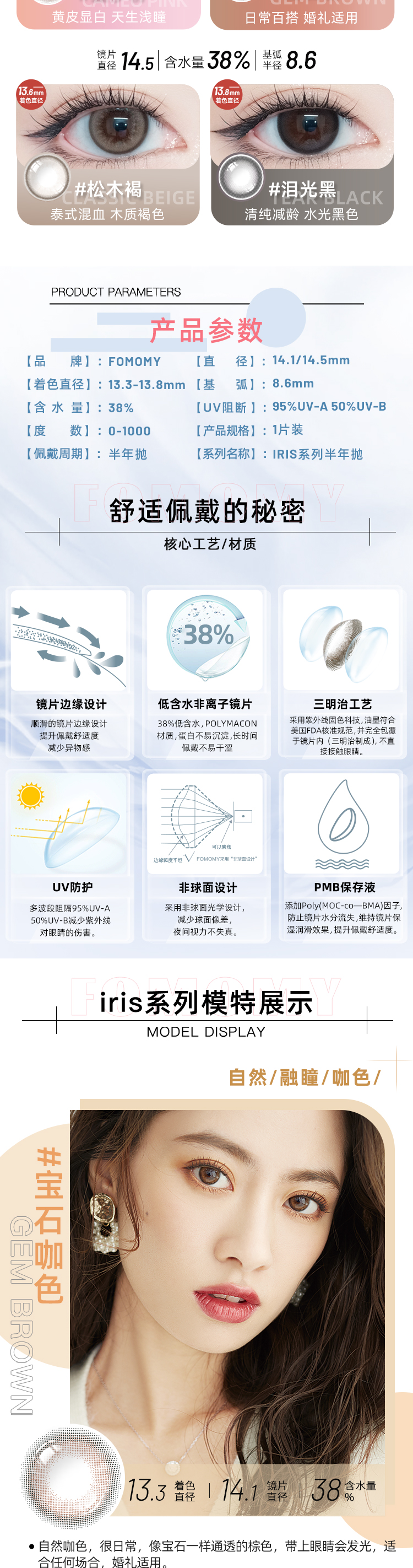 「上海保税仓发货」FOMOMY IRIS系列 美瞳半年抛 1片装