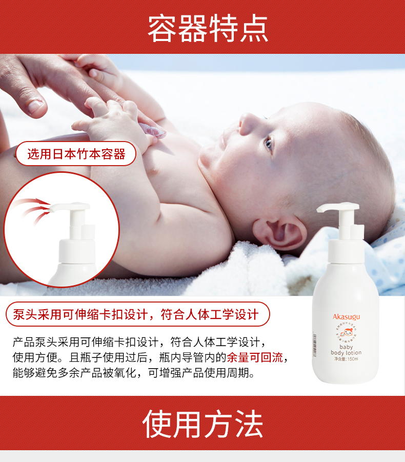 产品泵头采用可伸缩卡扣设计,携带方便。瓶子使用过后,瓶内导管内的余量可回流,能够避免多余产品被氧化,可增强产品使用周期。