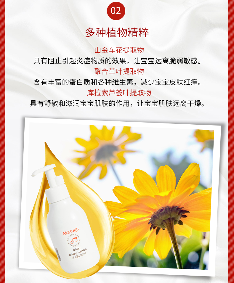 山金车花提取物——具有抑制引起炎症物质效果,让宝宝远离脆弱敏感。