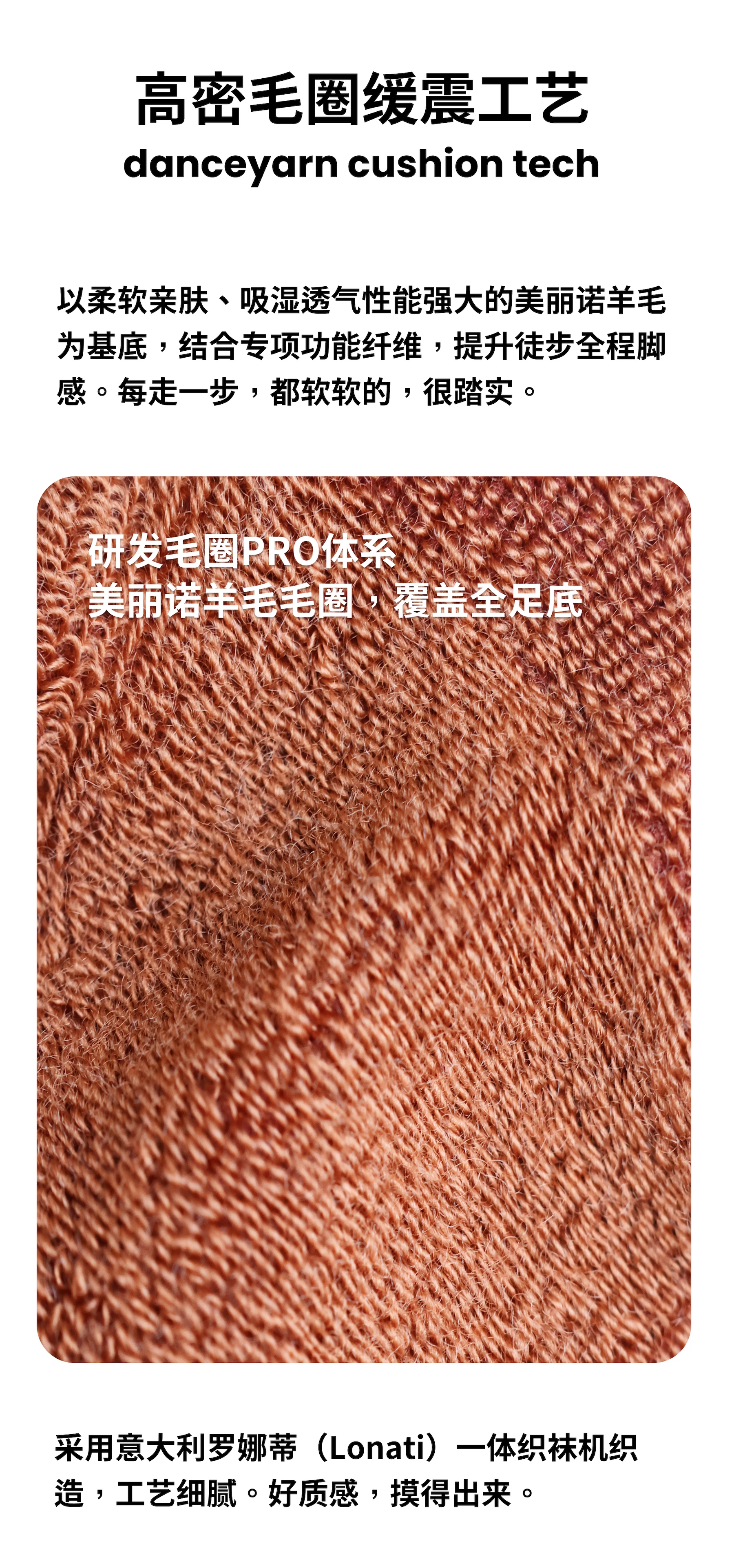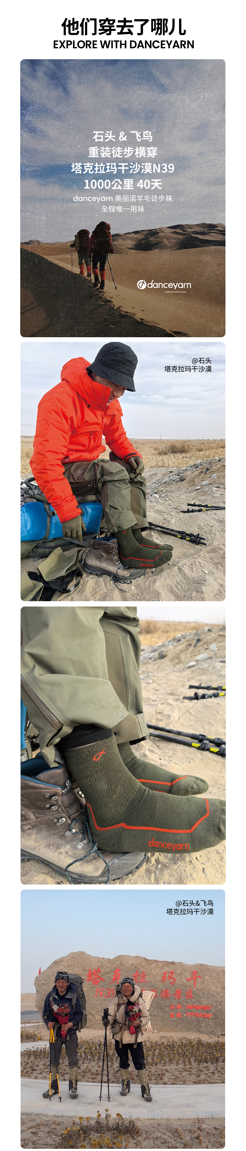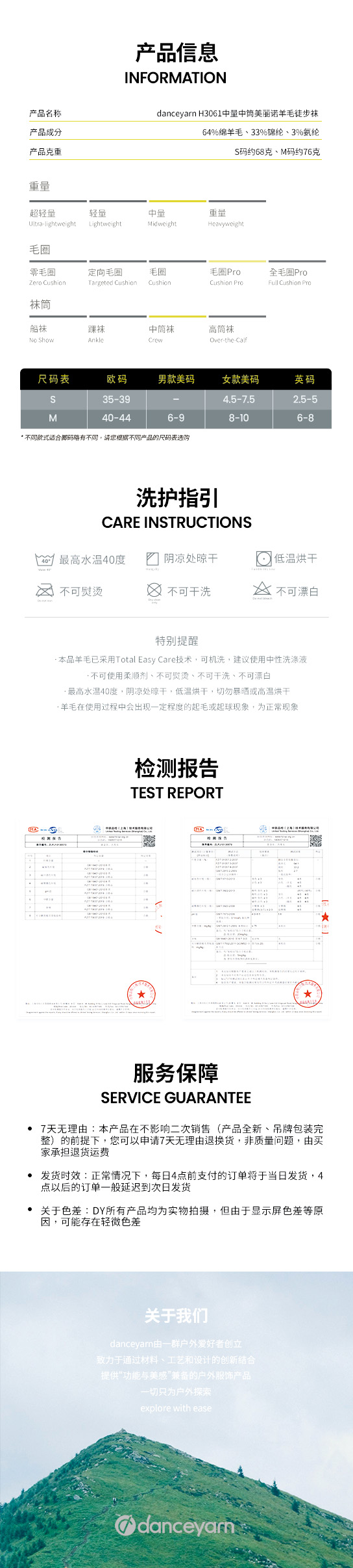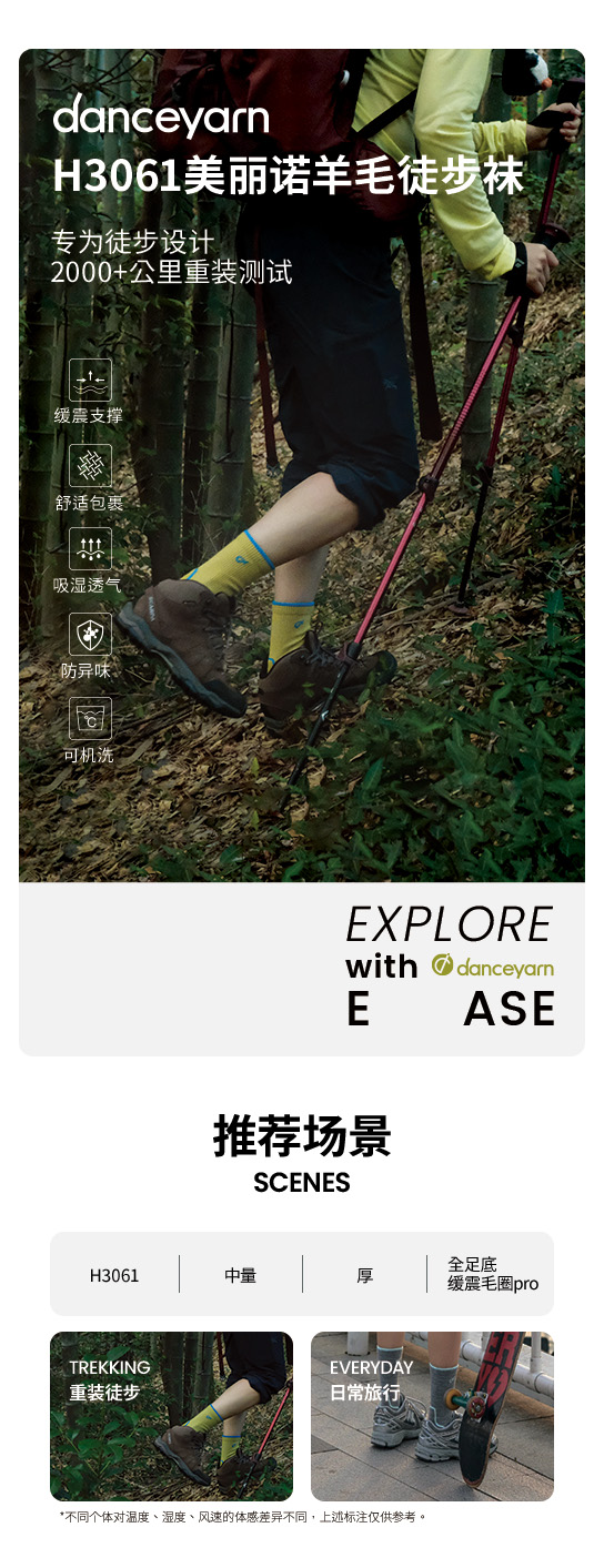 danceyarn 石头同款H3061中量中筒美丽诺羊毛重装徒步袜超强缓震防异味