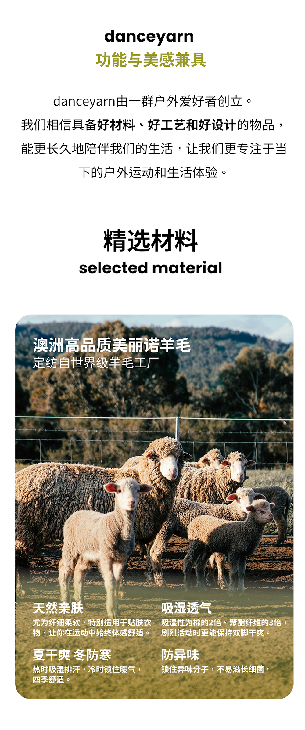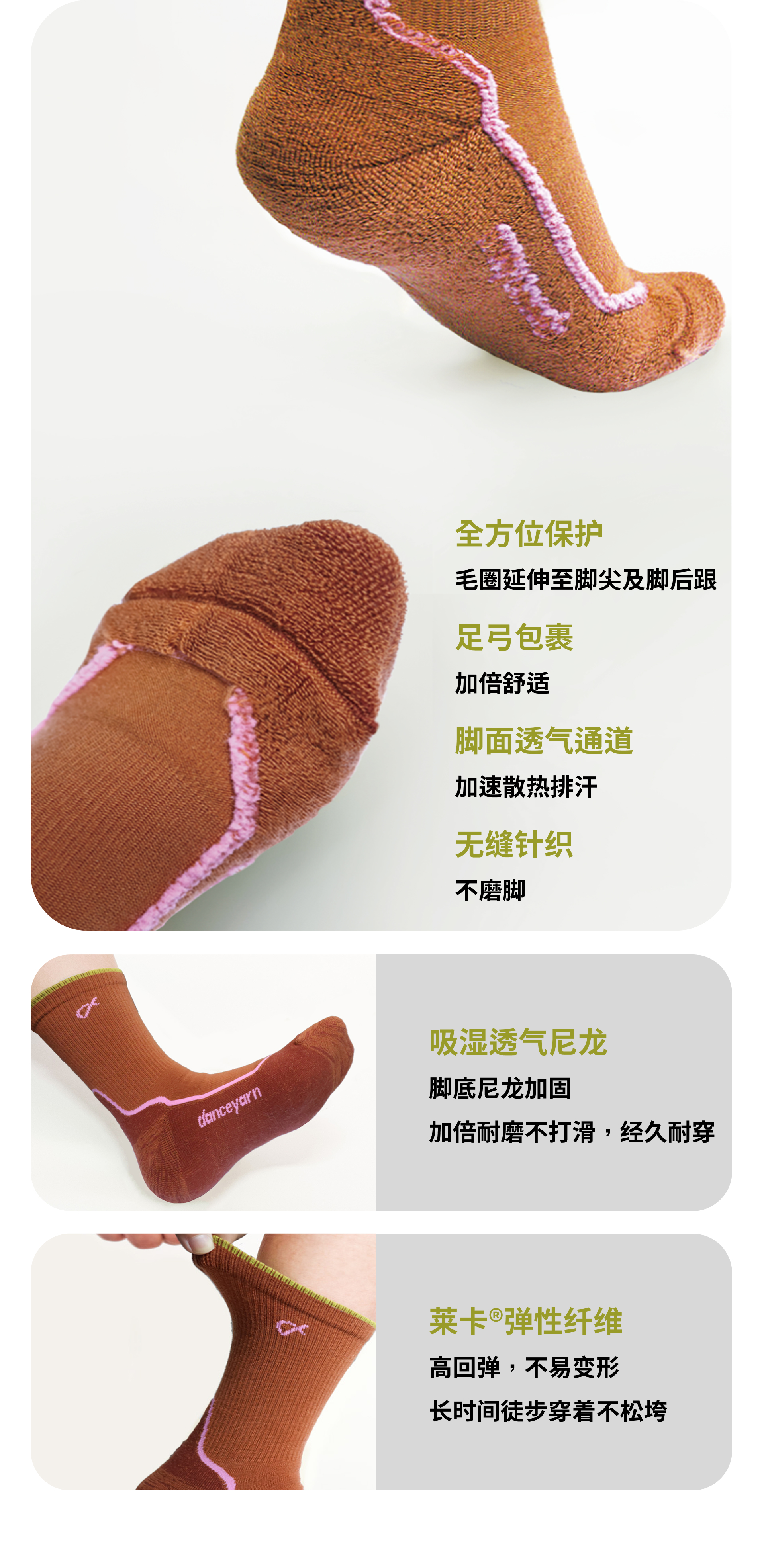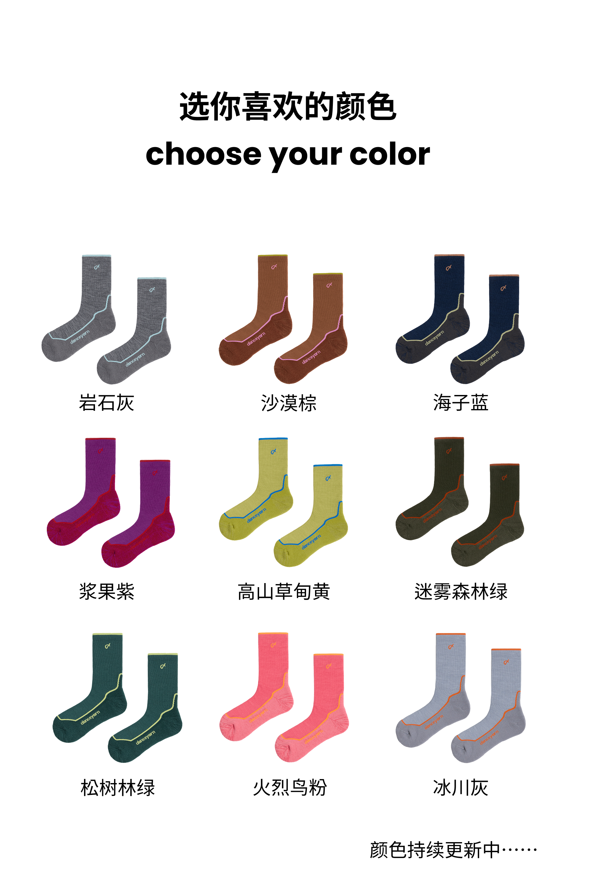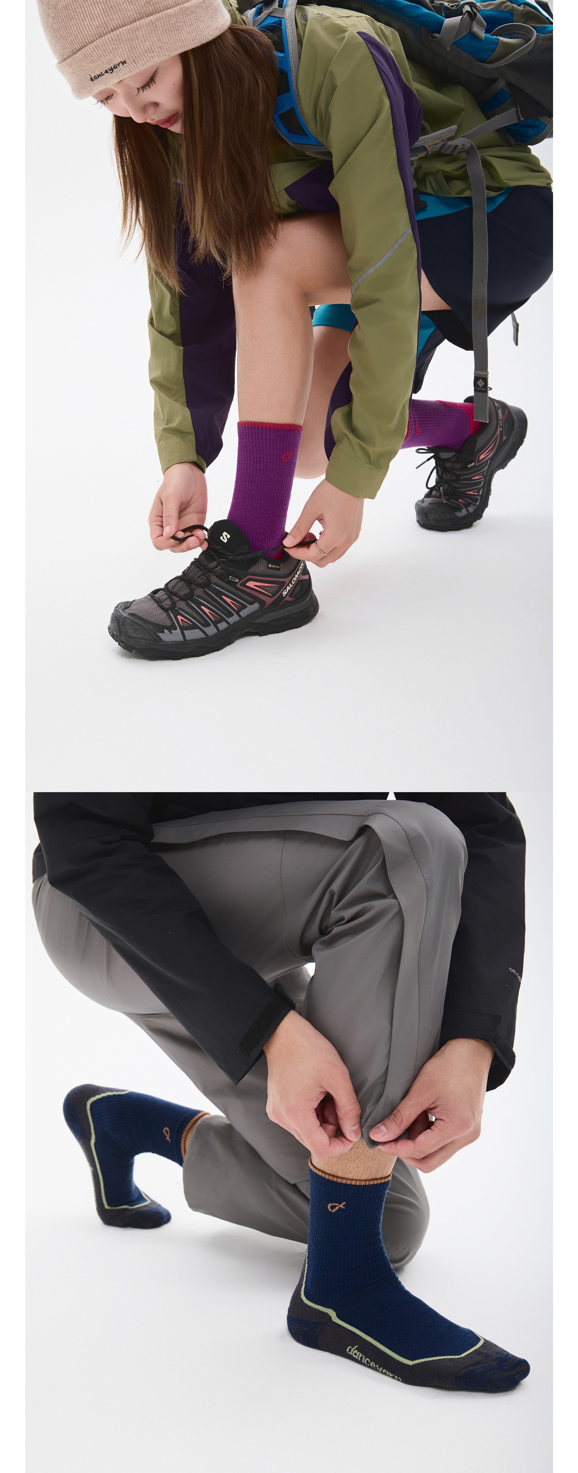 danceyarn 石头同款H3061中量中筒美丽诺羊毛重装徒步袜超强缓震防异味