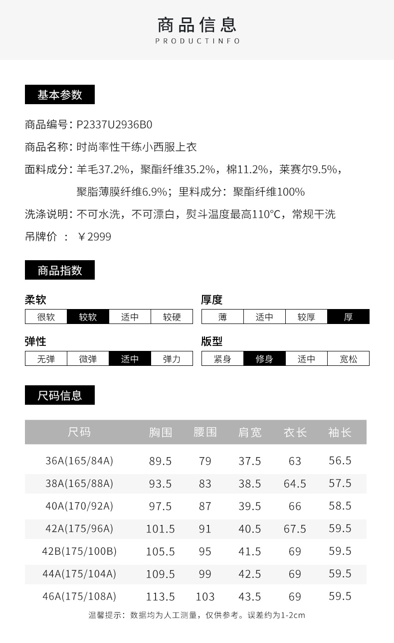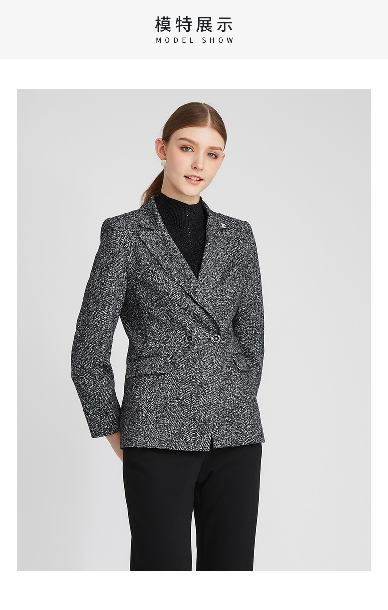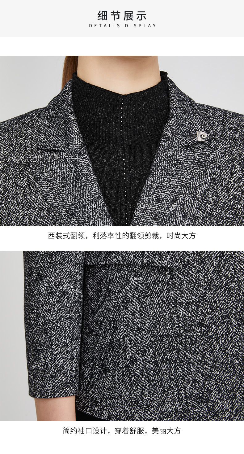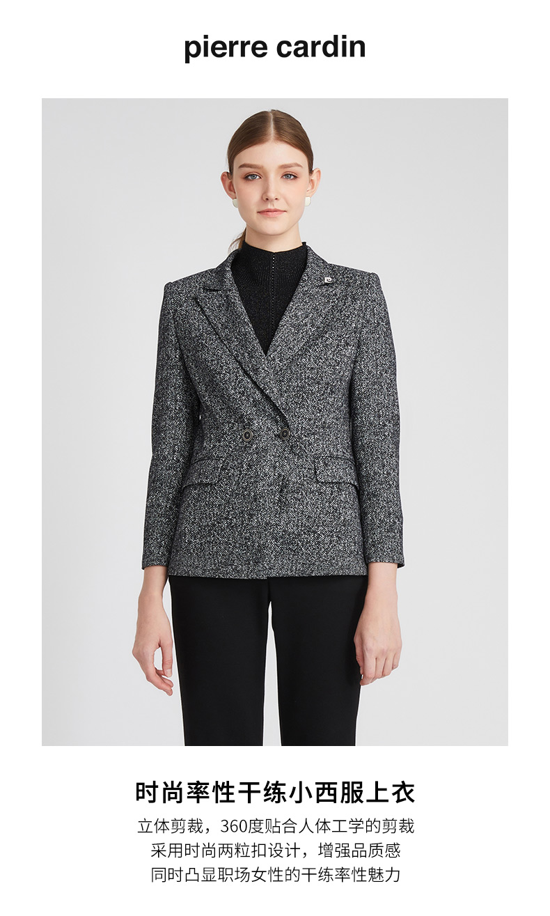 皮尔卡丹女装西服高频时尚干练羊毛商务通勤上衣外套P2337U2936B0