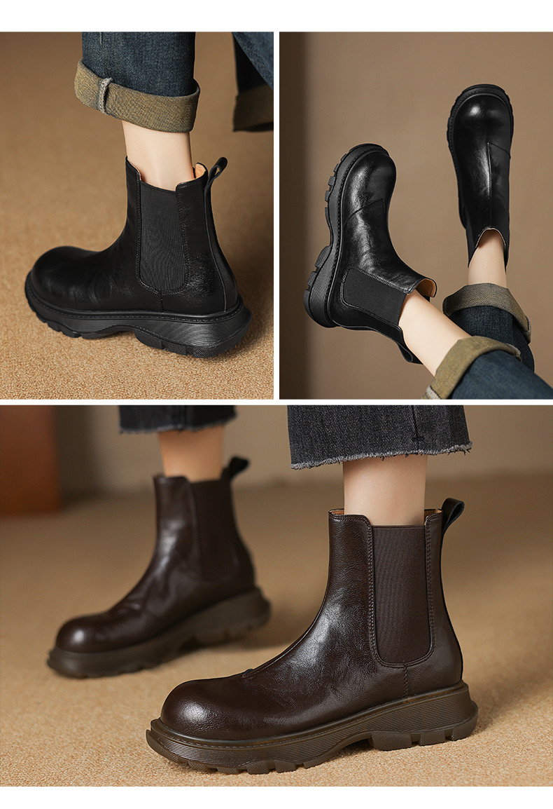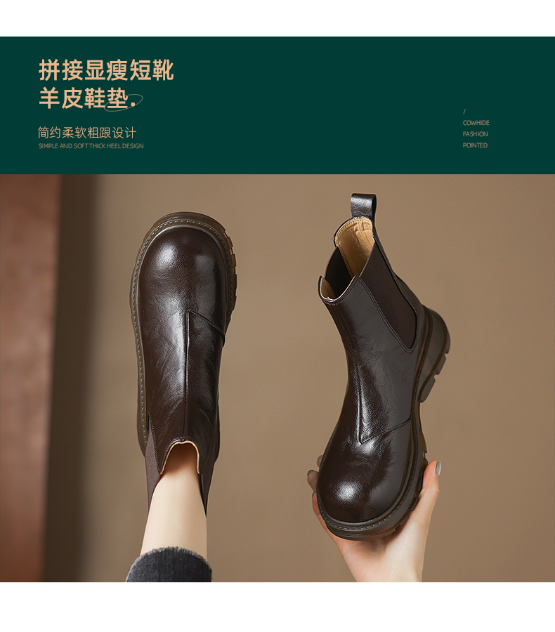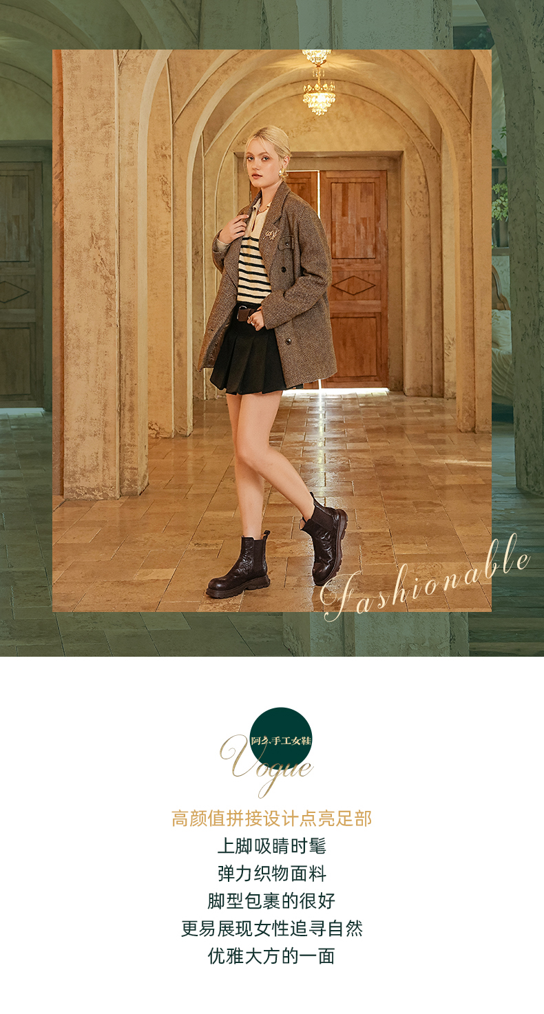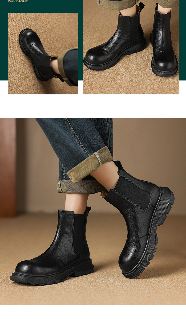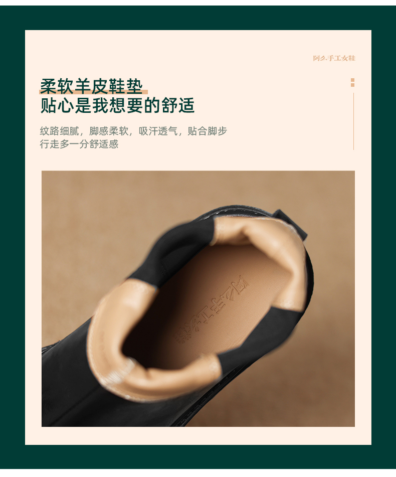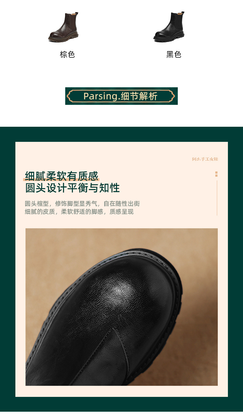 阿么手工女鞋复古短筒切尔西靴2025新款真皮透气百搭时尚短靴3CM