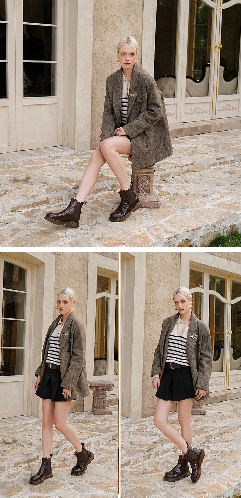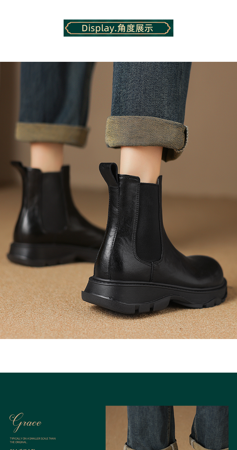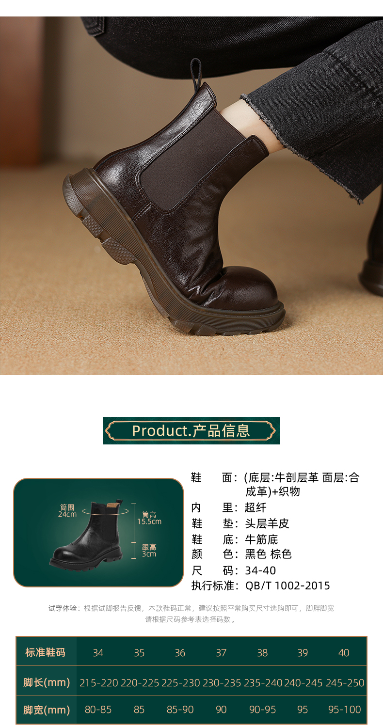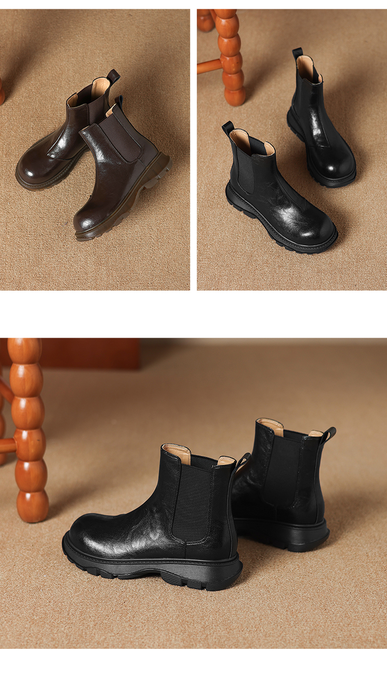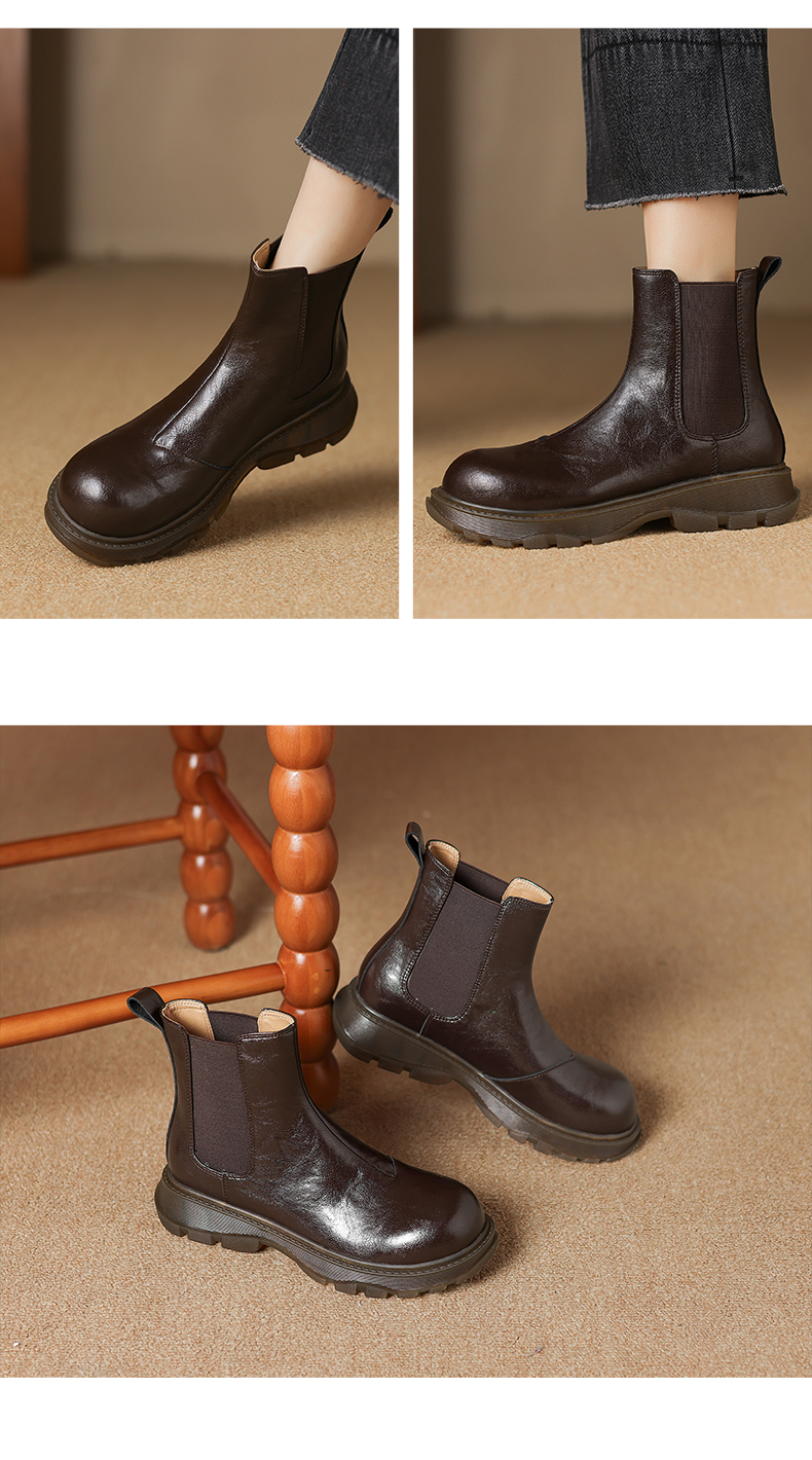 阿么手工女鞋复古短筒切尔西靴2025新款真皮透气百搭时尚短靴3CM