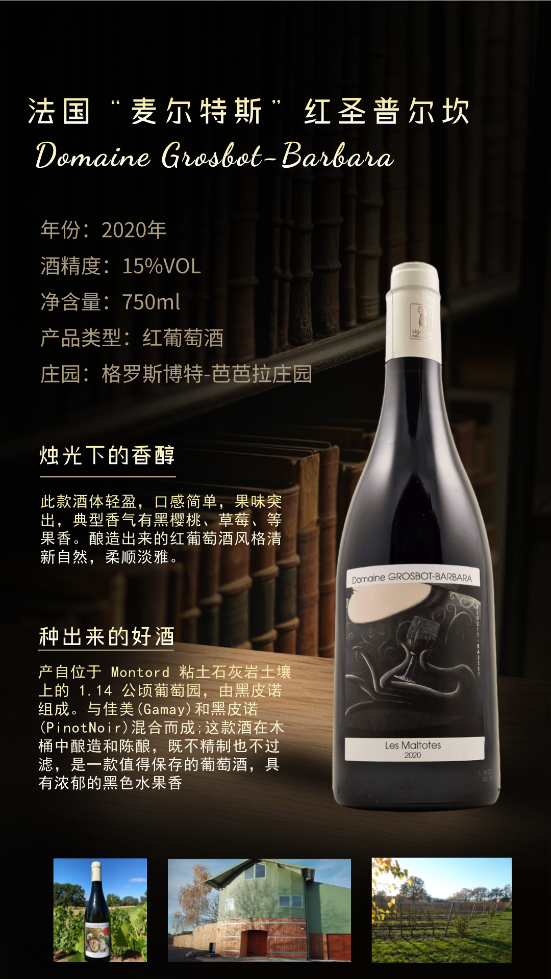 * 法国勃艮第2020年格罗斯博特-芭拉“麦尔特斯”红葡萄酒15° 750ml/瓶