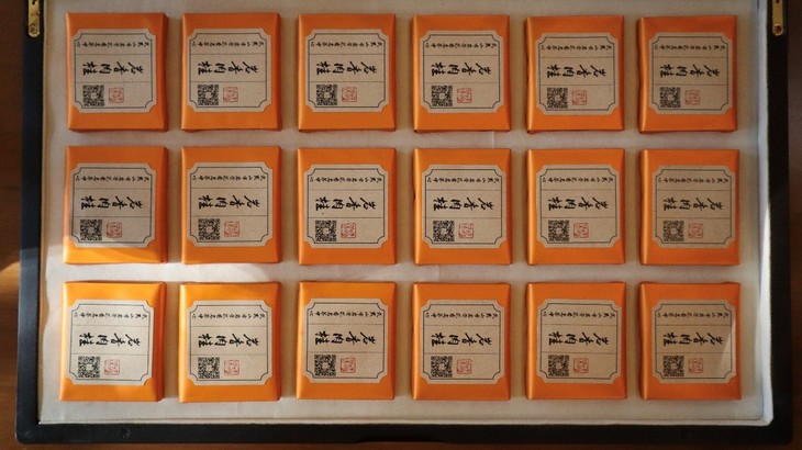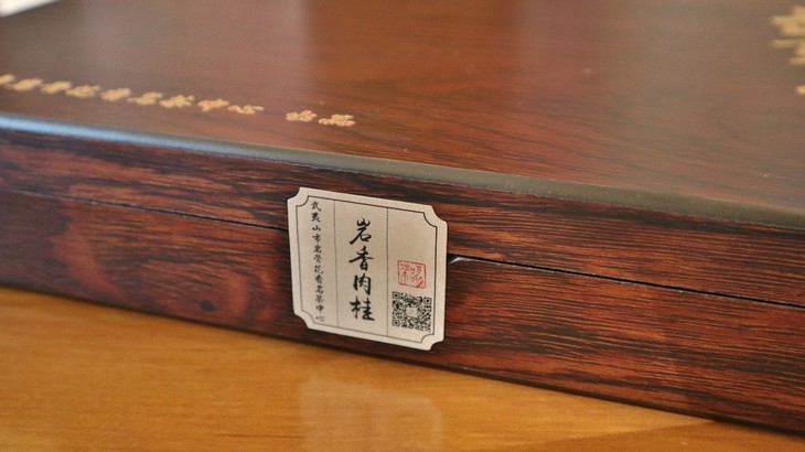 此款岩香肉桂种植区域为优异岩区,带有浓味果香,肉桂成茶外形条索匀整卷曲,色泽褐绿,油润有光。干茶嗅之有甜香,冲泡后之茶汤,特具花果、桂皮般的香气; 入口醇厚回甘,咽后齿颊留香,茶汤橙黄清澈,叶底匀亮,呈淡绿底红镶边,冲泡六七次仍有“岩韵”的肉桂香。“岩韵”显。