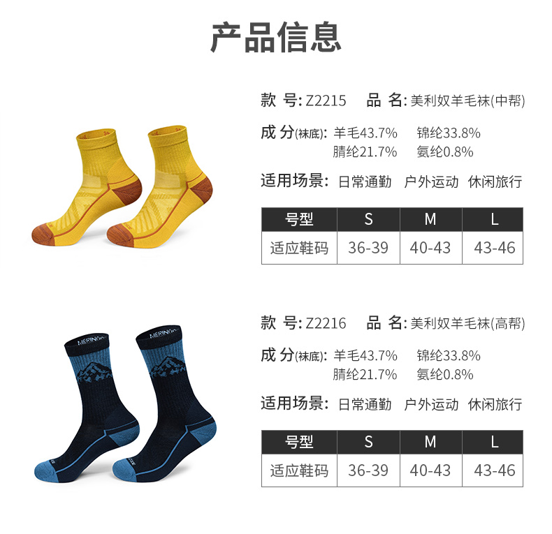 黑冰美利奴男女羊毛袜户外徒步登山运动保暖中帮高帮袜子