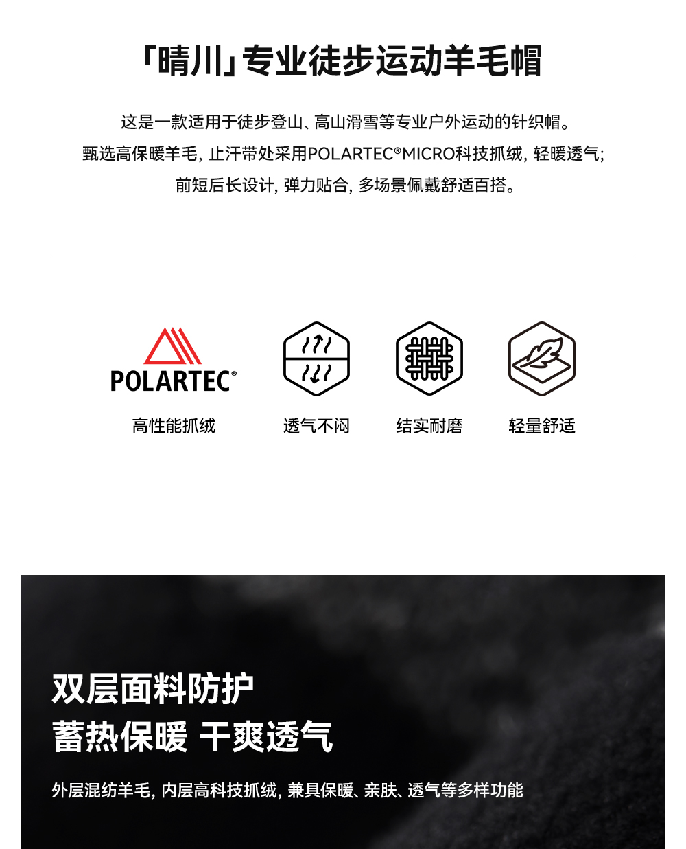【晴川】伯希和户外针织帽女Polartec登山毛线冷帽徒步羊毛帽子男
