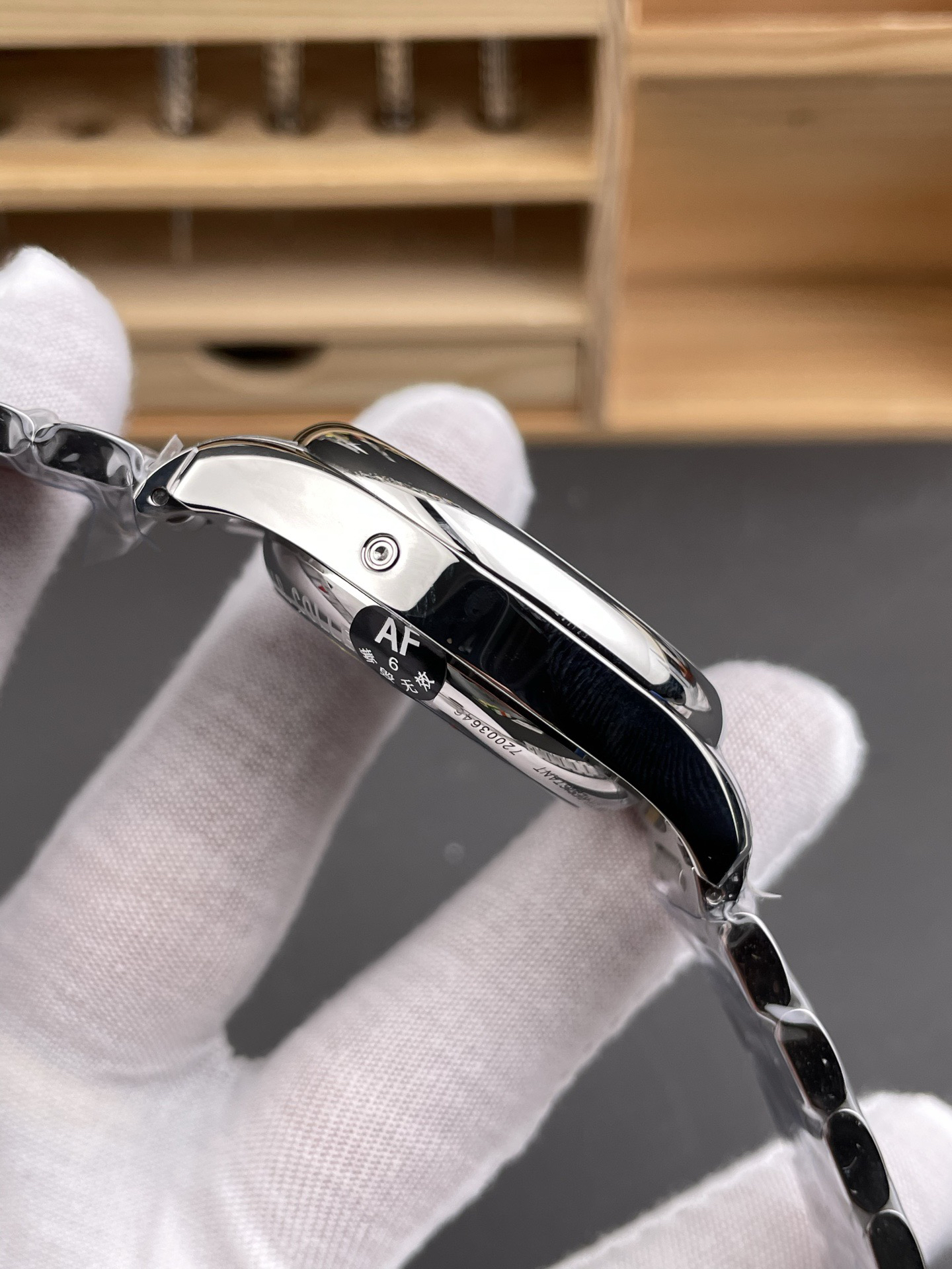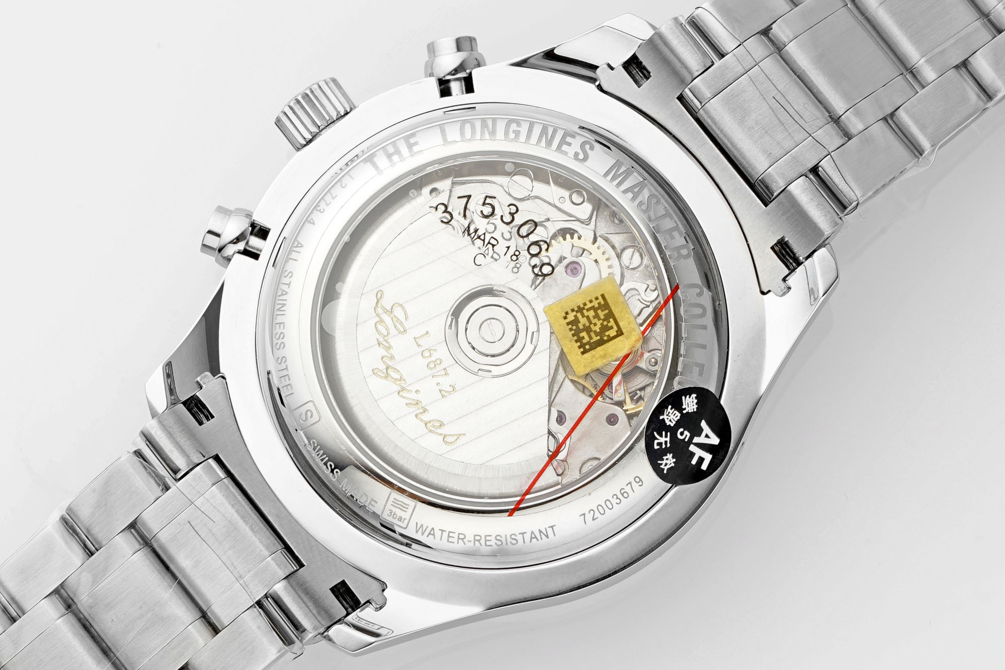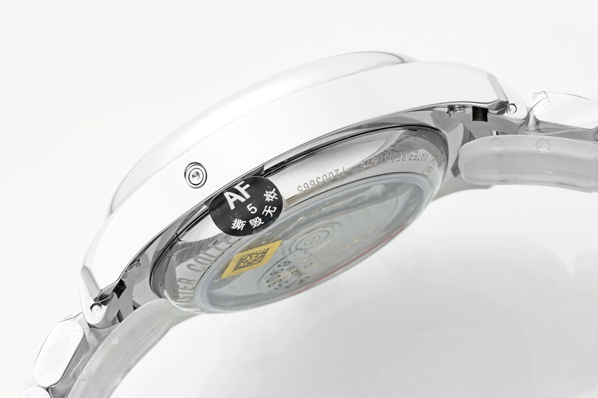 腕表做了背透,通过魔术窗里面的机芯清晰可见,自动舵有不错的打磨,足以见得AF的制表水准。