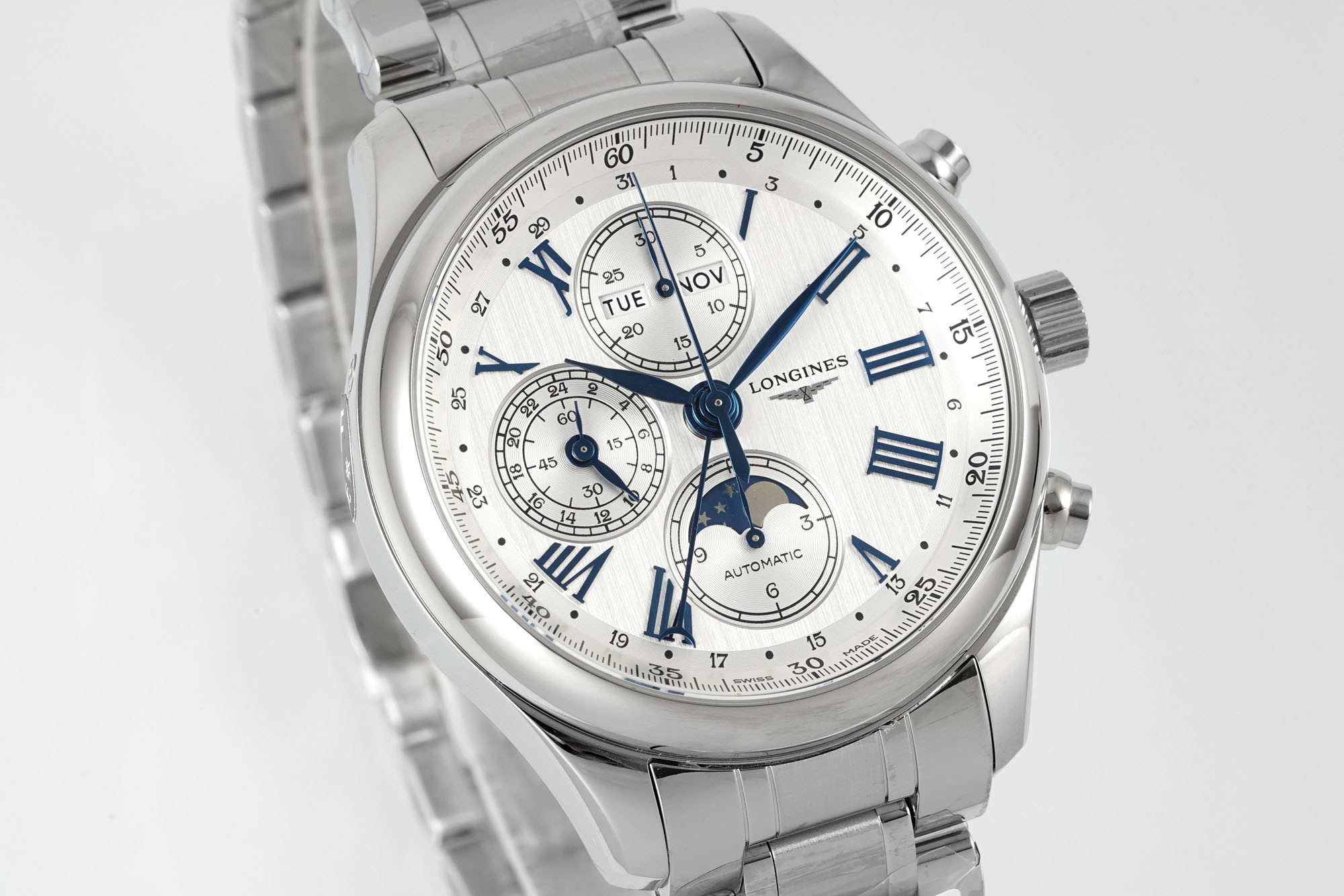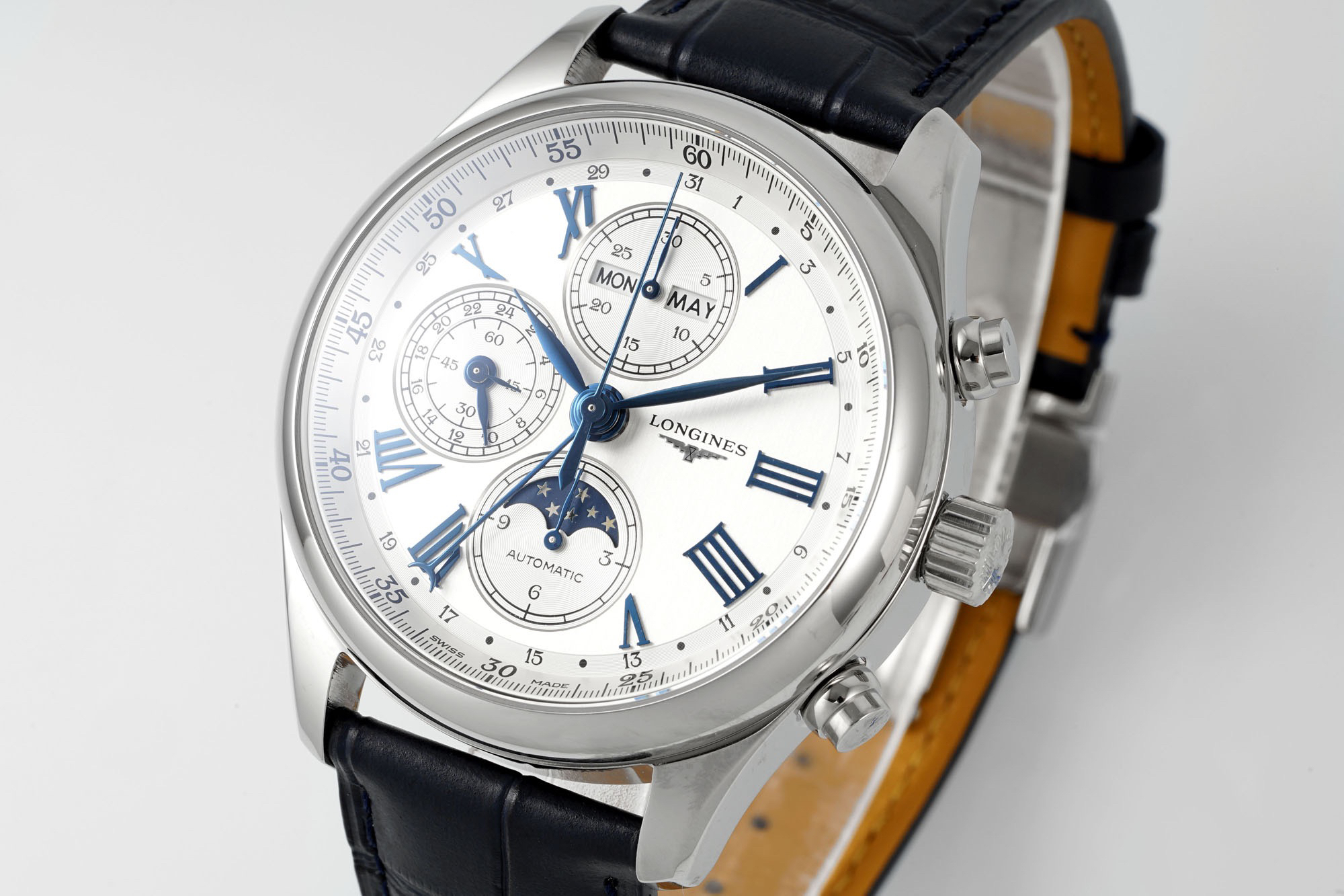 The Longines 8-pin moon phase watch has become world-renowned, catering to watch enthusiasts who enjoy complex functions and astronomical features.