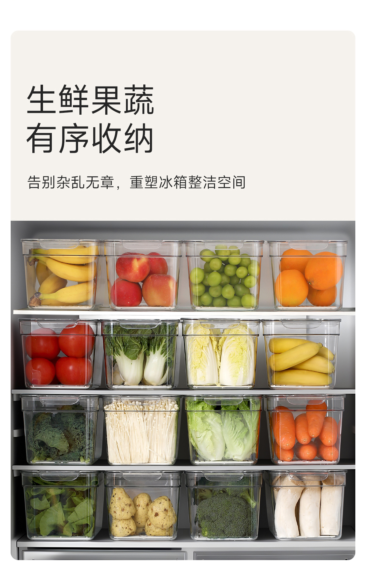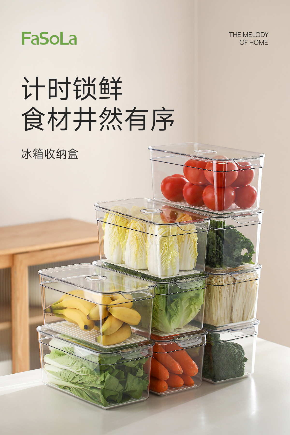 FaSoLa冰箱收纳盒食品级保鲜盒蔬菜鸡蛋食物整理透明密封带盖储藏